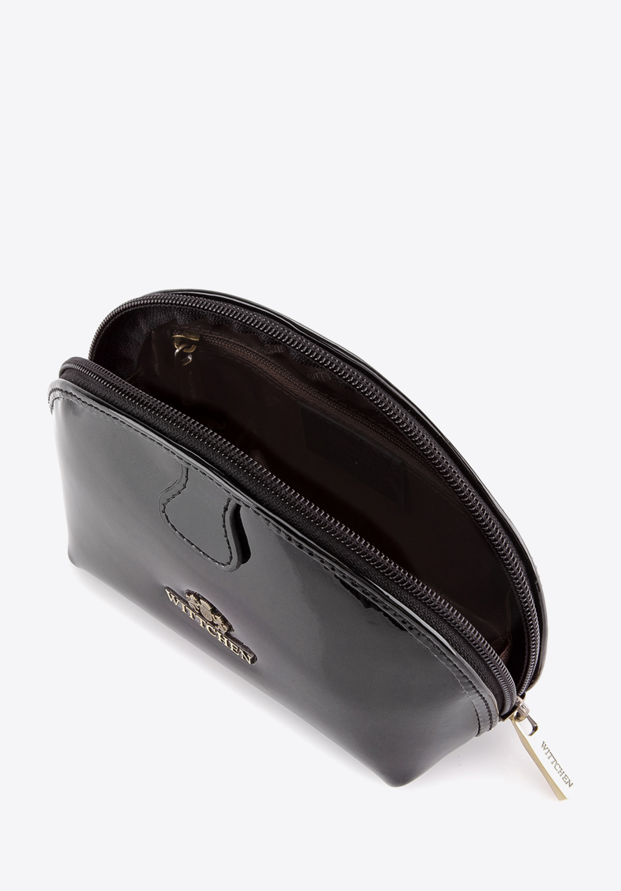 Această geantă cosmetică micărealizată dinpiele lăcuită este un accesoriu, al cărui aspect unic va atrage, cu siguranță, atenţia. Forma comodă șiînchiderea practică cu fermoar reprezintă avantaje suplimentare ale acestui model.