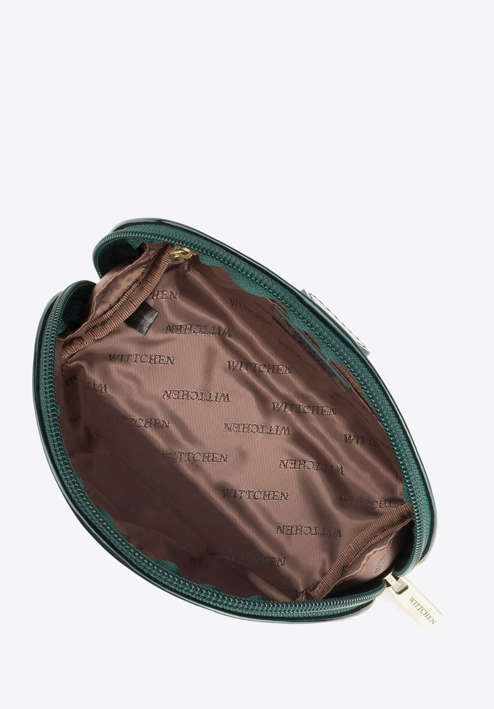 Geantă cosmetică din piele lăcuită semirotundă verde