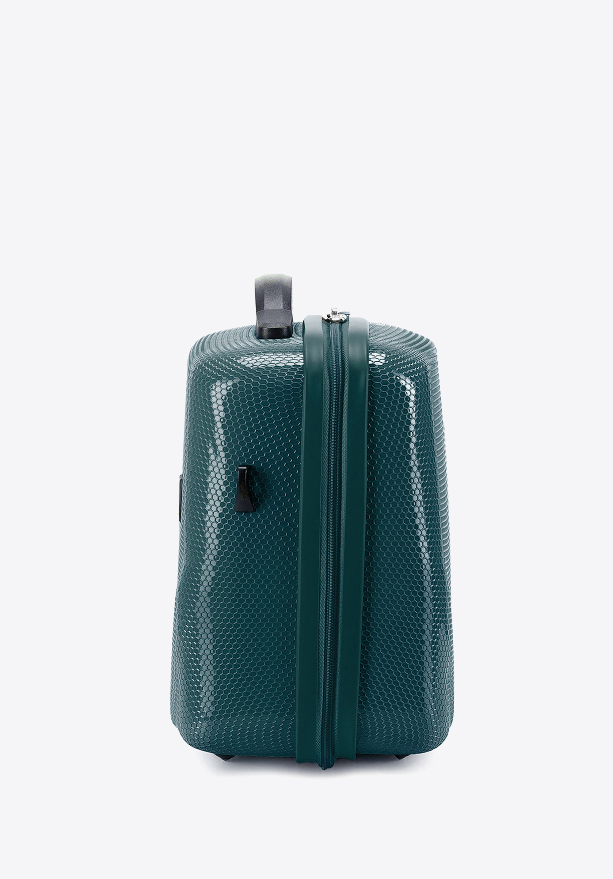 Geanta cosmetică elegantă din colecția PC Ultra Light a fost produsă din material rezistent la îndoire -policarbonat. Ea va forma un duet reușit cu multe valize. Modelul funcțional a fost dotat cu un mâner care facilitează transportarea genții cosmetice, o curea reglabilă, detașabilă și o centură elastică care permite atașarea la mânerul valizei.