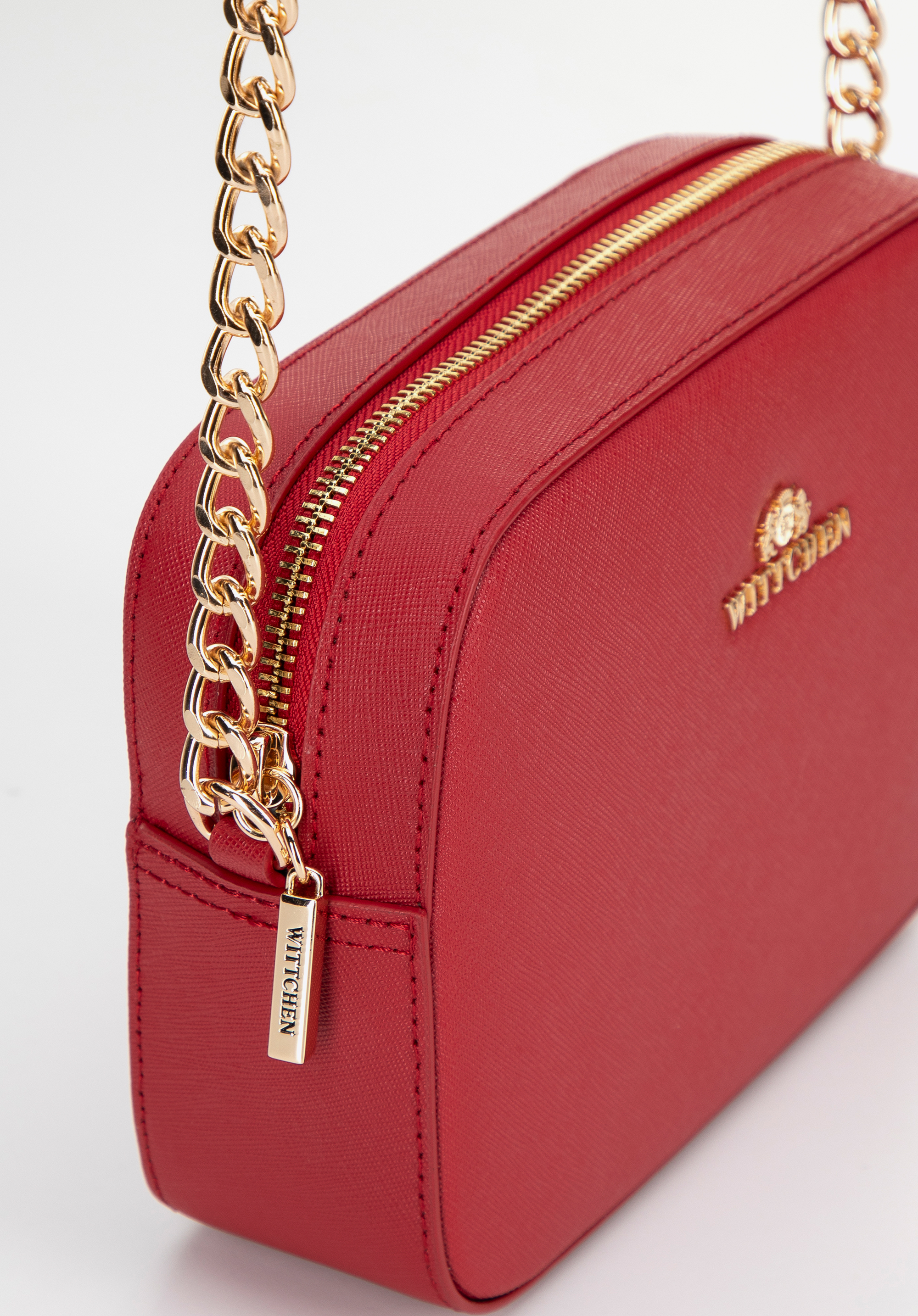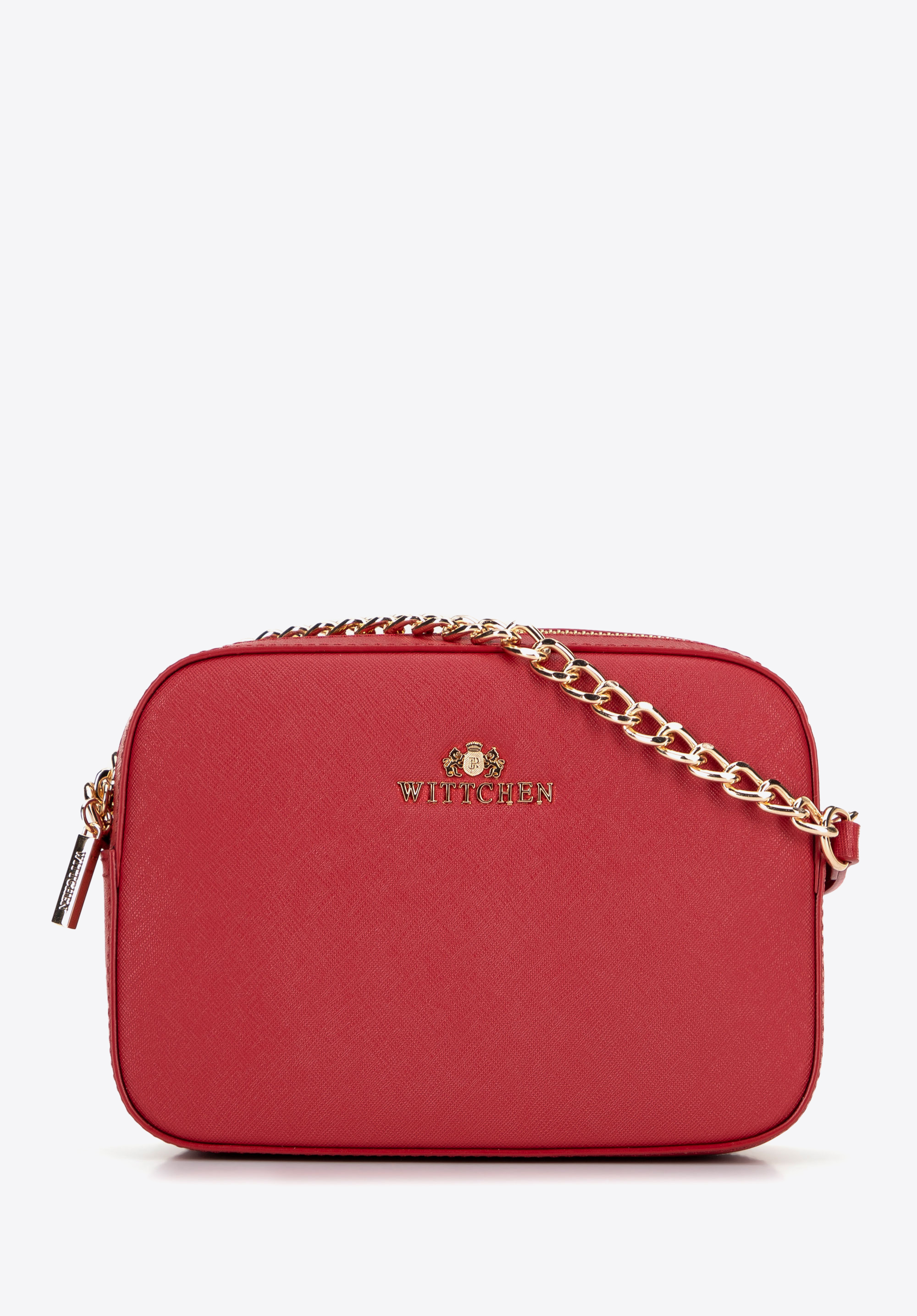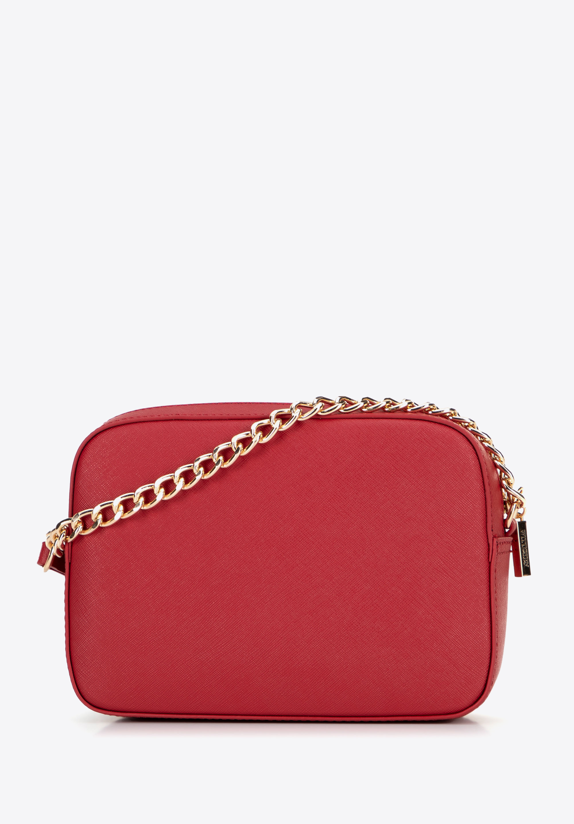 Geantă crossbody cu lanț din piele Saffiano roșu