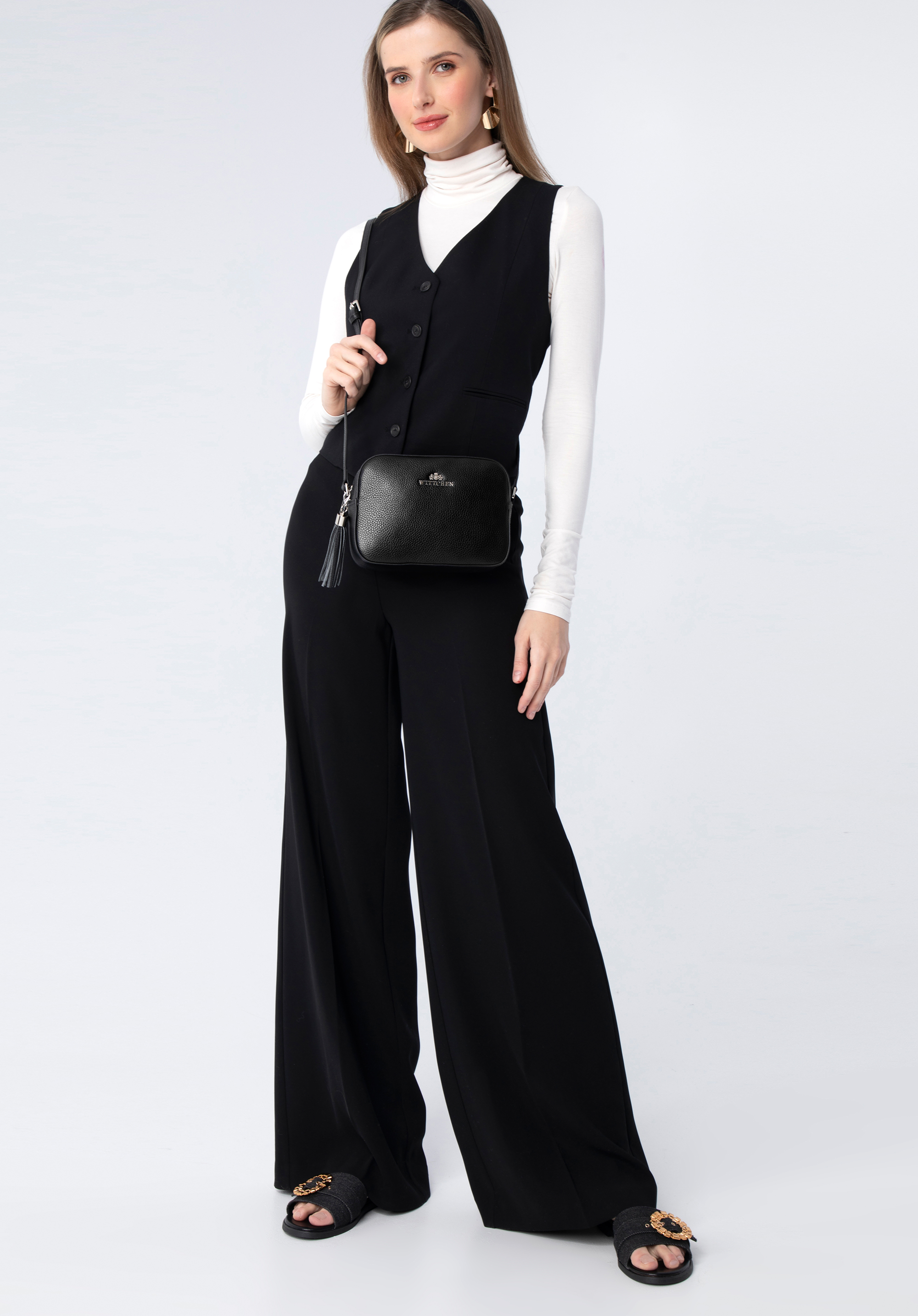 Această geantă mică de damă este un accesoriu clasic din imitatie de piele. Finisată într- un design simplu și curat în formă de cutie , această geantă de mână are o paletă de culori neutre pentru un aspect sofisticat îmbunătățit. Împodobită cu un buzunar deschis in față si cu sigla elegantă WITTCHEN, această geantă de mână se va potrivi cu toate elementele tale esentiale de zi cu zi: un telefon, portofel, chei sau cremă de mâini. Are două buzunare în interior, dintre care unul închis cu fermoar. Acest accesoriu se va combina perfect cu un pulover oversize gros, precum și cu o rochie strălucitoare. Această geantă crossbody pentru femei este un plus extrem de elegant pentru orice garderobă.