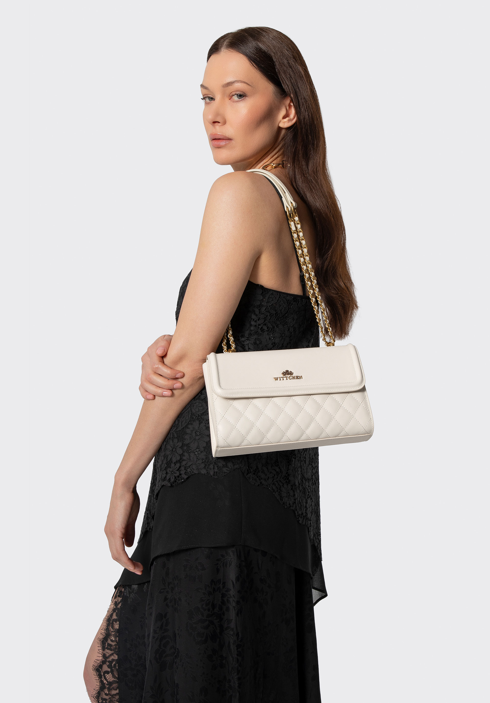 Eleganță matlasată – geantă crossbody din piele, cu lanț