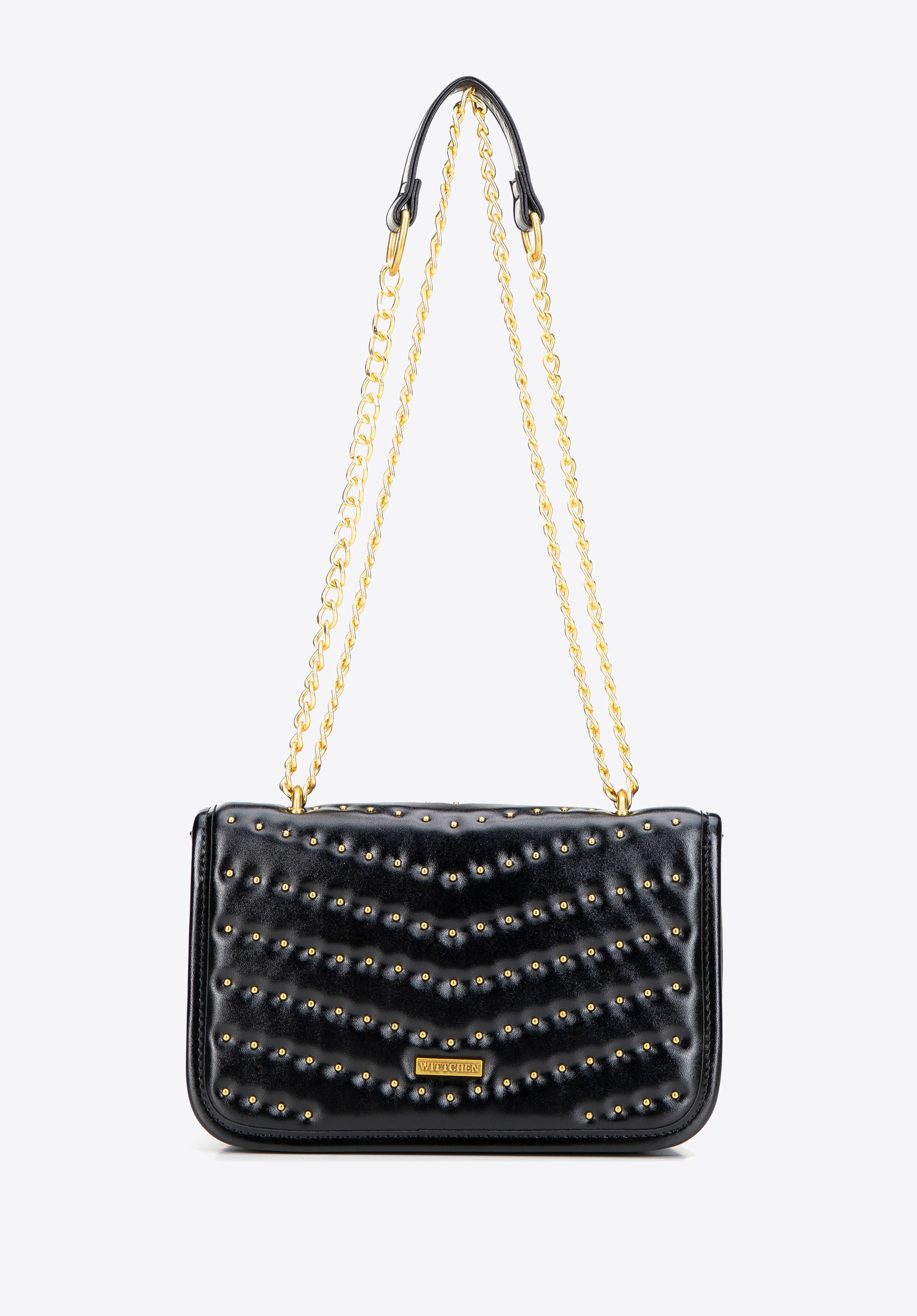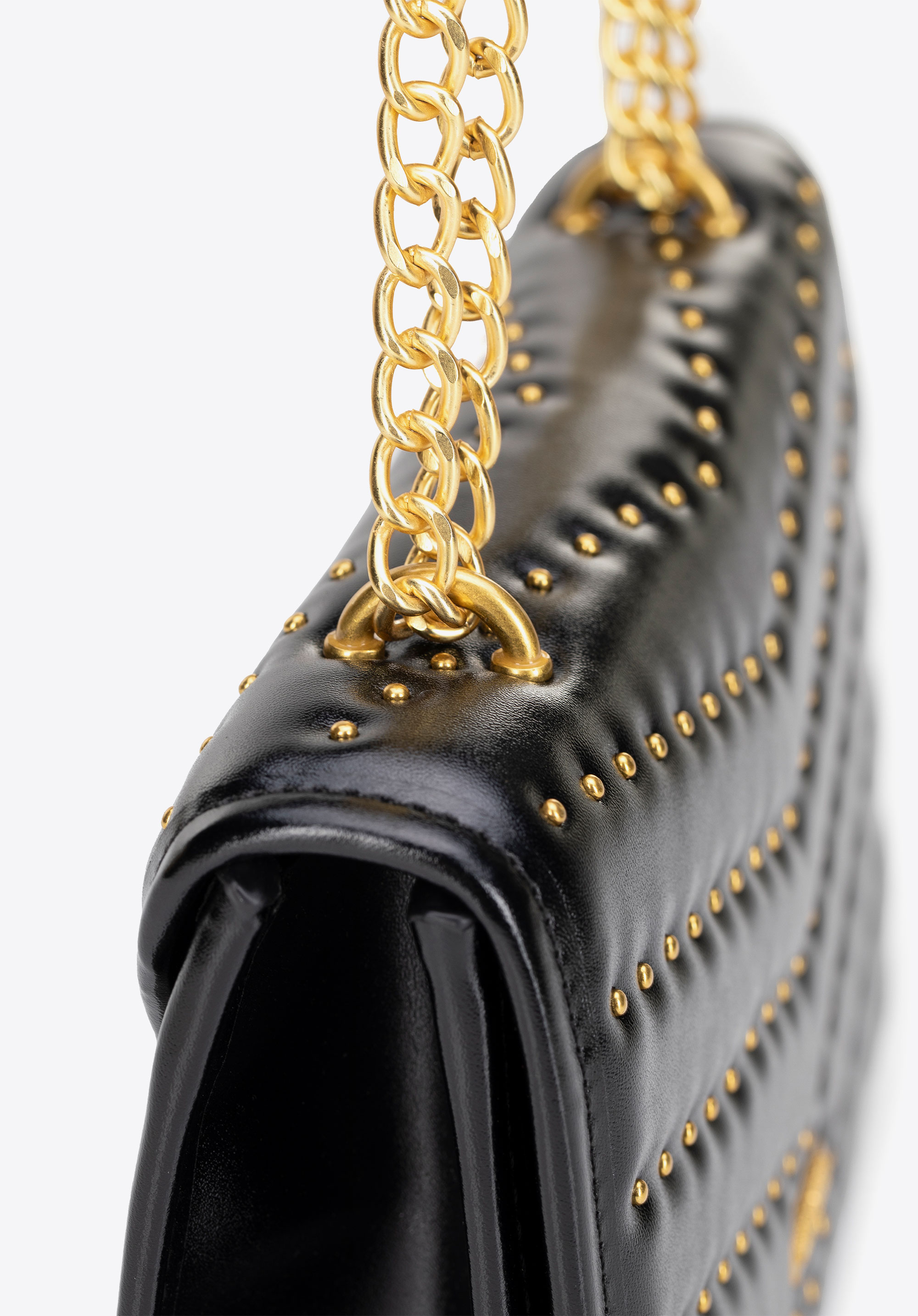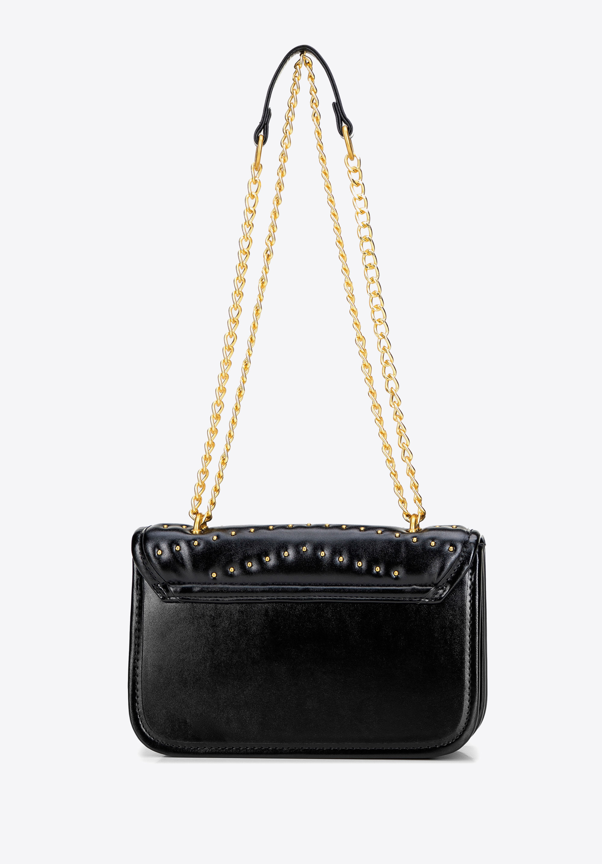Alege o geantă care îmbină eleganța cu o notă de șic rock. Această geantă crossbody din piele ecologică , înfrumusețată cu ținte strălucitoare , iese în evidență prin designul său contemporan și caracterul versatil, fiind atingerea perfectă atât pentru ținutele de zi cu zi, cât și pentru cele de seară. Clapeta cu închidere magnetică asigură confort și siguranță, în timp ce bareta practică cu lanț îți permite să o porți în două moduri - lungă pe umăr sau dublată pentru un aspect compact și elegant. În interior, vei găsi două buzunare, inclusiv unul cu fermoar, care te ajută să rămâi organizată și să ții lucrurile esențiale la îndemână.