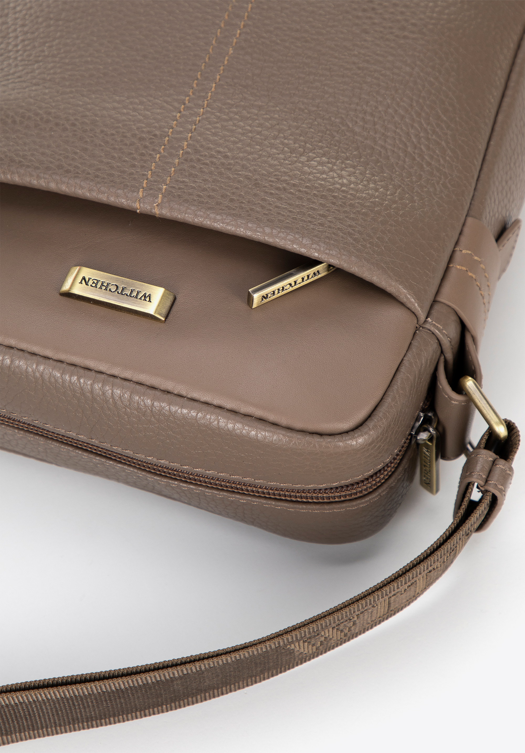 Geantă de bărbați din piele naturală cu cusături taupe