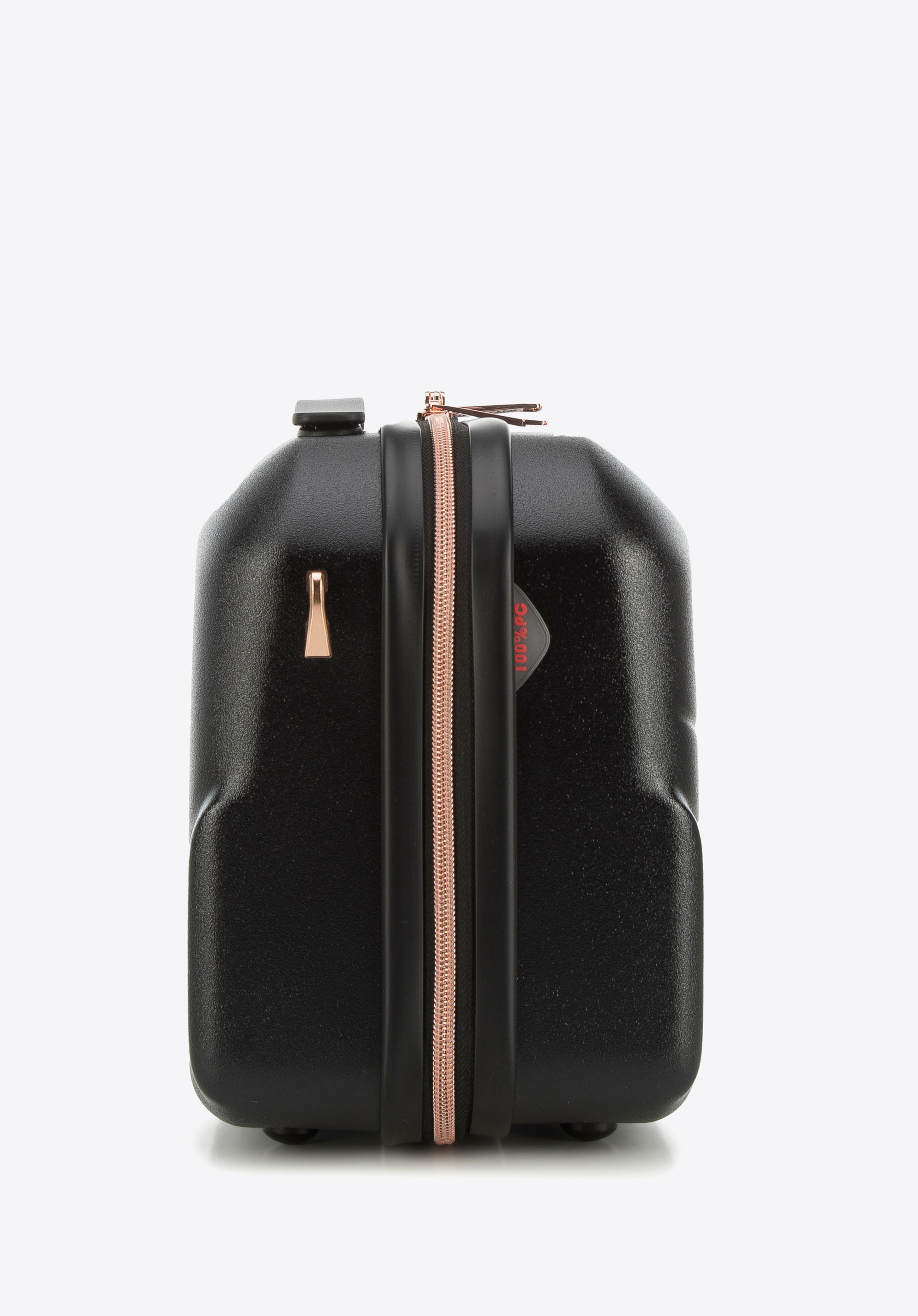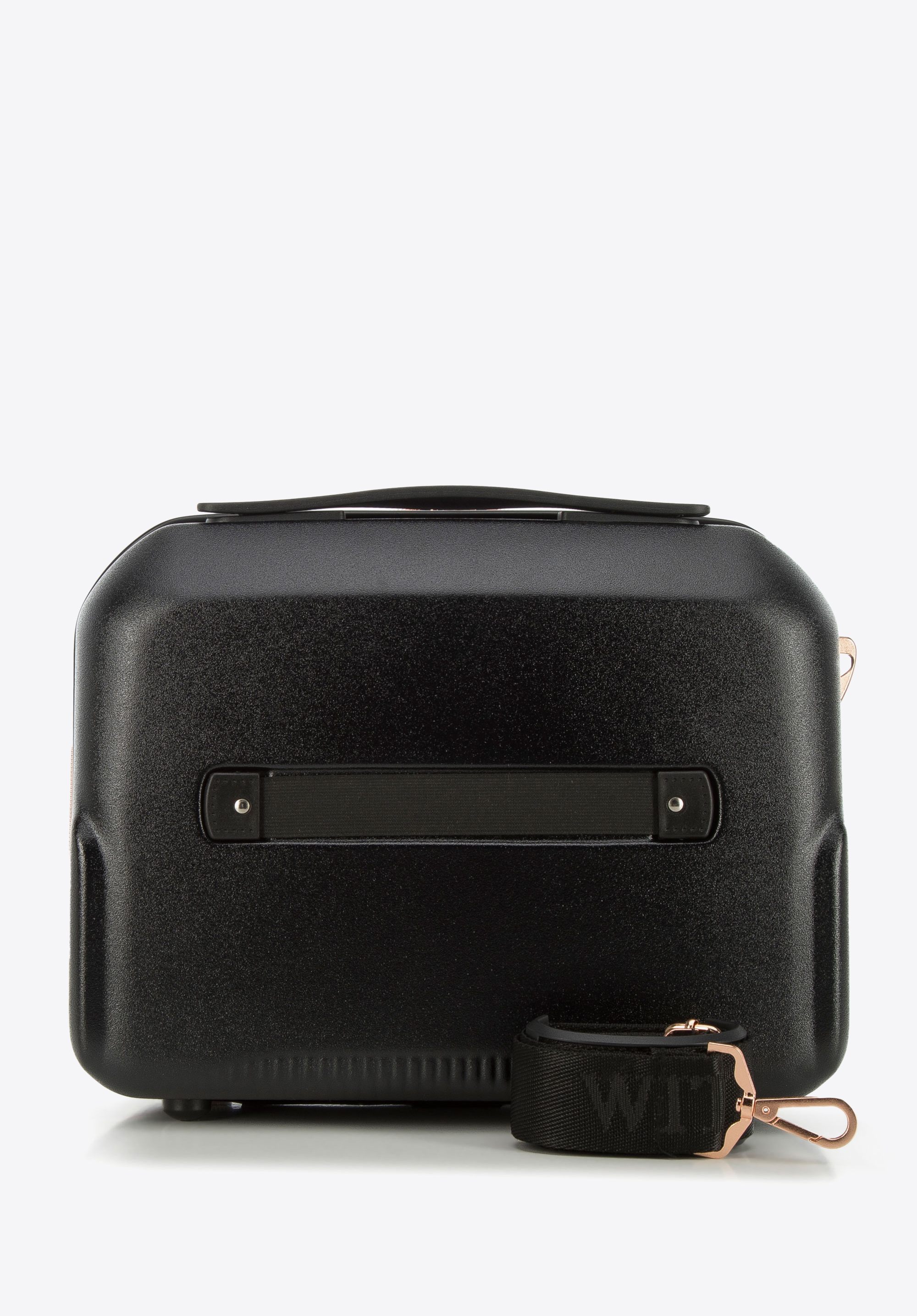 Această geantă de călătorie elegantă pentru machiaj va fi utilă pentru orice femeie elegantă. Este confecționată din policarbonat rezistent, cu feronerie din aur roz. În interiorul bine organizat, puteți încadra, de exemplu, un uscător de păr de călătorie, șampon, parfumul preferat și alte produse cosmetice. Obiectele mici pot fi depozitate în buzunarul central cu fermoar. Puteți combina acest model cu valize din această colecție și păstrați un aspect consecvent în fiecare călătorie. Geanta pentru cosmetice de călătorie din policarbonat cu fermoar, în culoarea rose gold, este un accesoriu practic și elegant atât pentru călătorii, cât și pentru uz casnic.