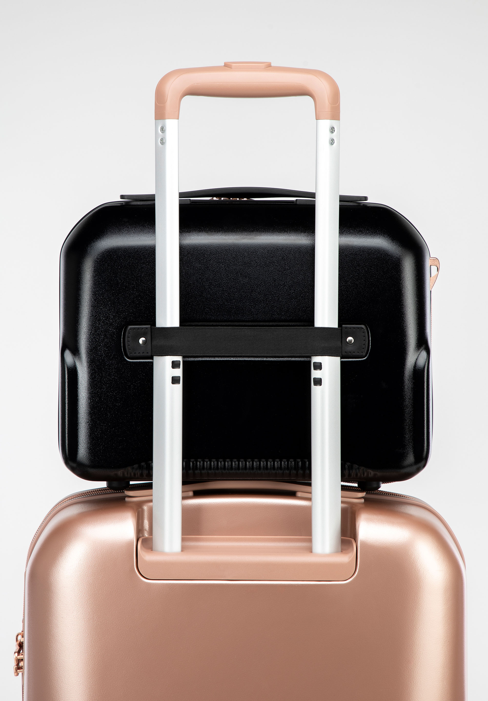 Sfatul nostru: când călătoriți, atașați geanta de machiaj la mânerul valizei cu ajutorul curelei elastice din spate.