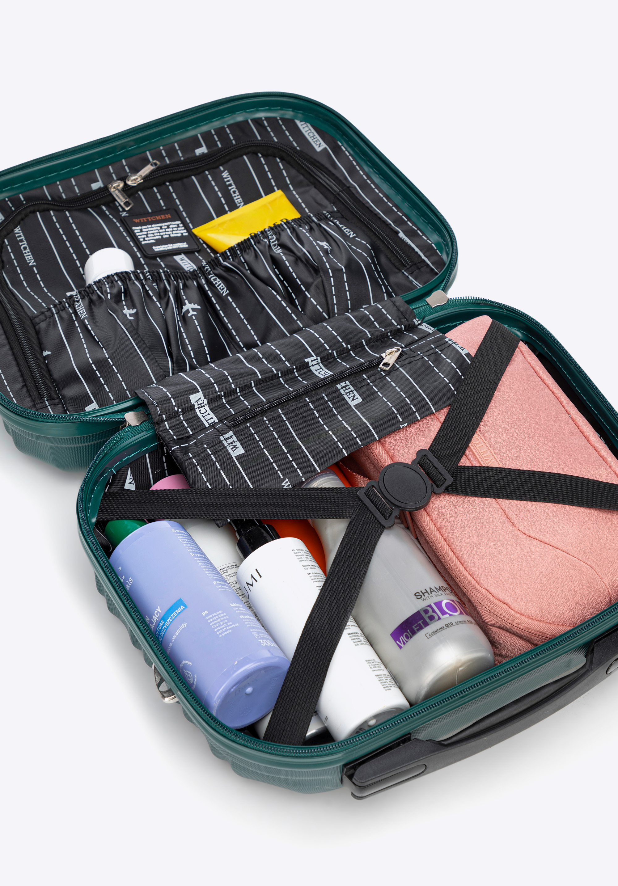 Esteticiană de călătorie din plastic ABS care se caracterizează printr-o rezistență crescută la deteriorare.Suprafața cu o structură poroasă caracteristică face ca geanta cosmetică să fie mai rezistentă la zgârieturi și, în același timp, are un design modern.Modelul funcțional a fost dotat cu un mâner care facilitează transportul pungii cosmetice, o curea detașabilă, reglabilă. și o curea elastică care îi permite să fie atașată de mânerul valizei..
