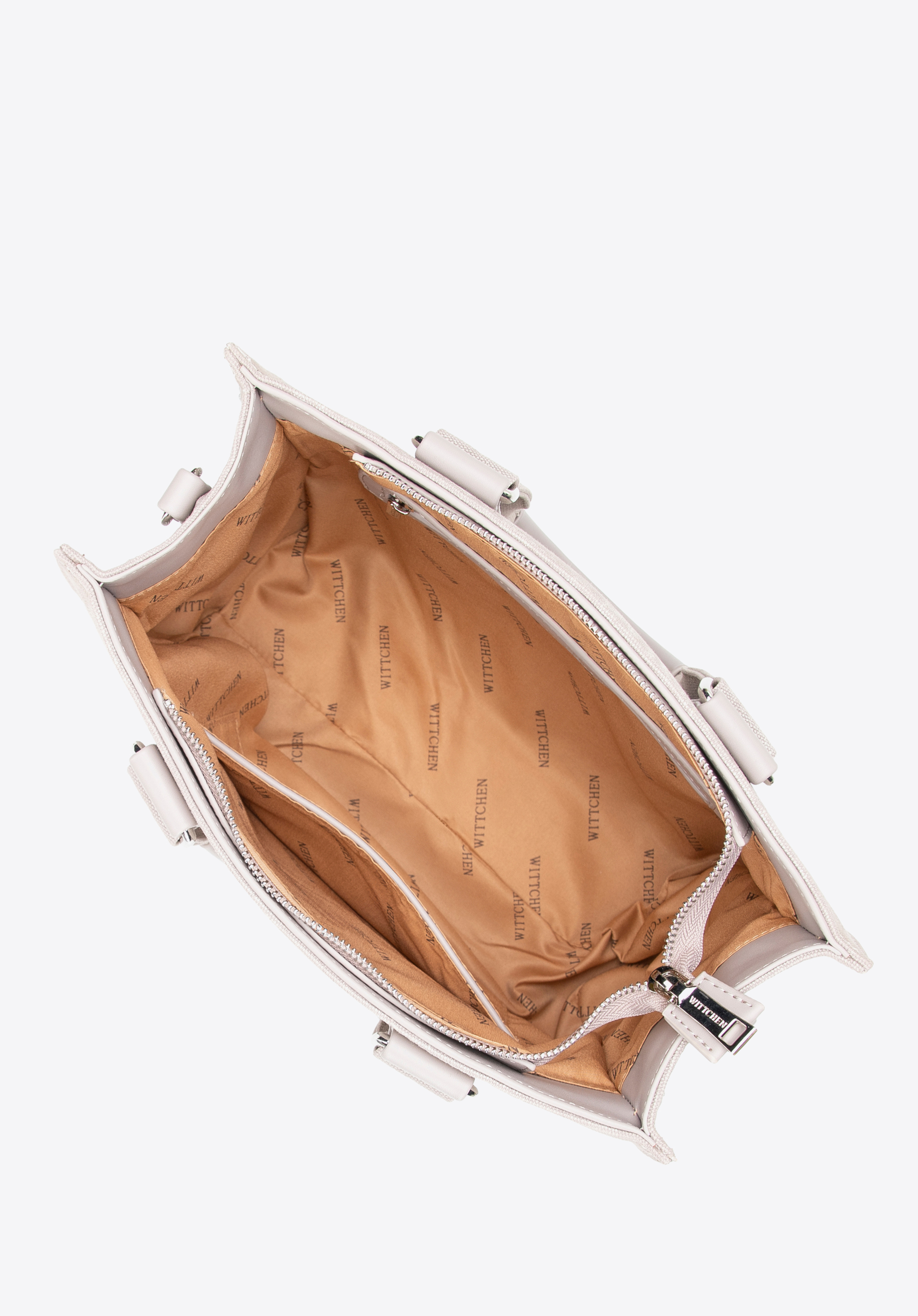 - Două mânere din piele ecologică: Permit o purtare confortabilă în mână, asigurând ușurință în orice situație.