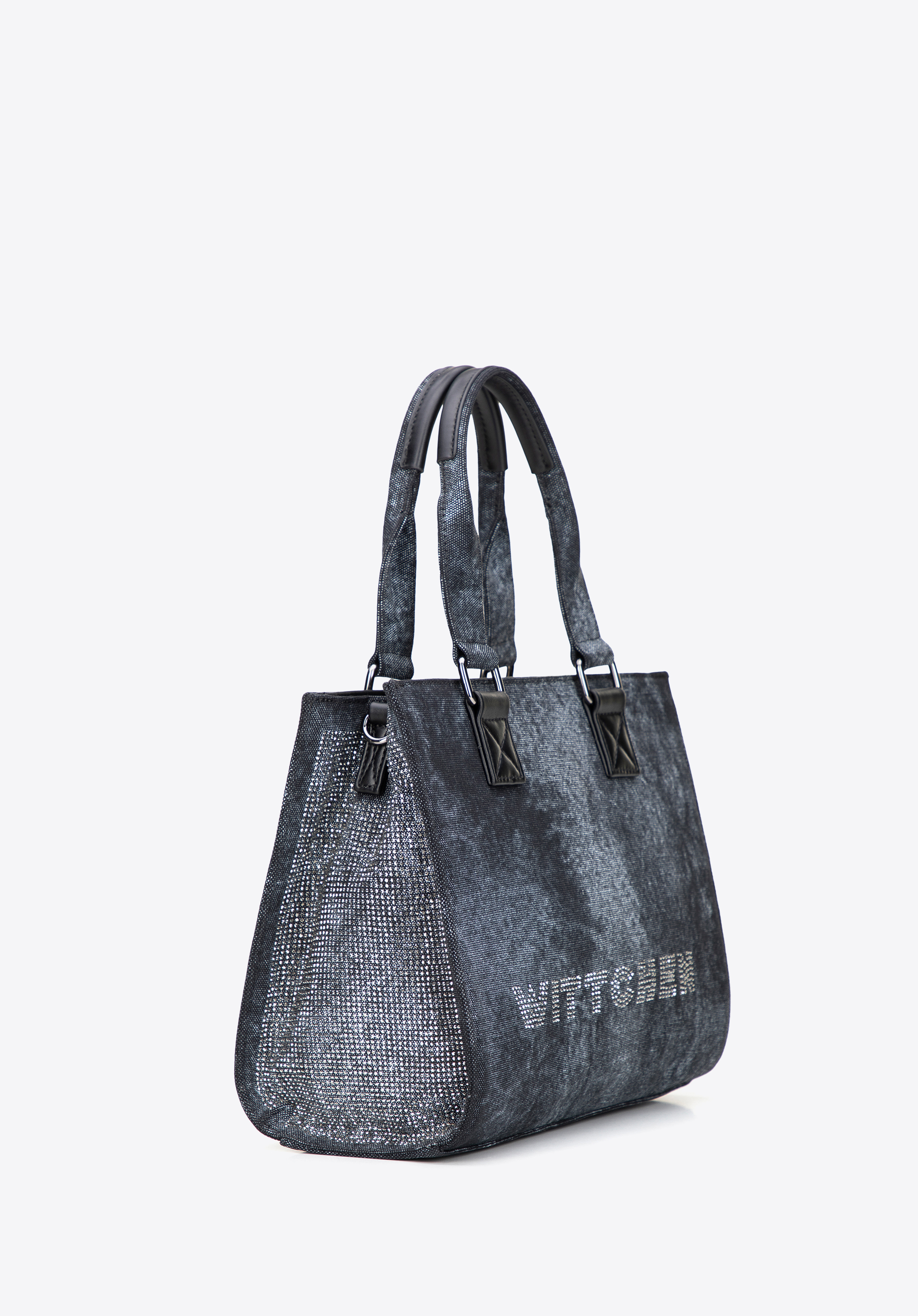 - Laterale împodobite cu strasuri: Strălucirea subtilă adaugă feminitate și eleganță, făcând din această geantă o adevărată atracție.