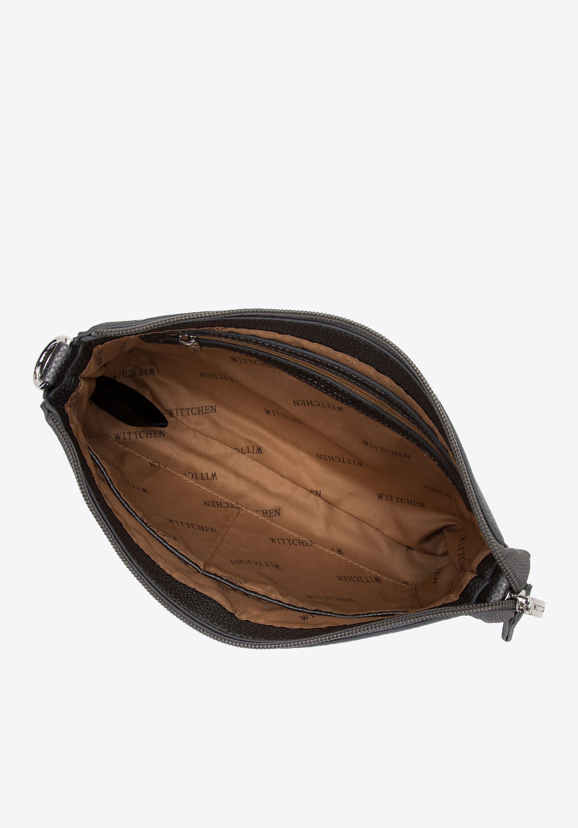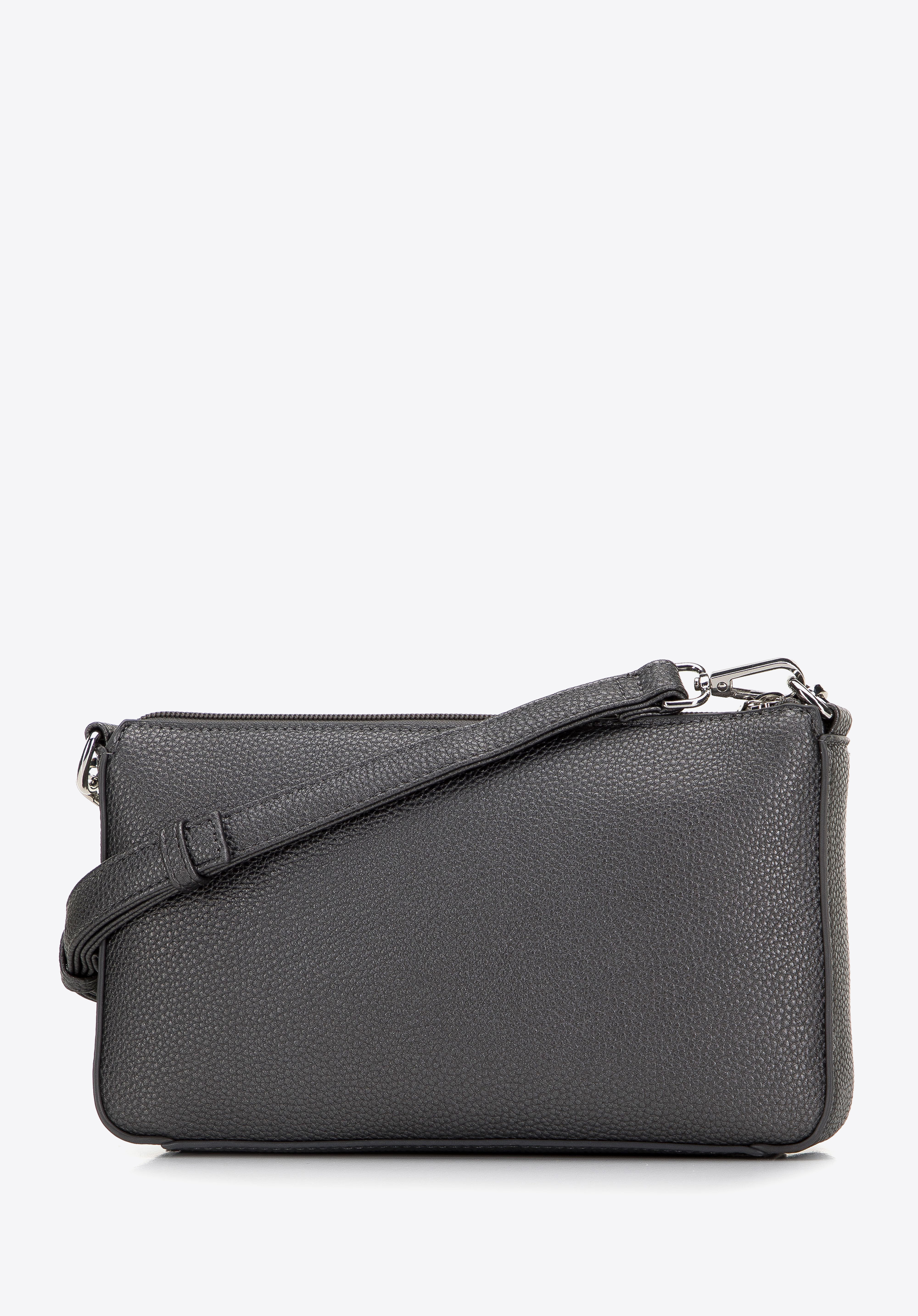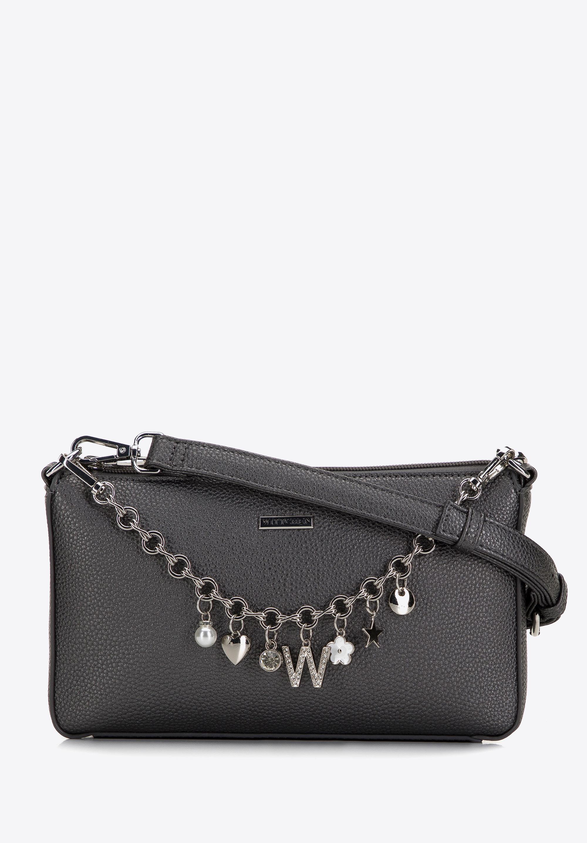 Această geantă de mână mică, cu o formă alungită, este un accesoriu atemporal pentru orice femeie. Este confecționată din piele ecologică cu luciu perlat. Este decorată cu un lanț de bijuterii, care este detașabil, astfel încât să o puteți purta așa cum doriți. În interior, veți putea să vă potriviți portofelul, telefonul, șervețelele și mănușile de rezervă - exact la timp pentru o vizită de weekend, o plimbare sau o cafea cu o prietenă. Poartă-l cu mica rochie neagră elegantă preferată sau adaugă o notă elegantă la chinos și o cămașă. Geanta poștală simplă pentru femei din piele ecologică cu lanț decorativ este un accesoriu elegant care va atrage multe priviri.