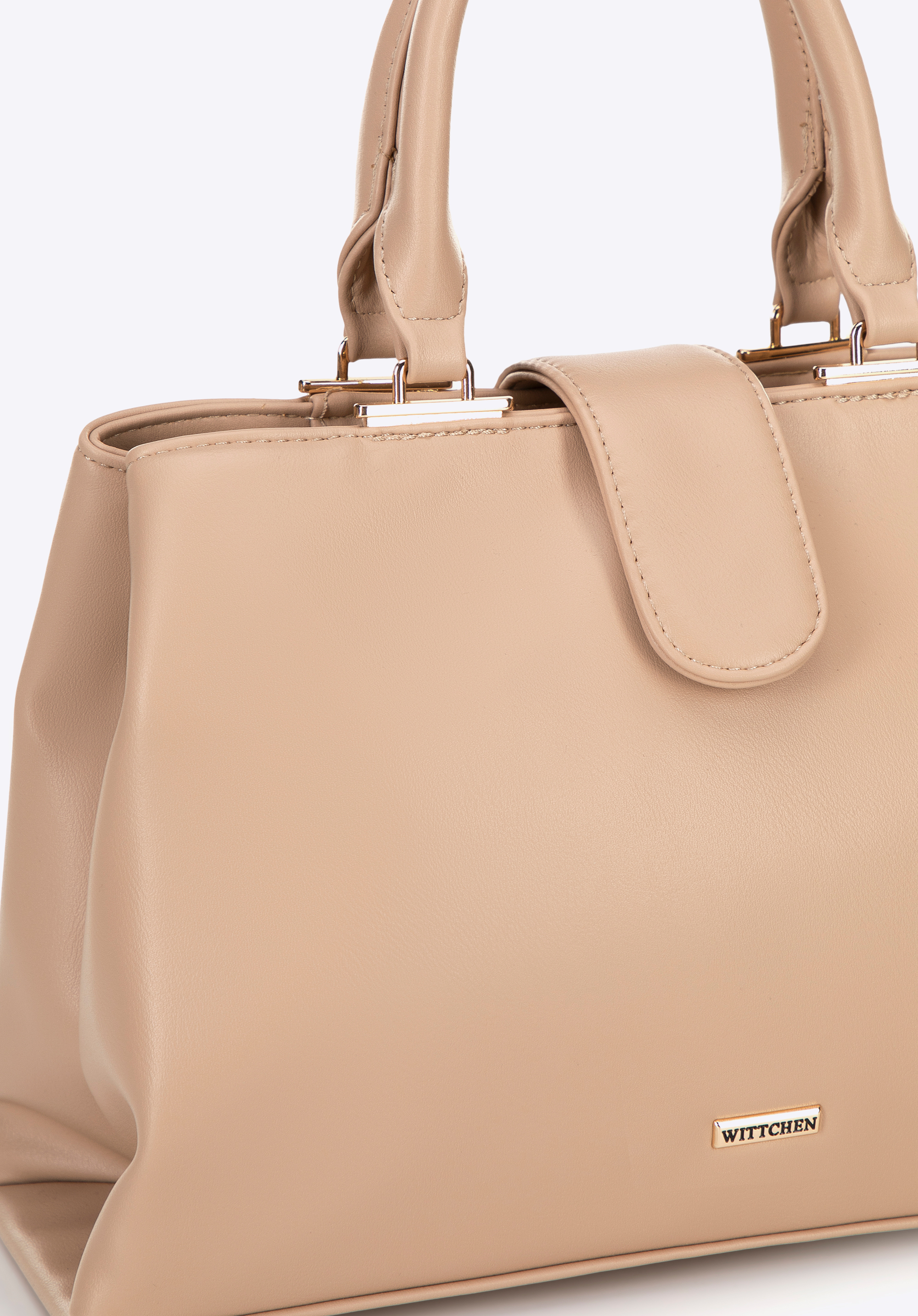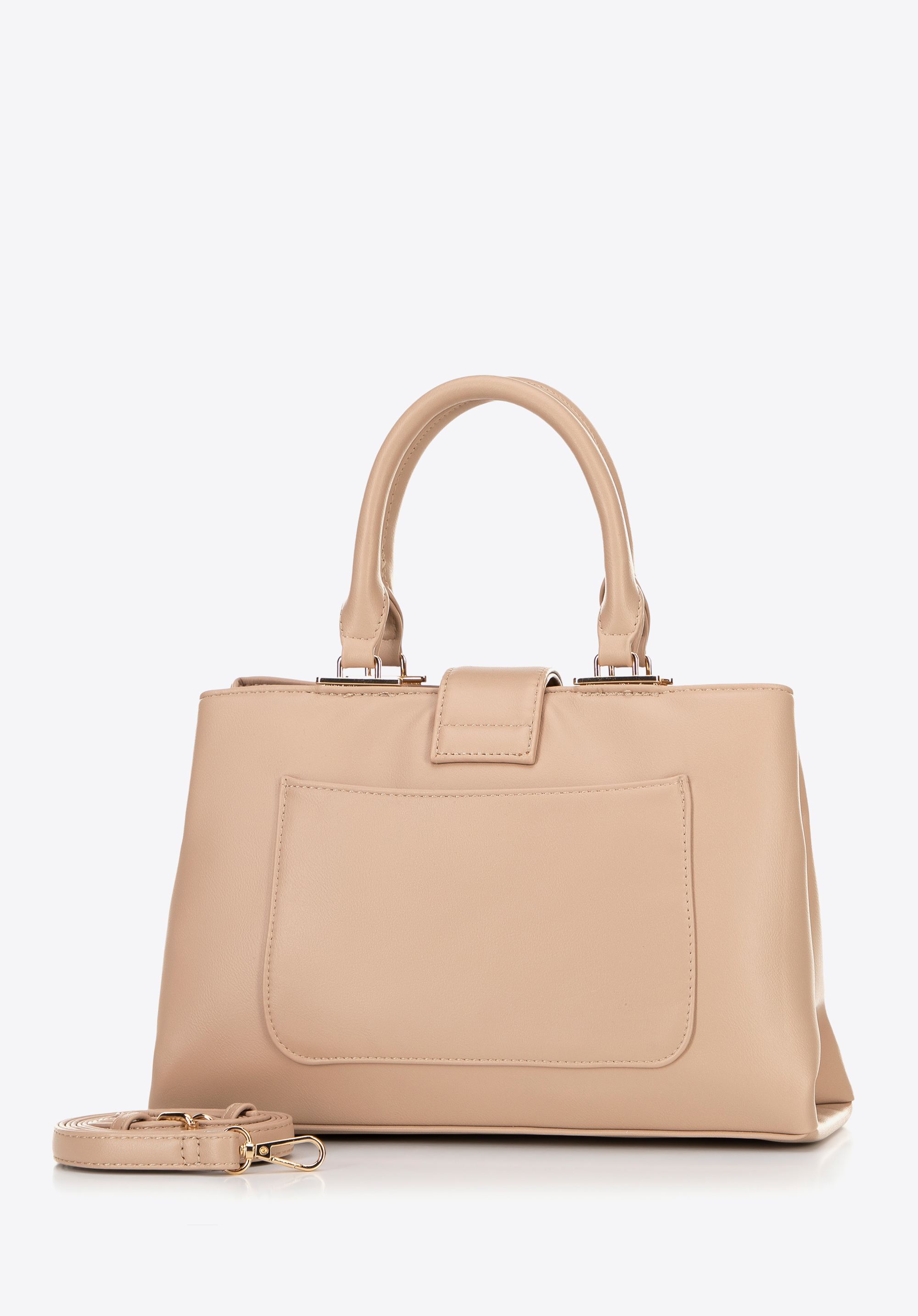 Geanta tip cufăr confecționat din piele ecologică, ce îmbină designul modern cu funcționalitatea. Se închide cu fermoar și este prevăzut cu o curea cu închidere magnetică, ce permite acces rapid și comod la interior. Geanta are două mânere, oferind confort în purtare. Interiorul este conceput pentru o organizare impecabilă – este împărțit în două compartimente separate de un buzunar cu fermoar. În plus, în partea centrală se află trei buzunare, dintre care unul cu închidere pe fermoar, ideale pentru depozitarea obiectelor mici.