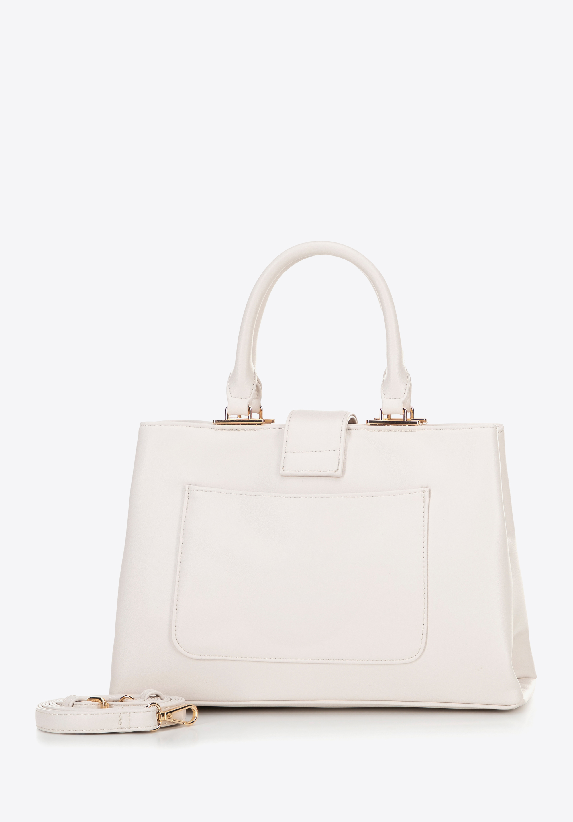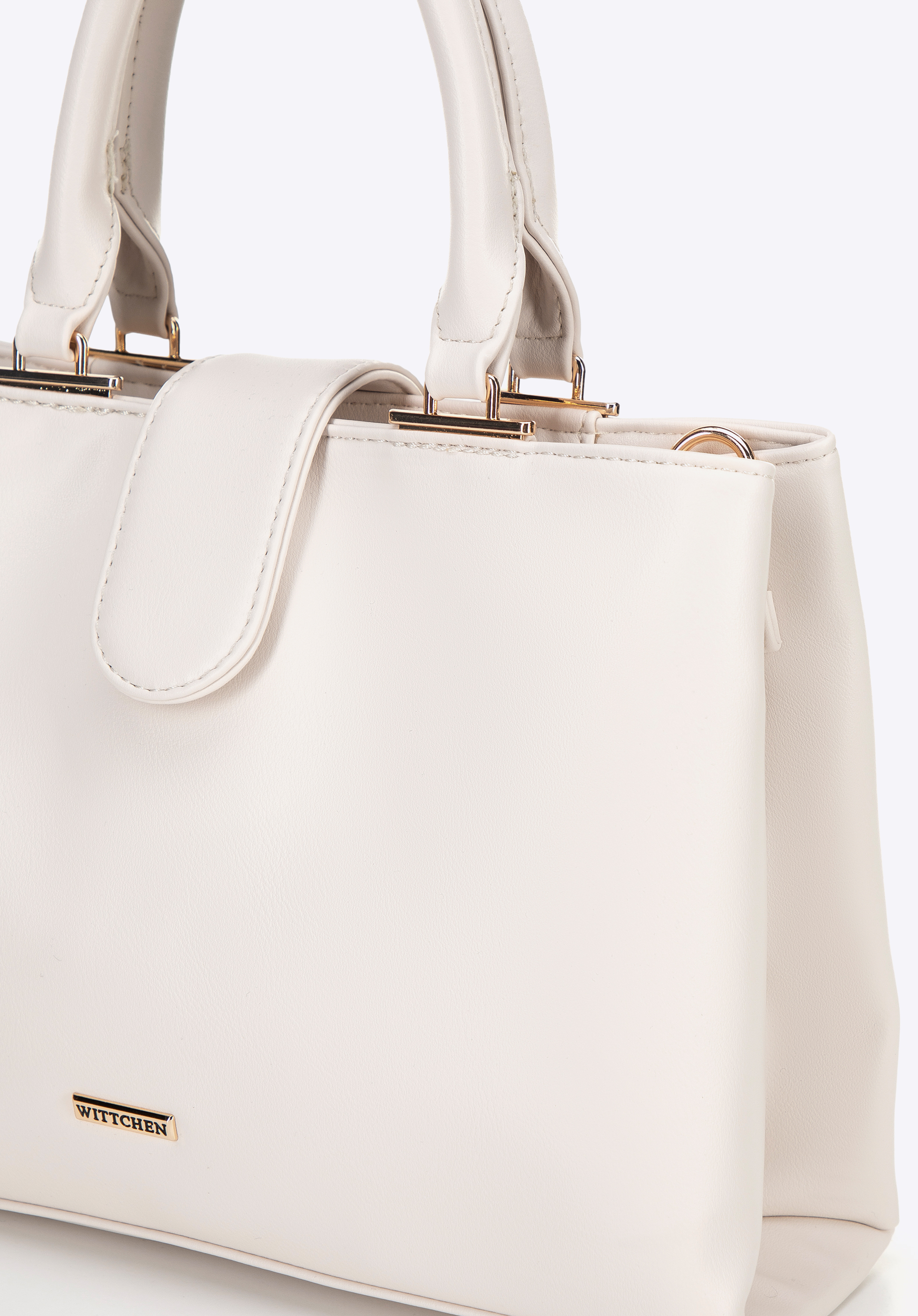 Geanta tip cufăr confecționat din piele ecologică, ce îmbină designul modern cu funcționalitatea. Se închide cu fermoar și este prevăzut cu o curea cu închidere magnetică, ce permite acces rapid și comod la interior. Geanta are două mânere, oferind confort în purtare. Interiorul este conceput pentru o organizare impecabilă – este împărțit în două compartimente separate de un buzunar cu fermoar. În plus, în partea centrală se află trei buzunare, dintre care unul cu închidere pe fermoar, ideale pentru depozitarea obiectelor mici.