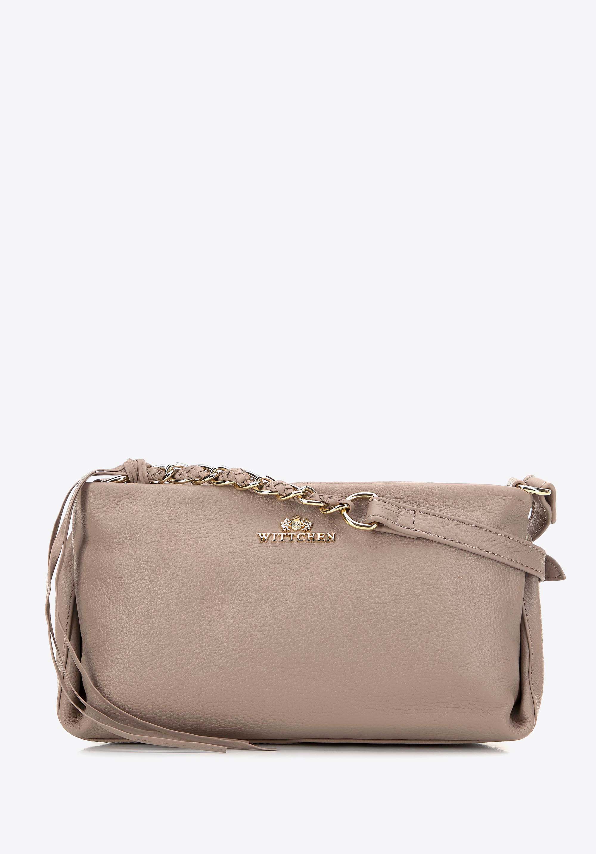 Acest model combină perfect clasicul cu modernul. Fabricată din piele naturală cu o textură în formă de mazăre, geanta nu este doar frumoasă, ci și durabilă și rezistentă la zgârieturi. Moale, ușoară și cu o textură unică care atrage privirea. Geanta are niște capse decorative care adaugă lejeritate și o notă boho. Lanțul metalic de pe curea este o notă elegantă care face geanta perfectă atât pentru ieșirile de zi cu zi, cât și pentru cele de seară.