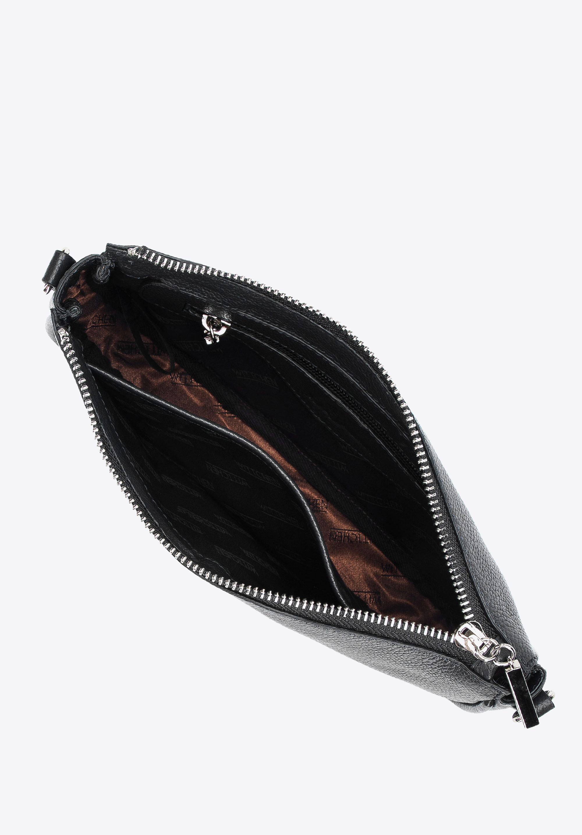 Geantă de damă din piele cu husă dublă și lănțișor negru - argintiu