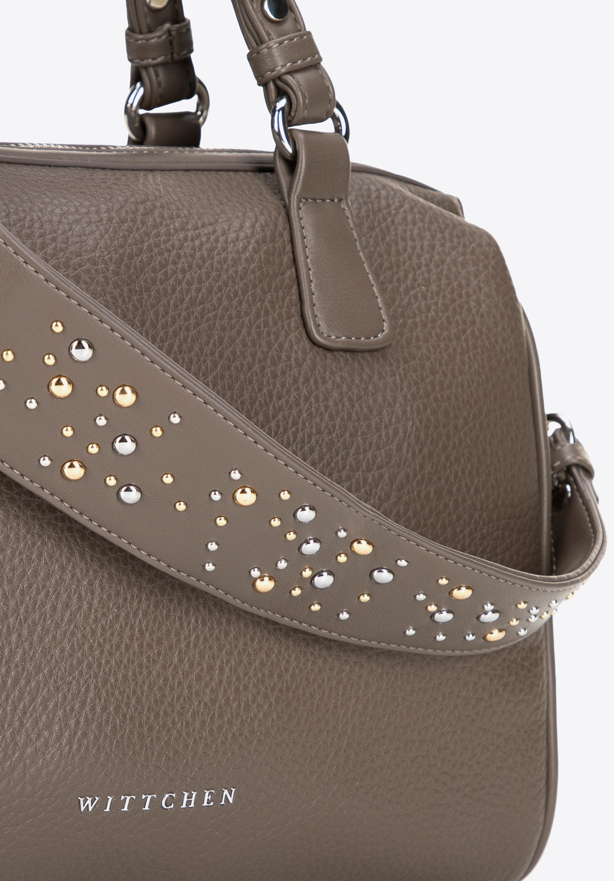 Geantă de damă din piele ecologică cu curea de umăr cu cuie Culoare: bej închis