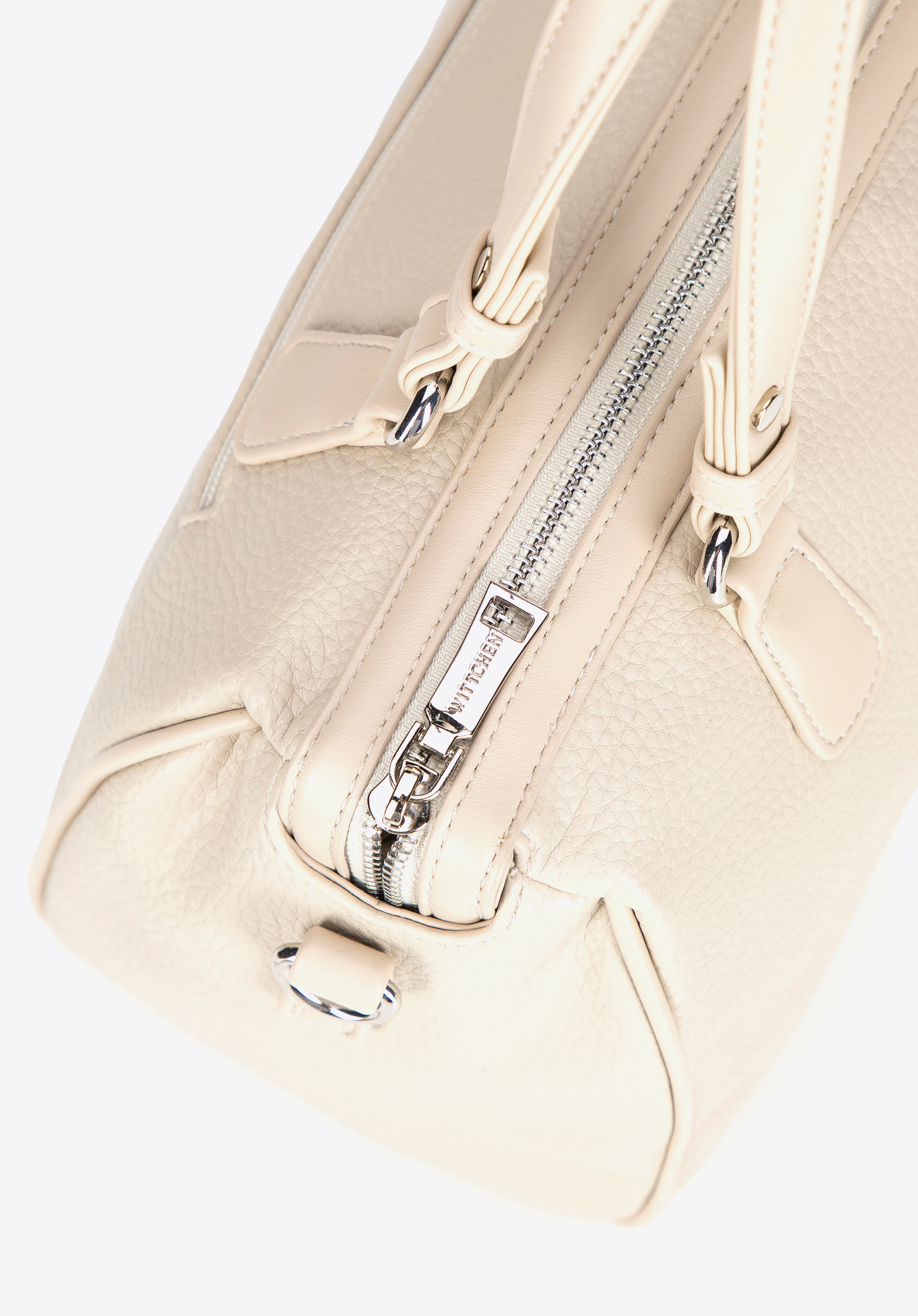 - Design: Geantă modernă cu curea decorativă cu ținte și un logo subtil al mărcii pe față și fermoare – adaugă o notă îndrăzneață și modernă ținutei tale.
