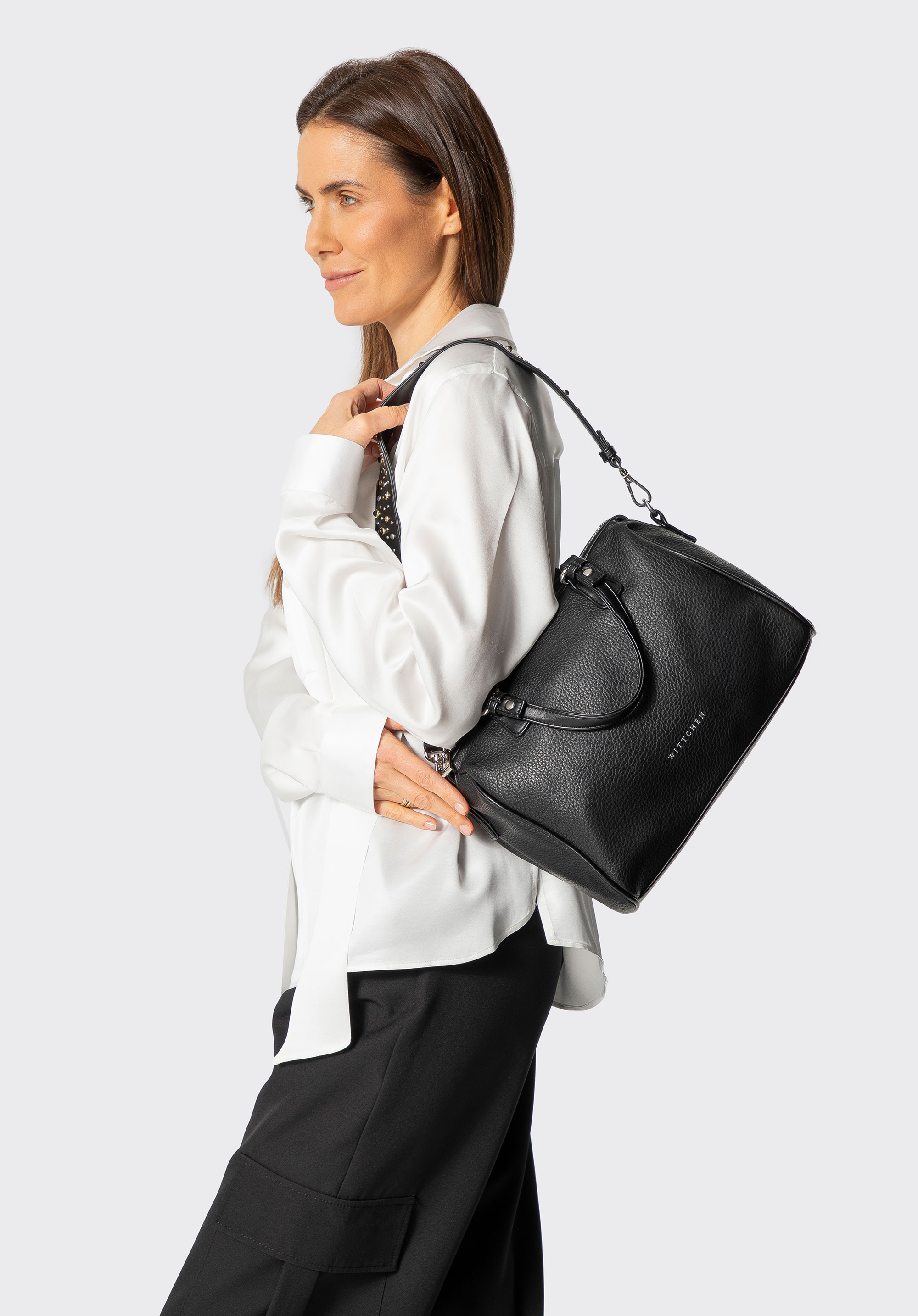 Geantă de damă din piele ecologică cu curea de umăr cu cuie Culoare: negru