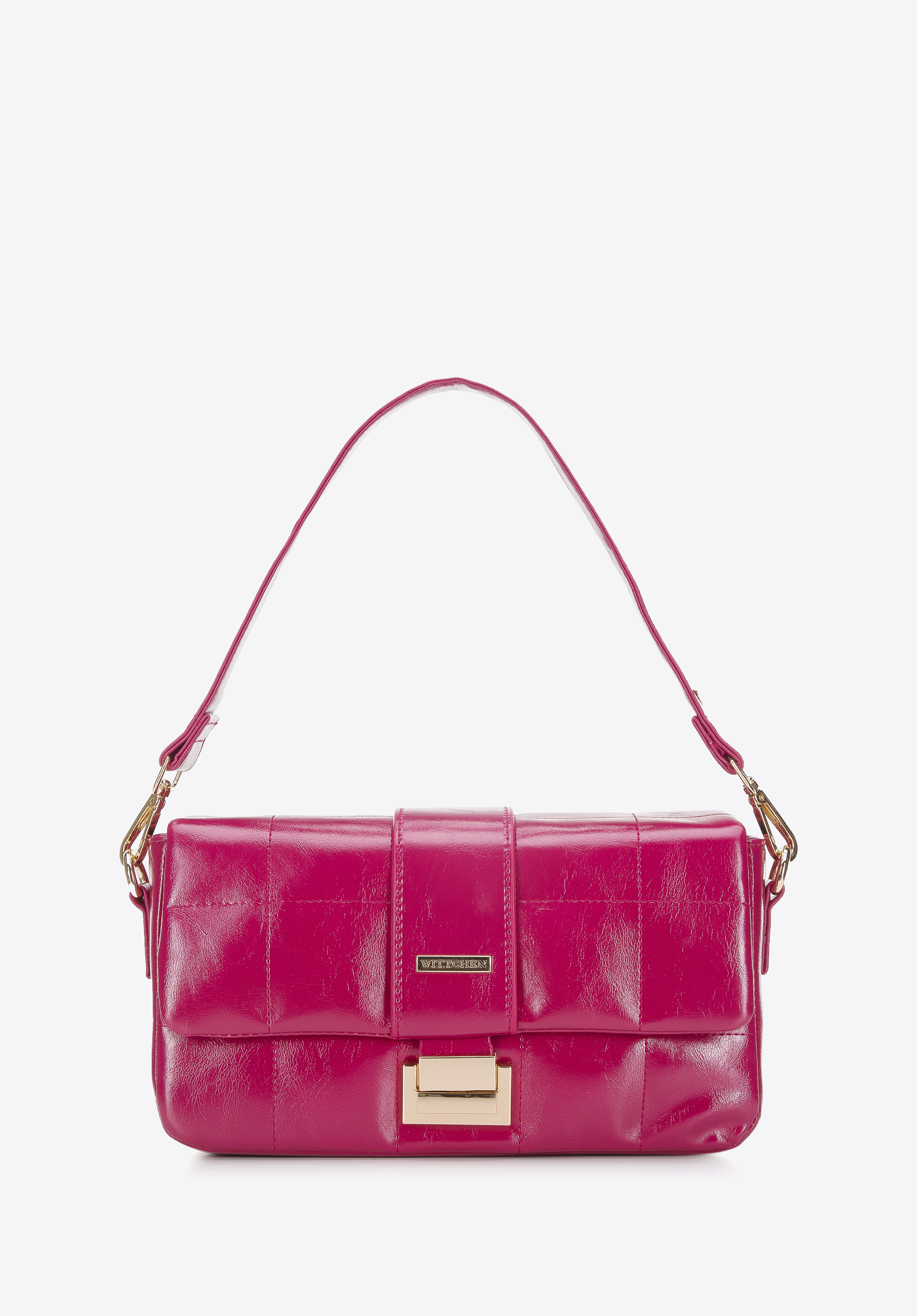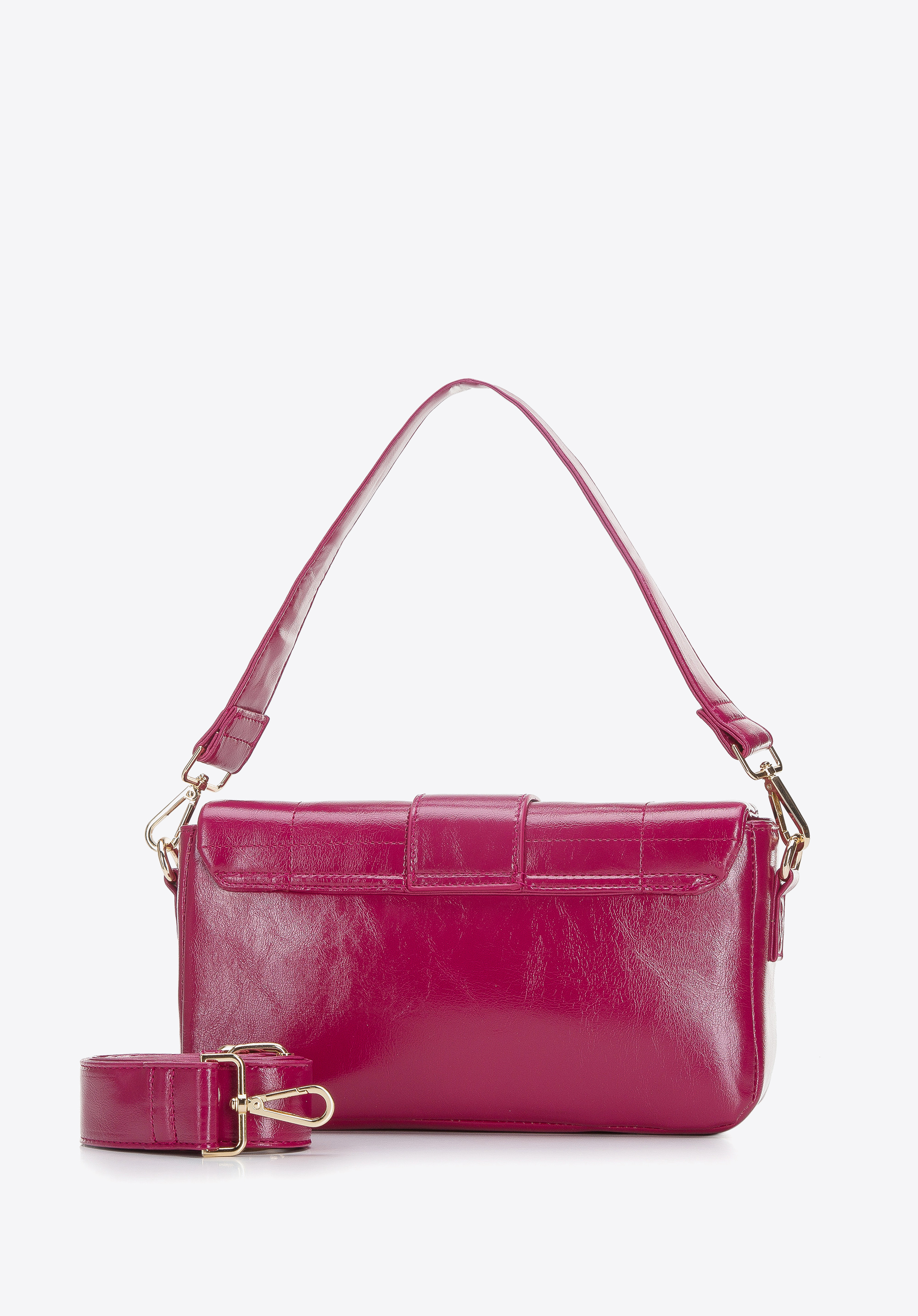 Iată o geantă de mână pe lângă care este imposibil să treci cu indiferență. Este cusută din piele ecologică lucioasă, cu o textură de jug abia perceptibilă, matlasată în carouri mari. Pielea ecologică lucioasă este completată de feronerie și de o cataramă geometrică. Geanta are o structură rigidizată, astfel încât arată bine pe umăr. În interior, în ea încap lucruri esențiale, cum ar fi portofelul, telefonul, un mic calendar și cremă și câteva obiecte mici. Va arăta foarte bine cu o rochie mulată pentru ocazii speciale sau cu clopoței din denim și un top scurt pentru uzul zilnic. Această geantă de mână din piele ecologică matlasată lucioasă este un accesoriu extrem de chic pentru orice ținută.