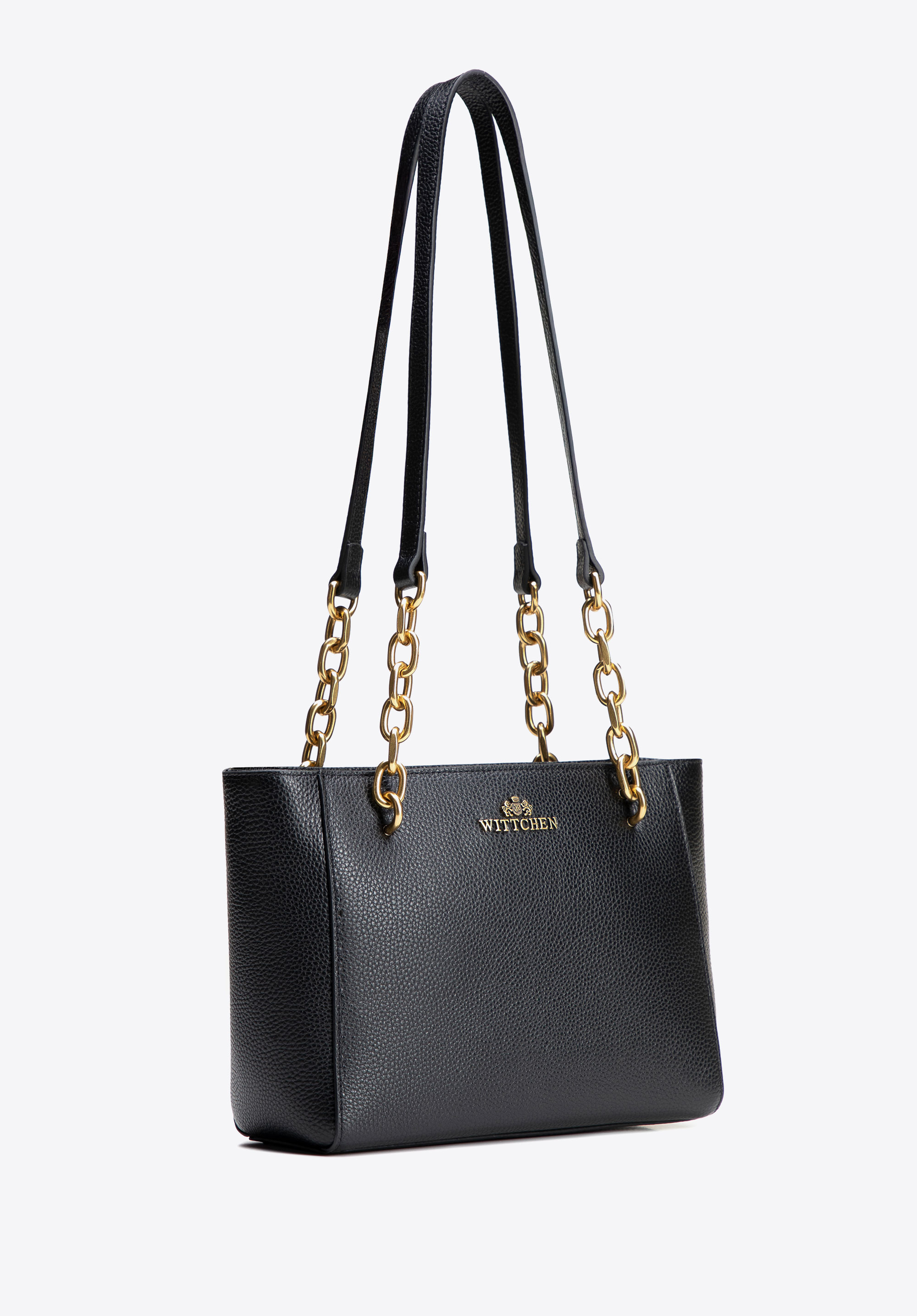 Geantă elegantă din piele cu mânere cu lanț