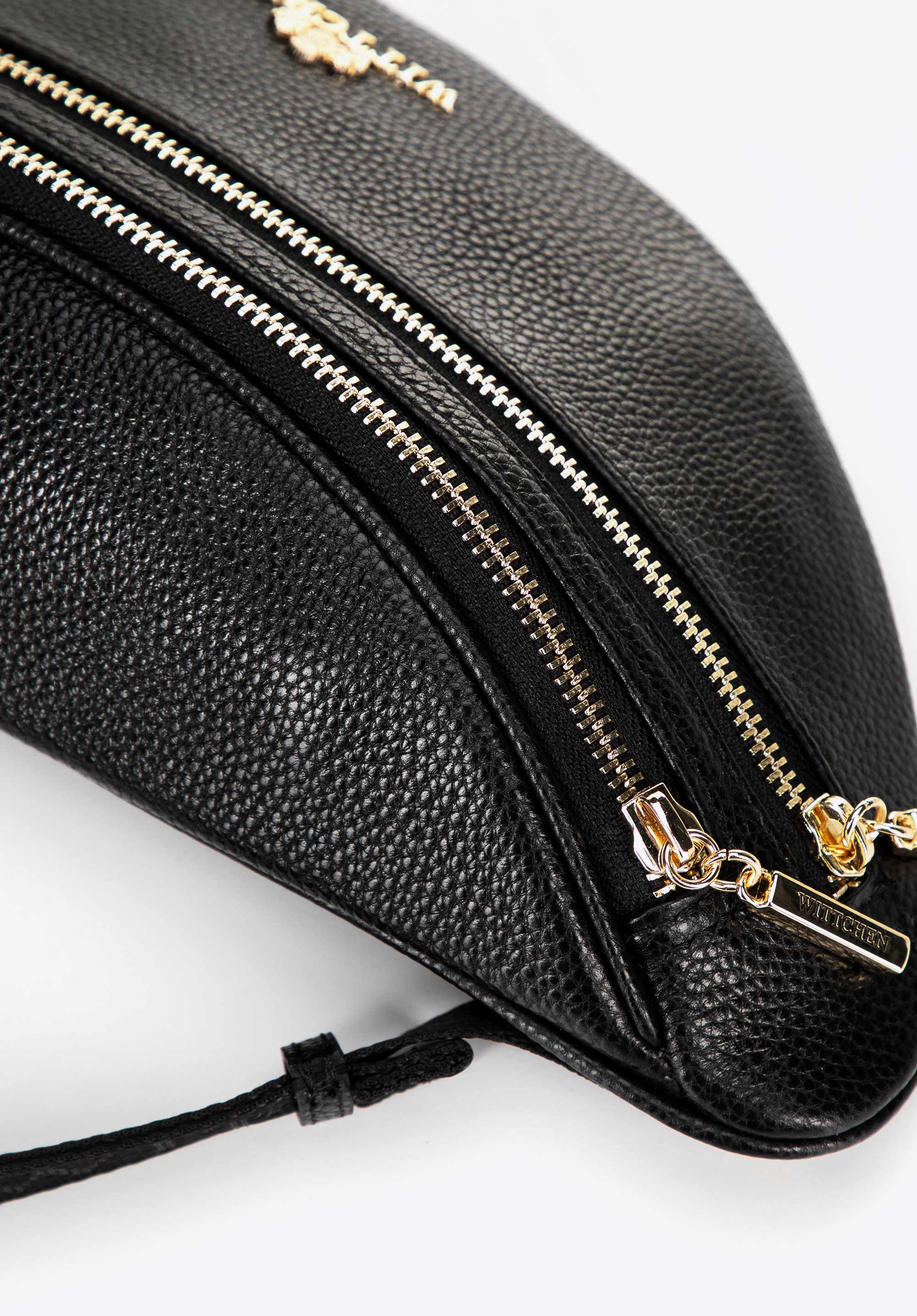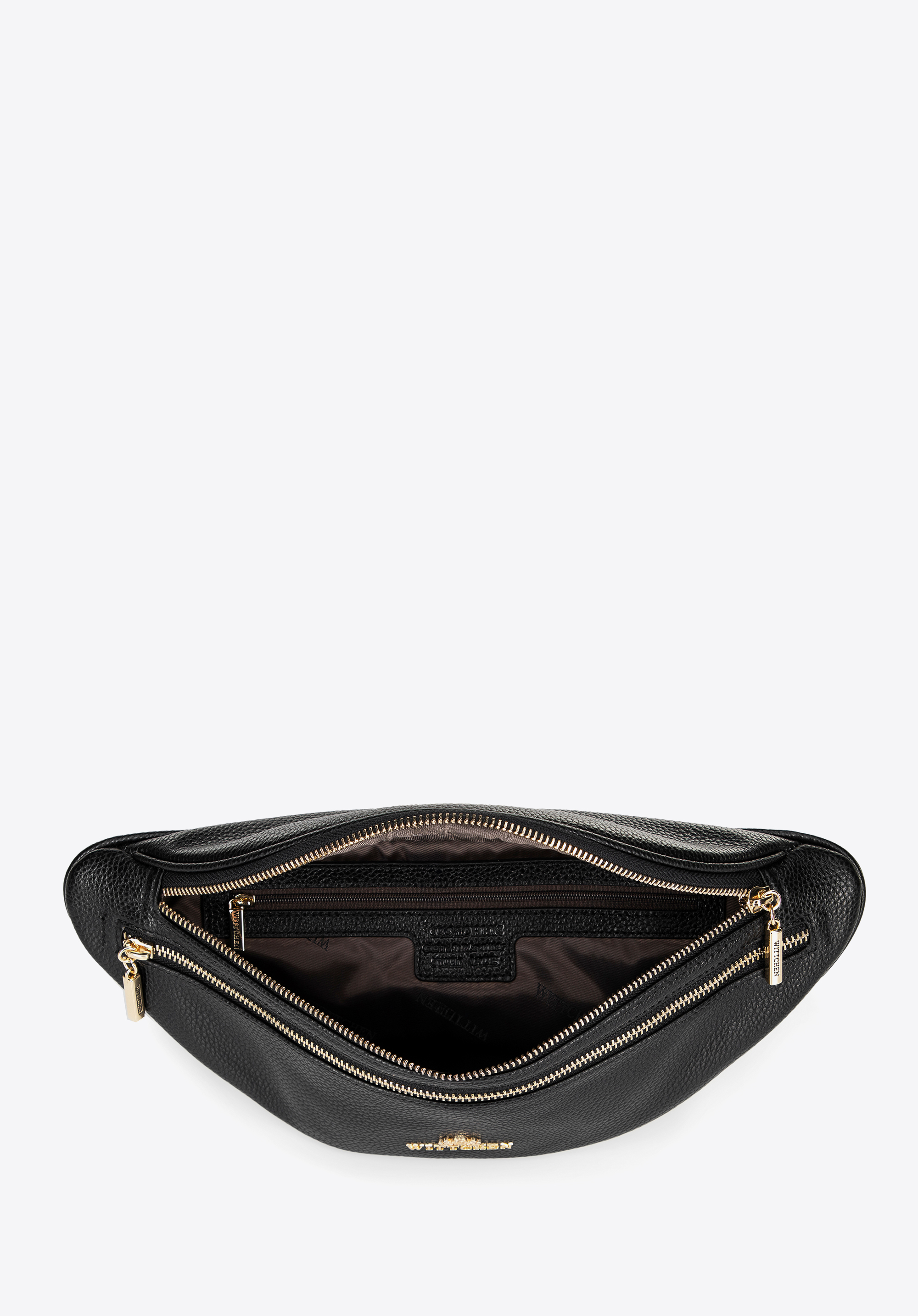 Descoperiți funcționalitatea și stilul într-unul! Geanta noastră de talie pentru femei este soluția perfectă de zi cu zi – combinând durabilitatea cu designul atemporal, făcând-o un plus indispensabil pentru garderoba ta. Fabricată din piele naturală, este atât elegantă, cât și robustă. Asigurat cu fermoar, vă păstrează lucrurile esențiale în siguranță. Buzunarele proiectate atent, inclusiv unul cu fermoar, oferă acces rapid la cele mai importante articole ale tale. Un buzunar suplimentar pe spate asigură accesul facil la lucrurile pe care vrei să le ții la îndemână.
