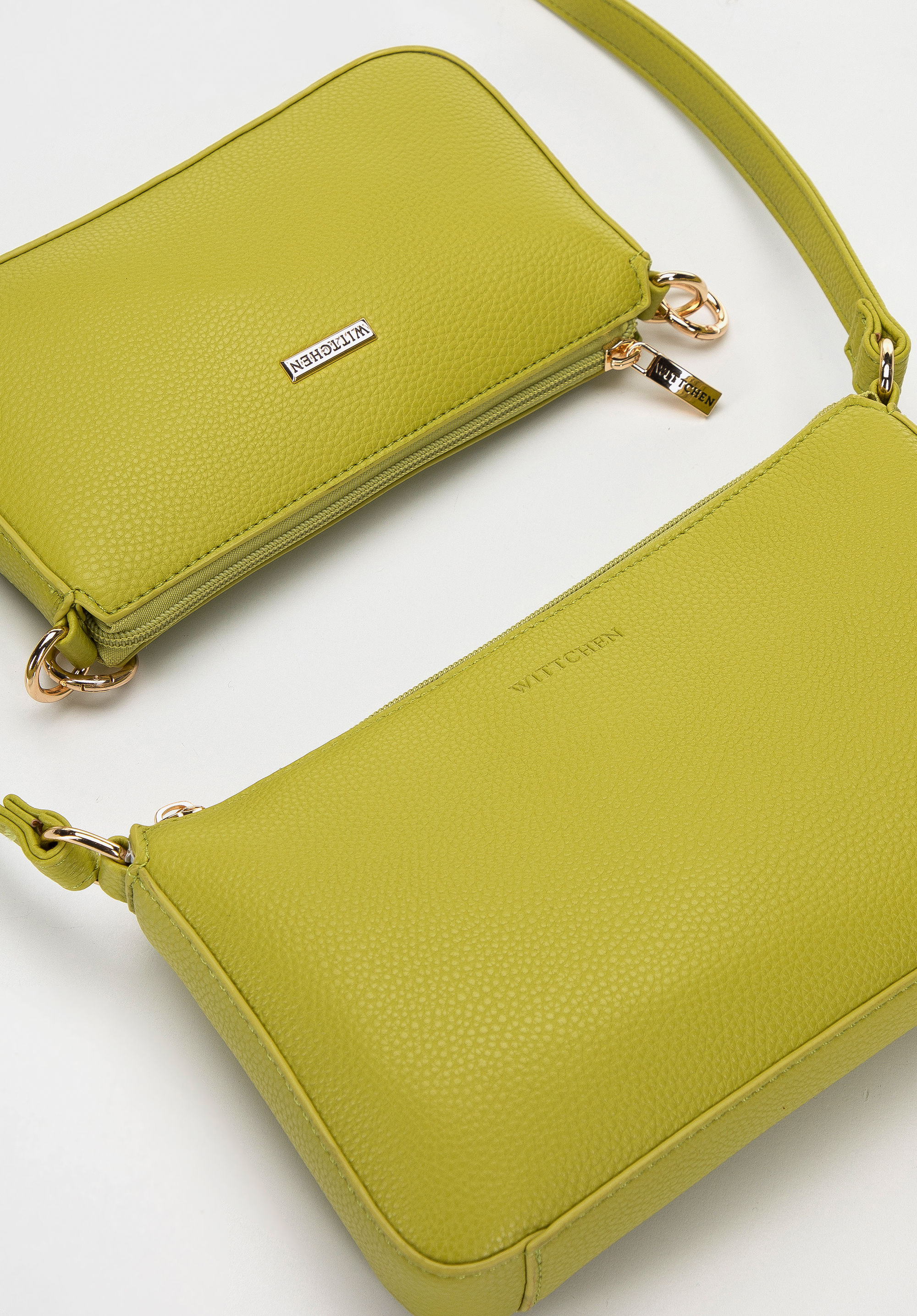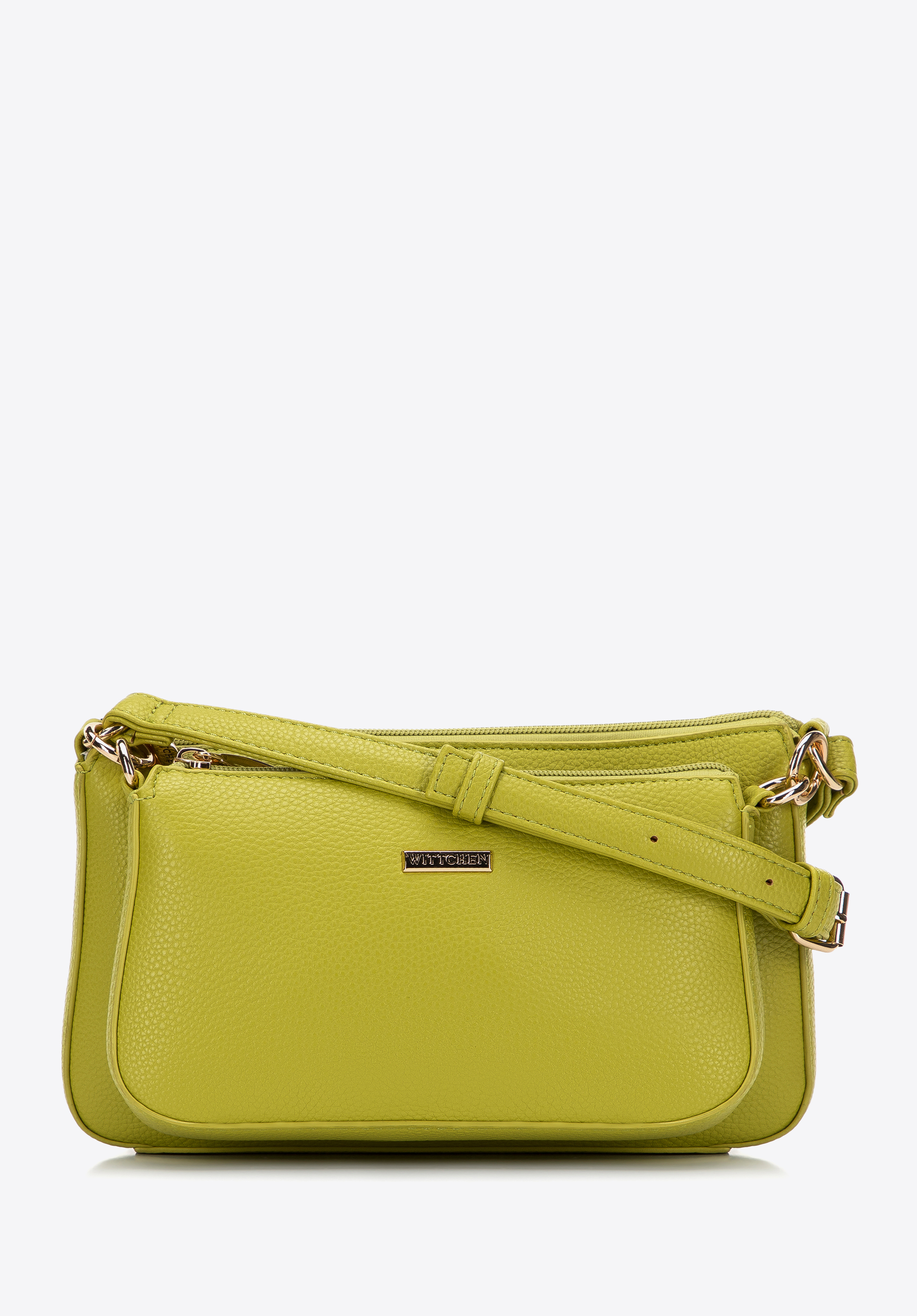 Acest accesoriu practic și unic este o alegere excelentă pentru multe sezoane viitoare. Concepute cu două genți separate din piele artificială, există o gamă de stiluri: aceste genți de mână pot fi purtate separat sau ca o singură piesă. O curea de umăr din lanț detașabilă adaugă o notă de strălucire acestui accesoriu. În interior puteți încăpea un portofel, telefon, șervețele, câteva articole de toaletă și obiecte mici. O geantă de mână dublă din piele artificială de damă cu o curea de umăr decorativă din lanț va arăta grozav cu rochia ta de cocktail preferată, pantaloni chino și o cămașă.