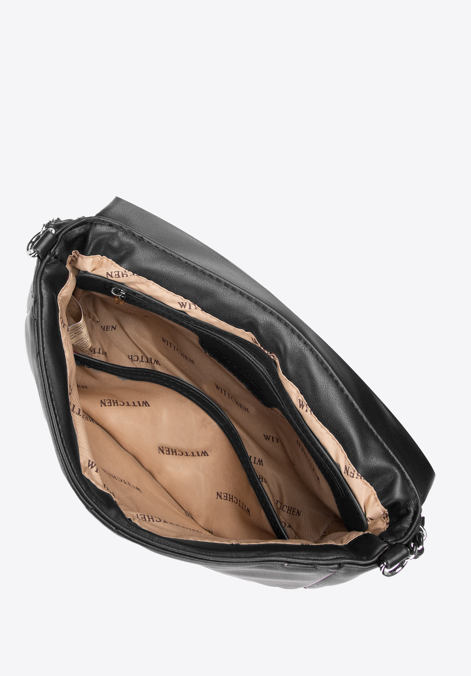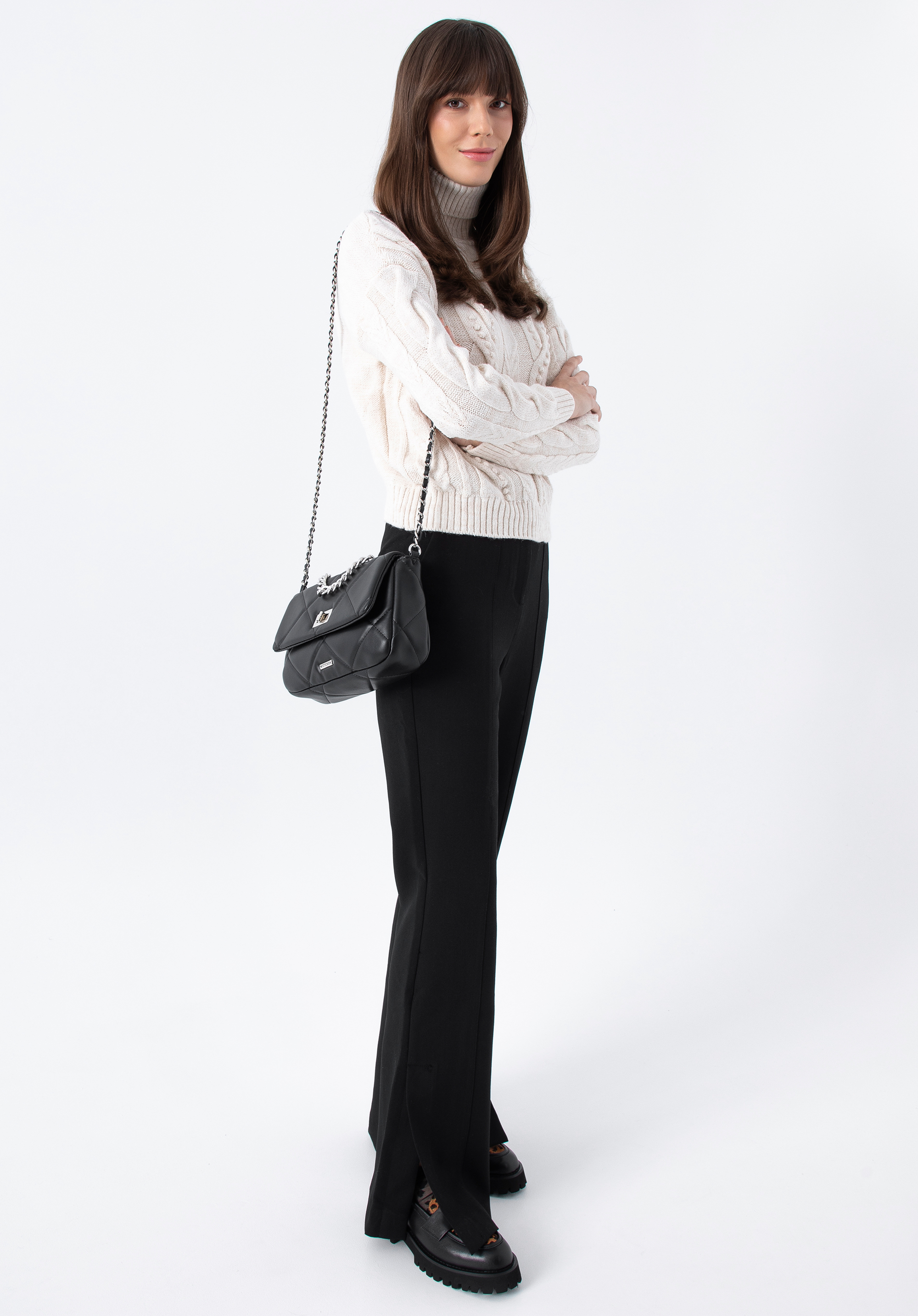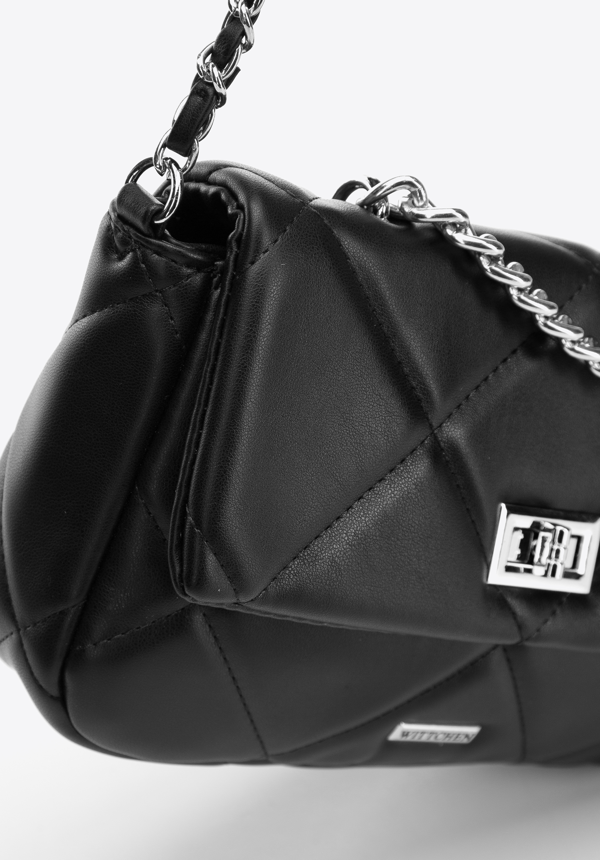 Această geantă elegantă va atrage orice femeie căreia îi place stilul clasic parizian. Aceasta geantă de damă plăcută la atingere este accesoriul perfect pentru utilizarea de zi cu zi. Fabricat din material textil matlasat de piele, această geantă cu clapă este împodobită cu design matlasat. Poartă-l cu blugi și o jachetă sau rochia ta neagră preferată - va arăta bine în orice situație. Acest accesoriu se potrivește unui telefon mobil, portofel, bilet, calendar mic, cremă de mâini și alte necesități. Această geantă mică cu clapetă matlasată este o alegere excelentă, cu o notă pariziană, pentru fiecare femeie elegantă.
