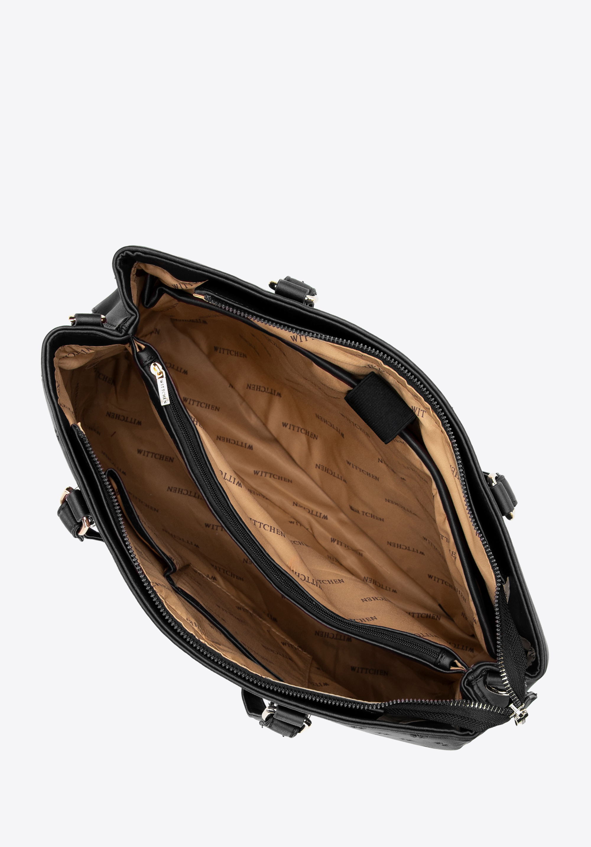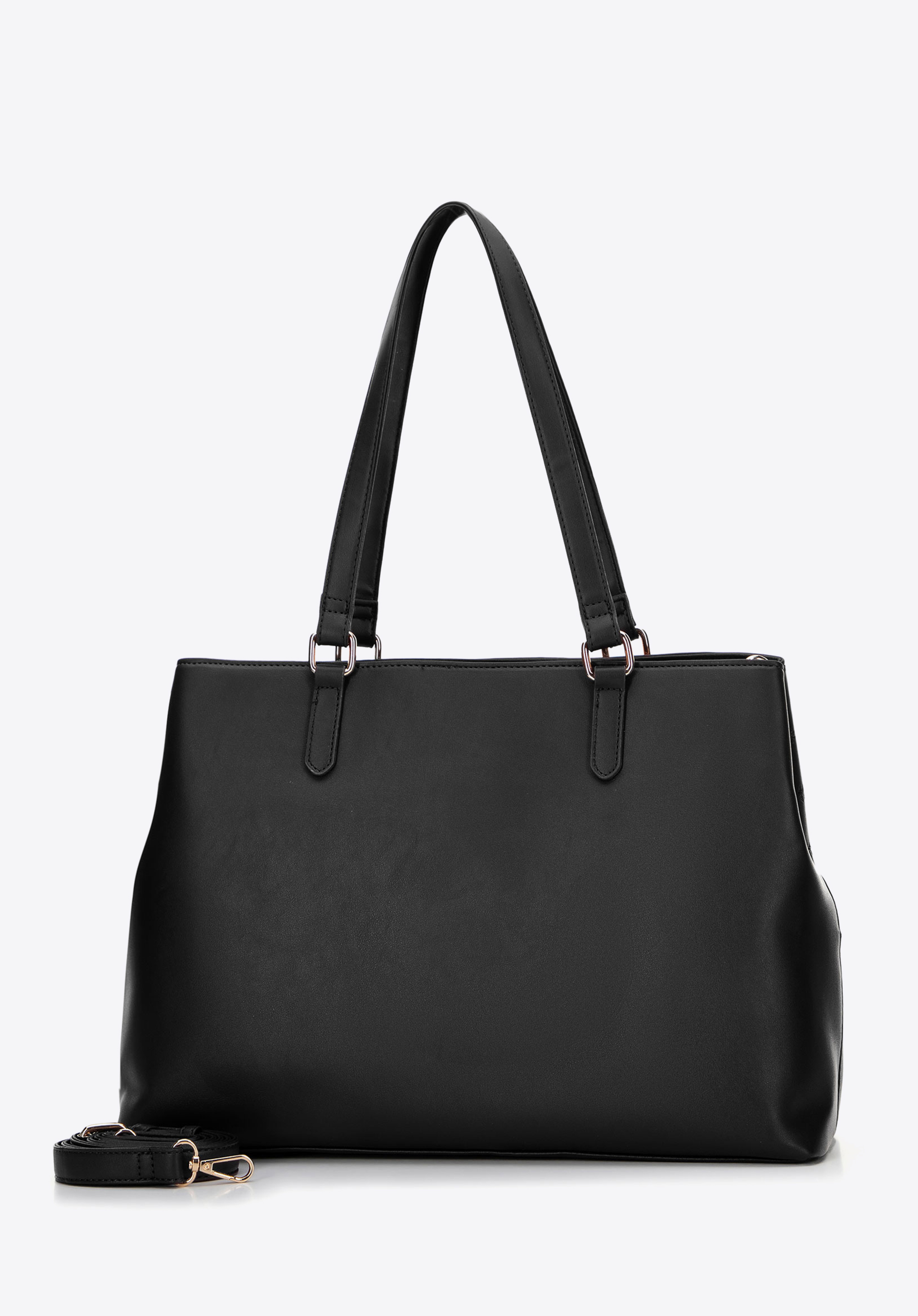 - Interior organizat: Geanta shopper are două compartimente încăpătoare pentru depozitare eficientă. Al doilea compartiment include două buzunare deschise pentru telefon, chei sau produse cosmetice.