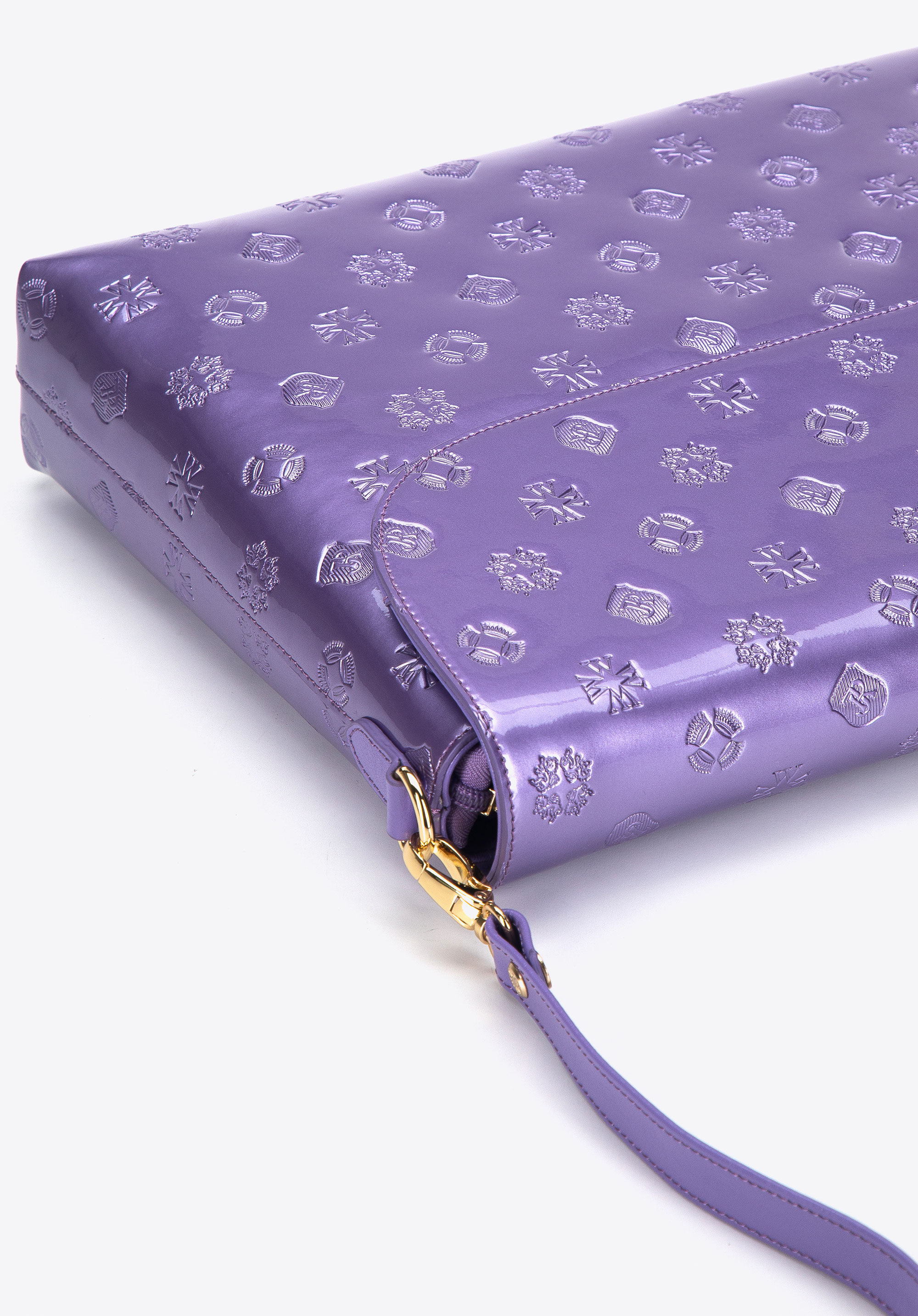 O geantă de damă originală merită să ai în garderoba ta nu doar pentru ocazii speciale. Aceasta este confecționată din piele lăcuită cu o monogramă în relief, cu feronerie aurie lucioasă. Este mare și dreptunghiulară, astfel încât poate funcționa ca o servietă șic. Înăuntru, veți putea încăpea tot ce aveți nevoie pentru muncă: documente A4, un calendar și notițe, precum și multe bibelouri personale. Are două compartimente, astfel încât este ușor să păstrați totul în ordine. Această geantă va completa un costum elegant de damă, de exemplu, și va adăuga o notă chic blugilor casual și unui tricou. Puteți lua această geantă mare de damă din piele întoarsă metalică cu patent la universitate, la serviciu sau la plimbare - și veți arăta deosebit în orice situație.