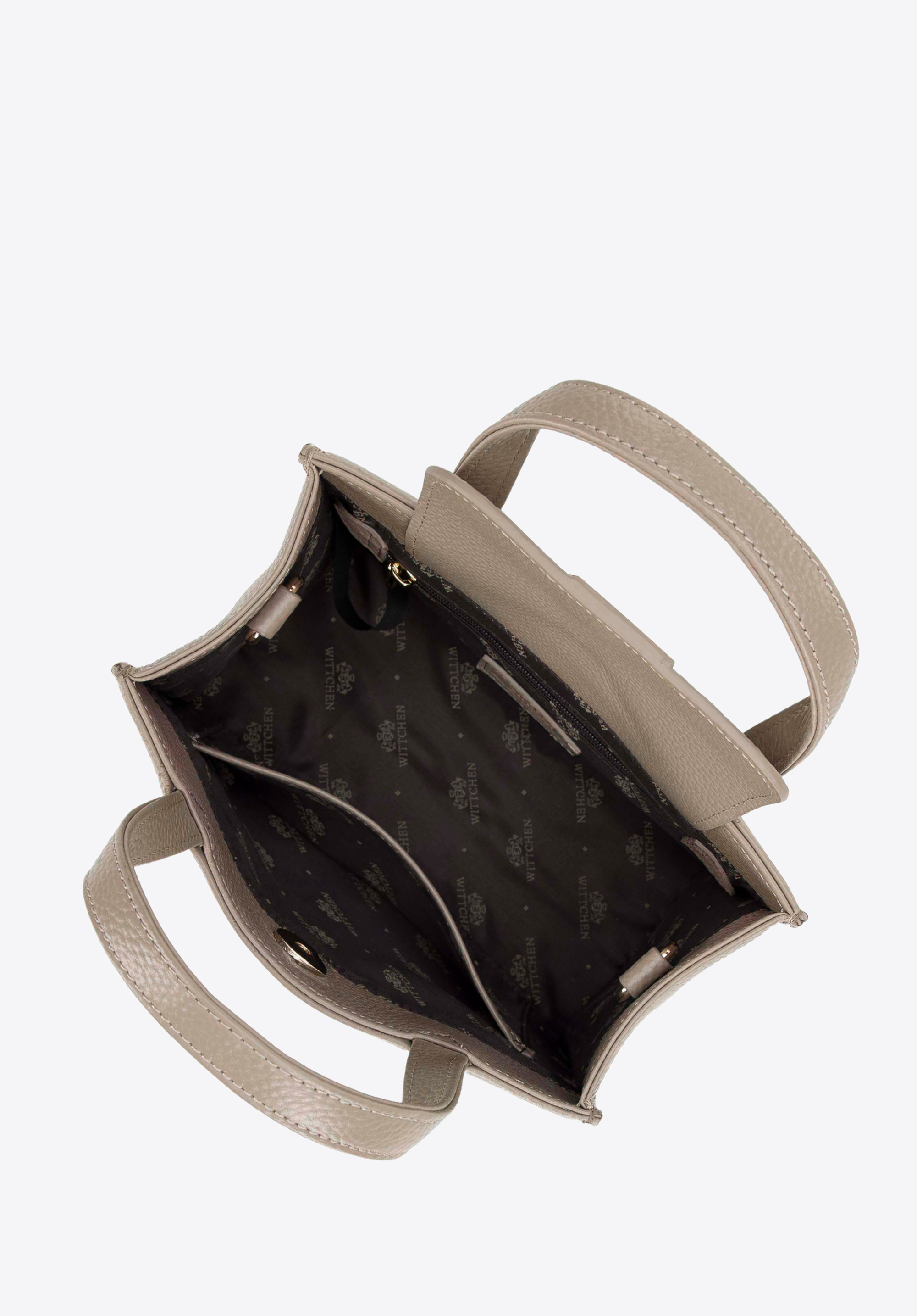- Detalii practice: Două mânere permit ca geanta să fie purtată confortabil în mână, adăugând stil oricărei ținute.
