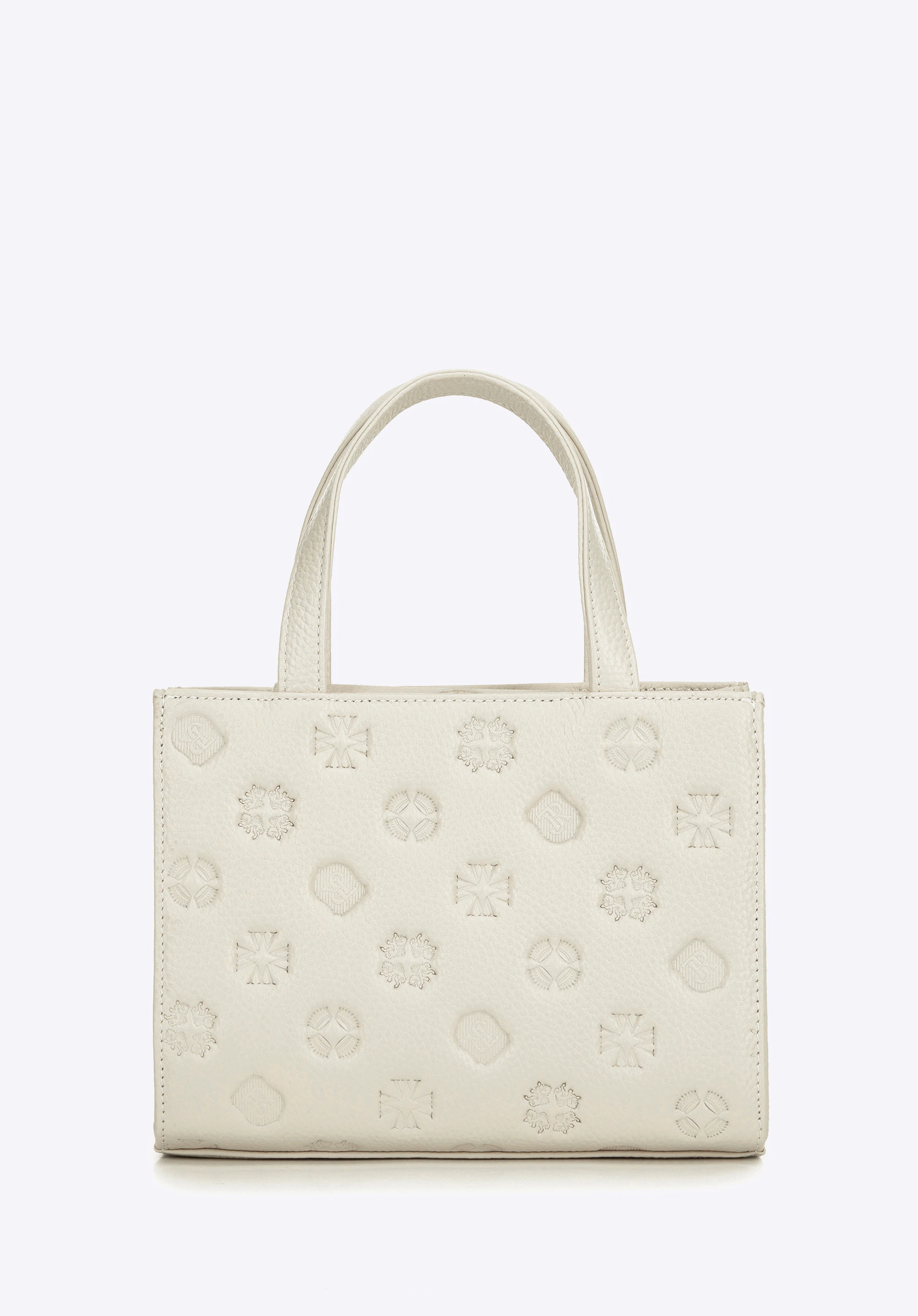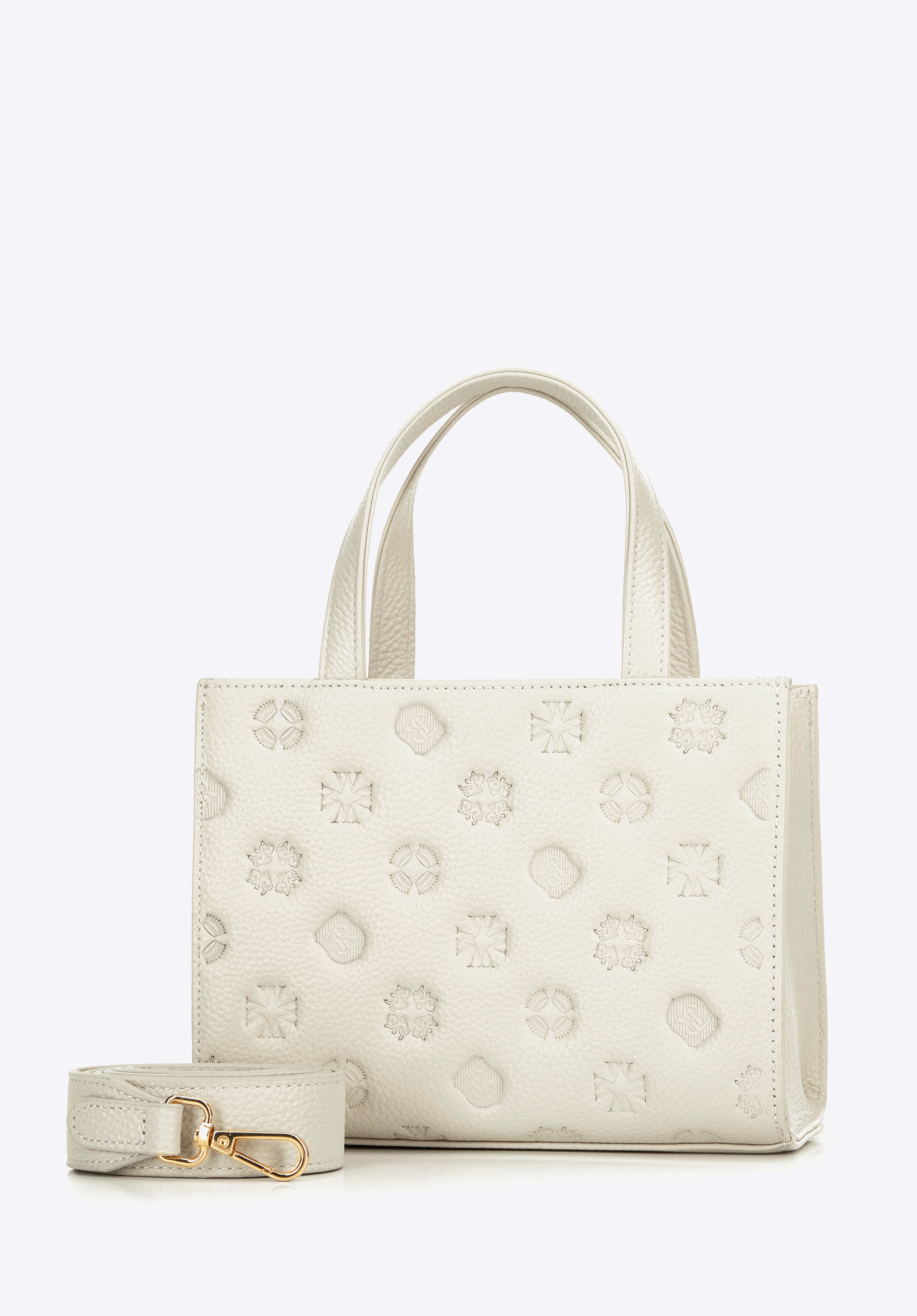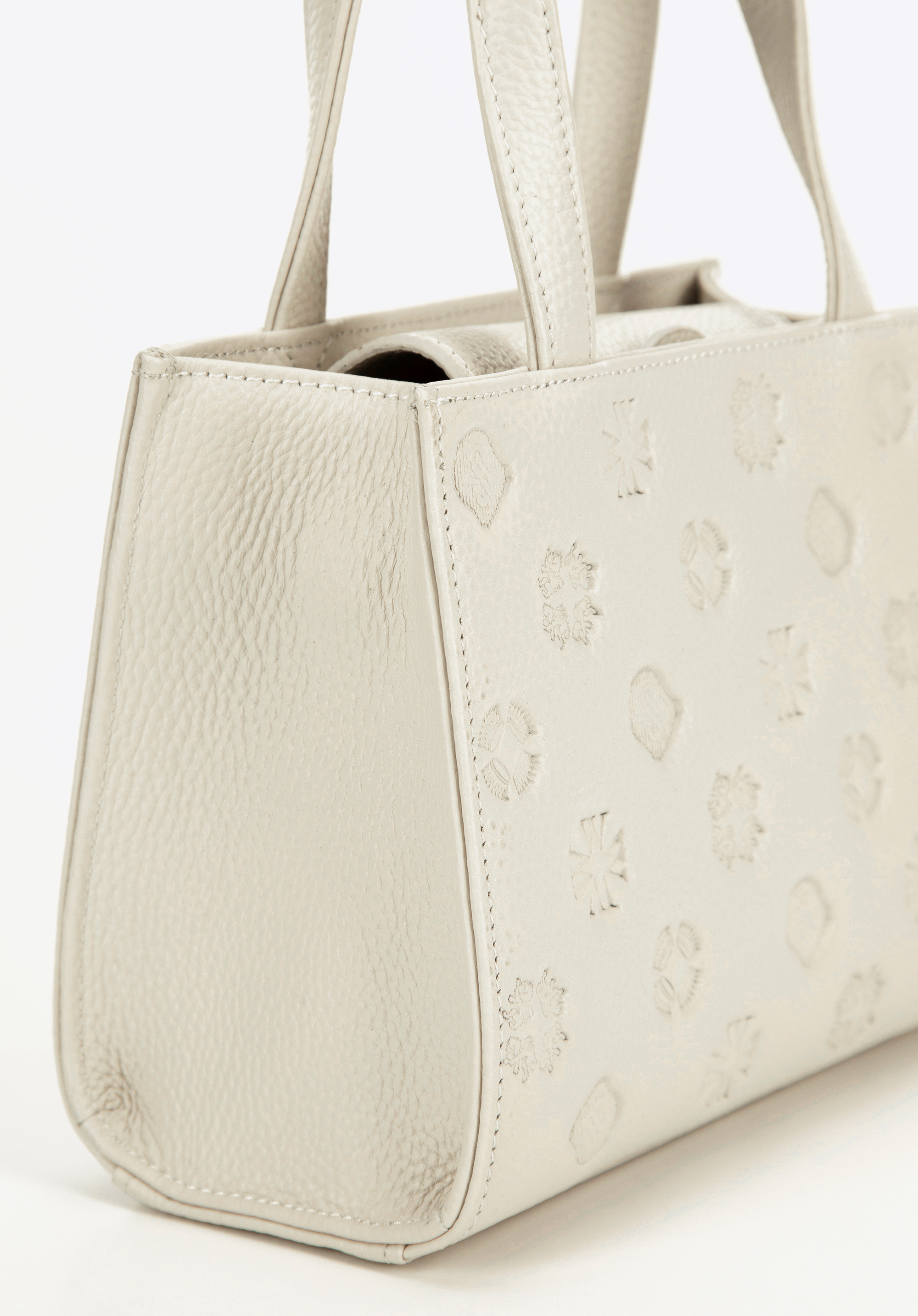 - Material: Pielea naturală embosată cu semnătura producătorului este un material elegant și durabil care subliniază caracterul luxos al genții.