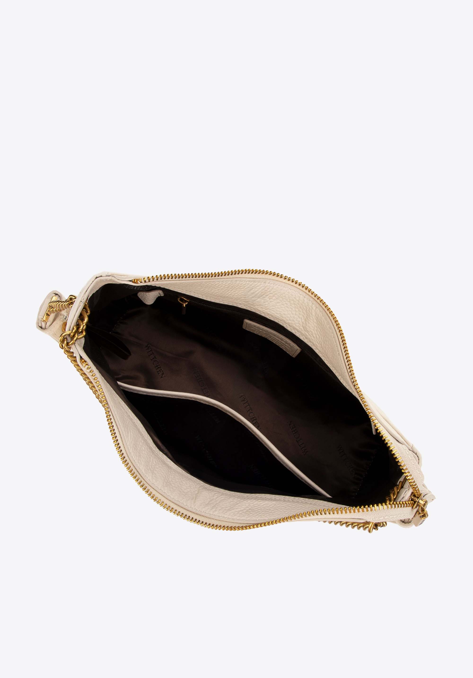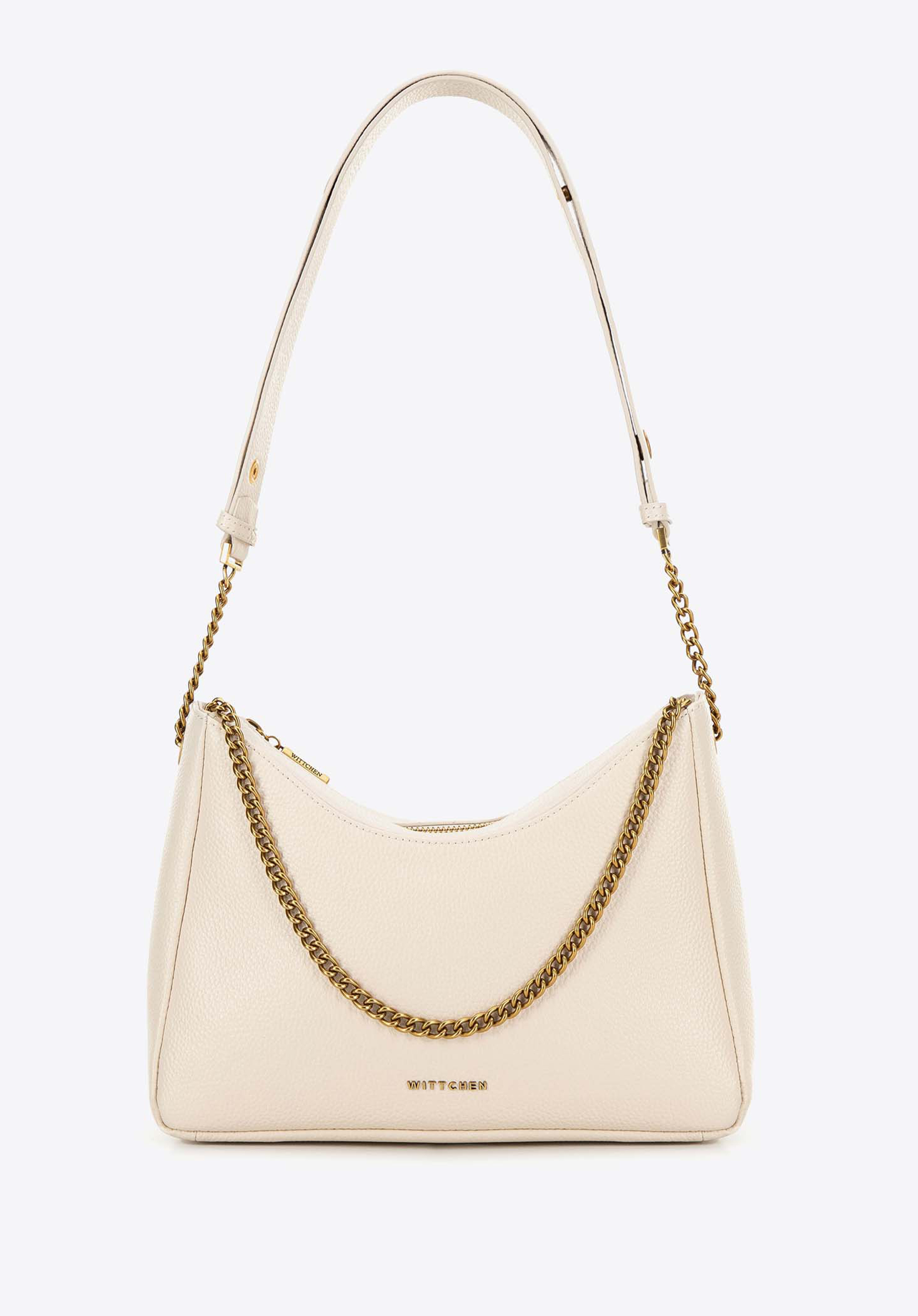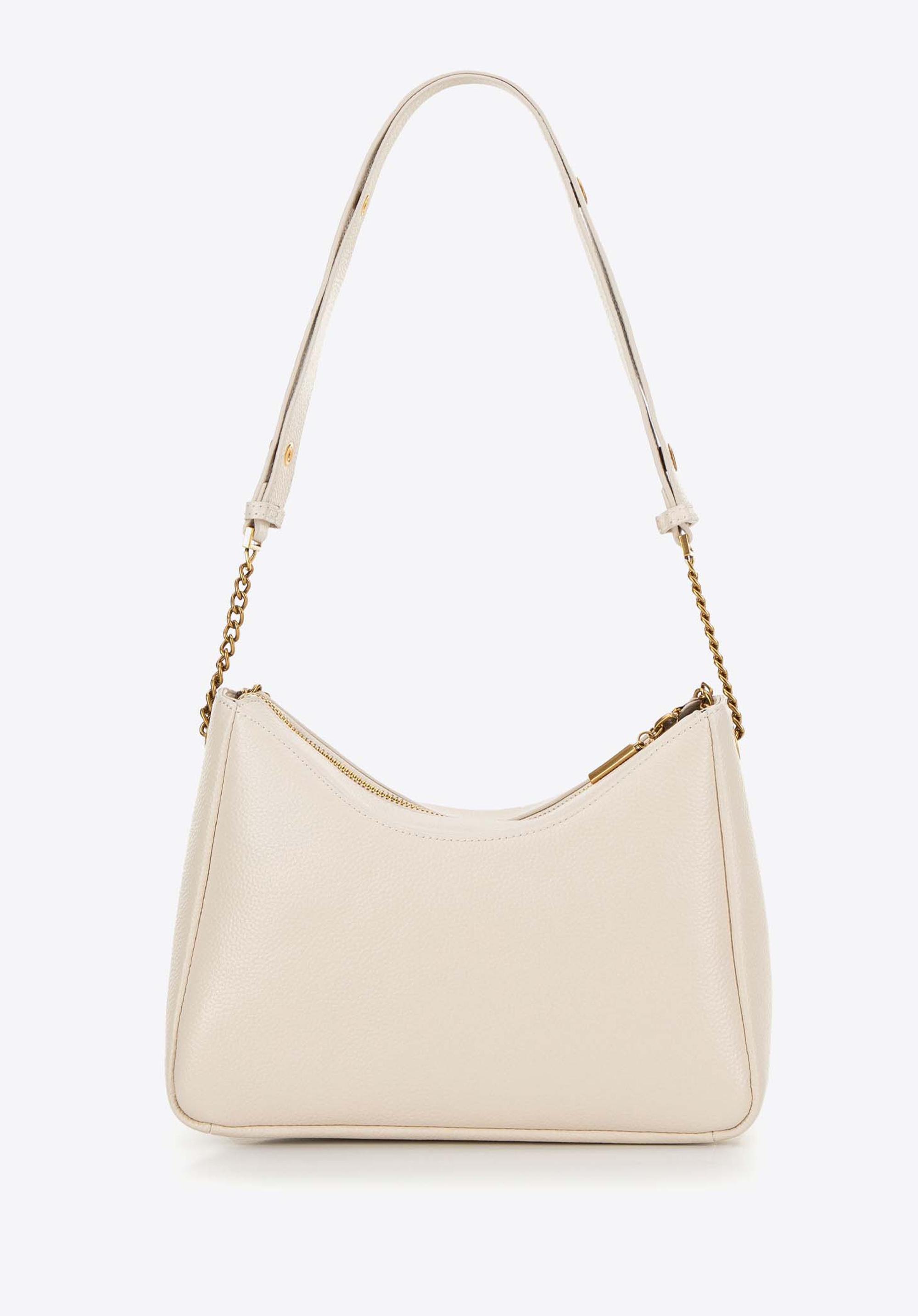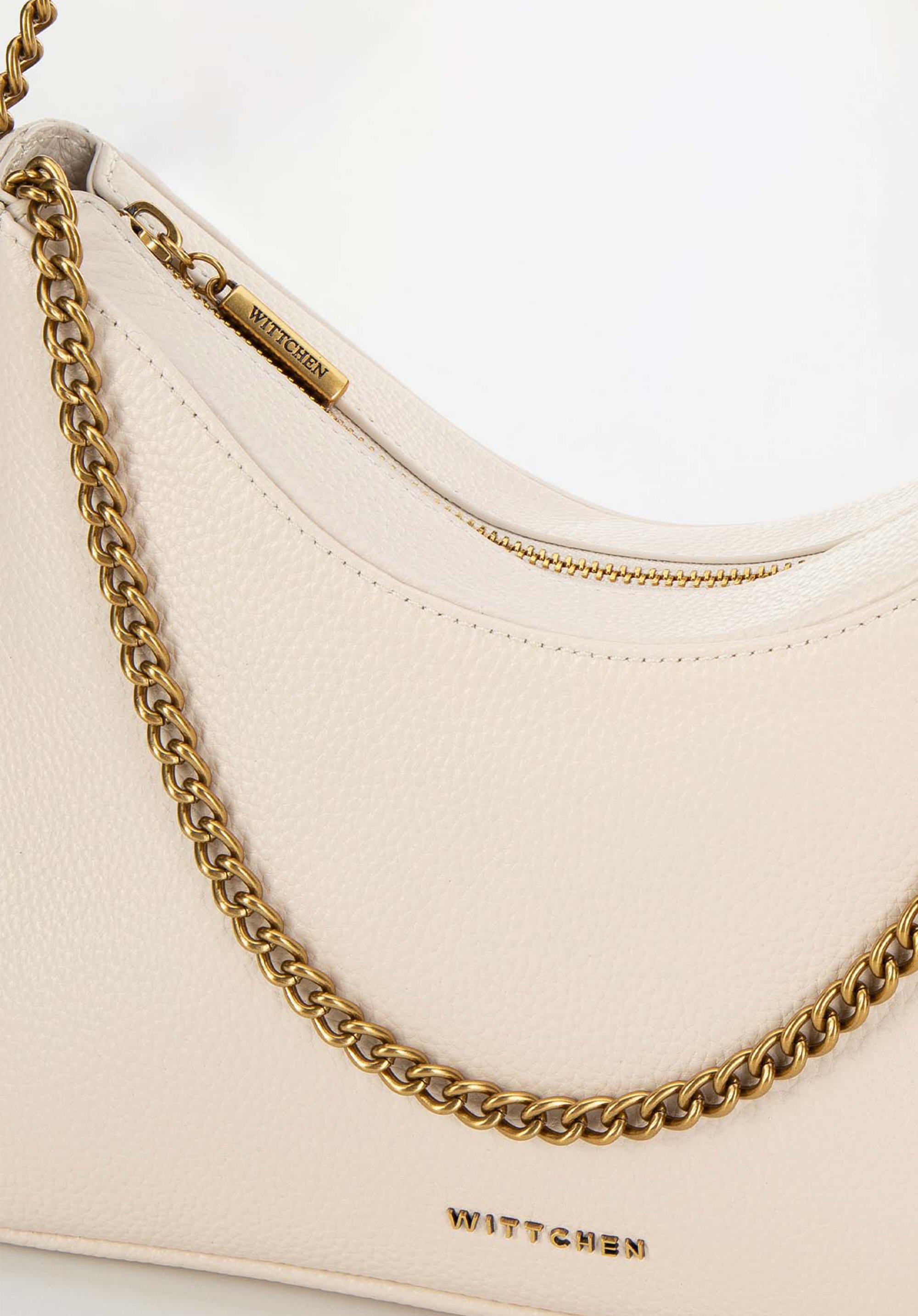 - Atingeri estetice: Un lanț de bijuterii și o curea lată cu nituri dau genții o notă unică și la modă.