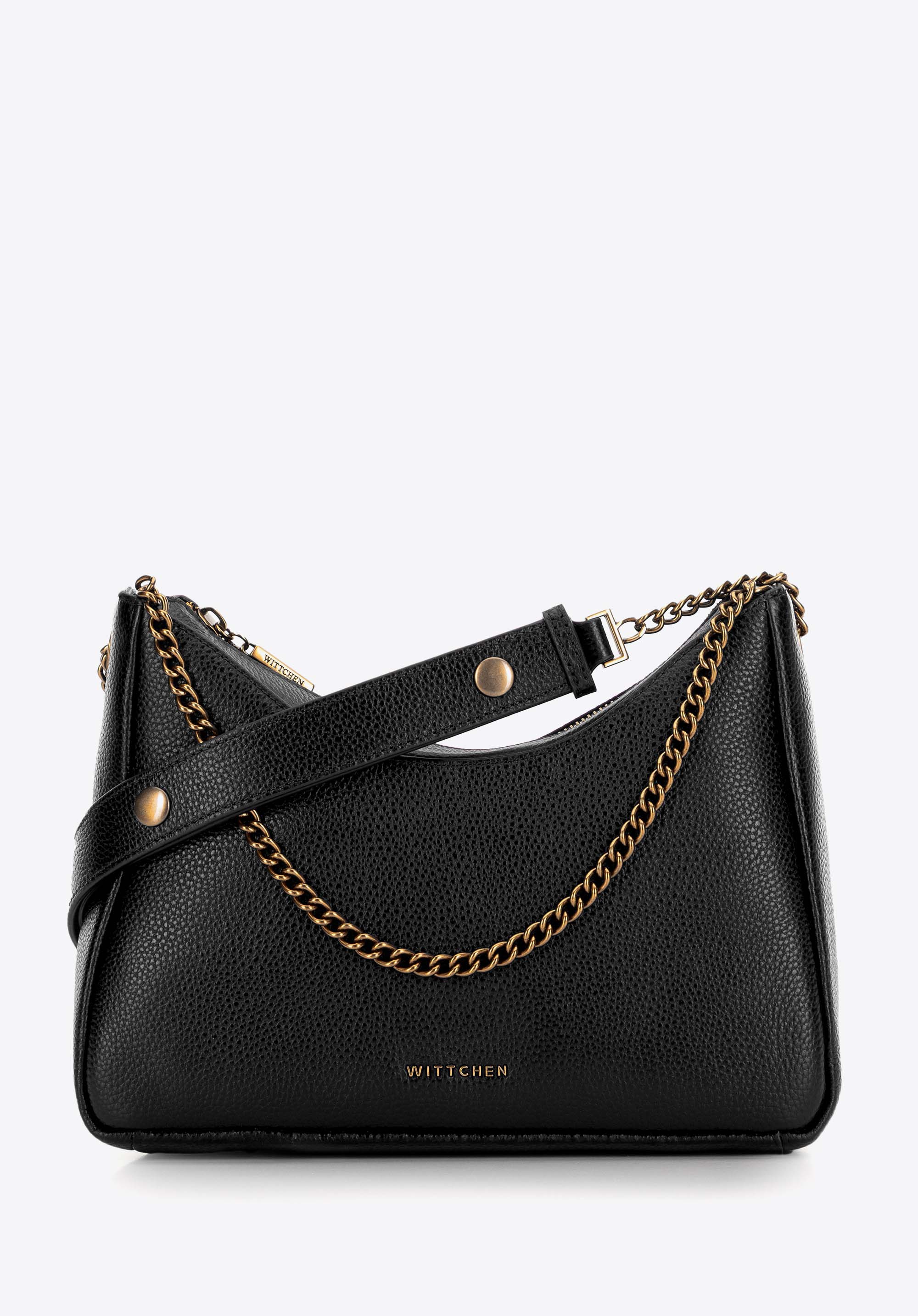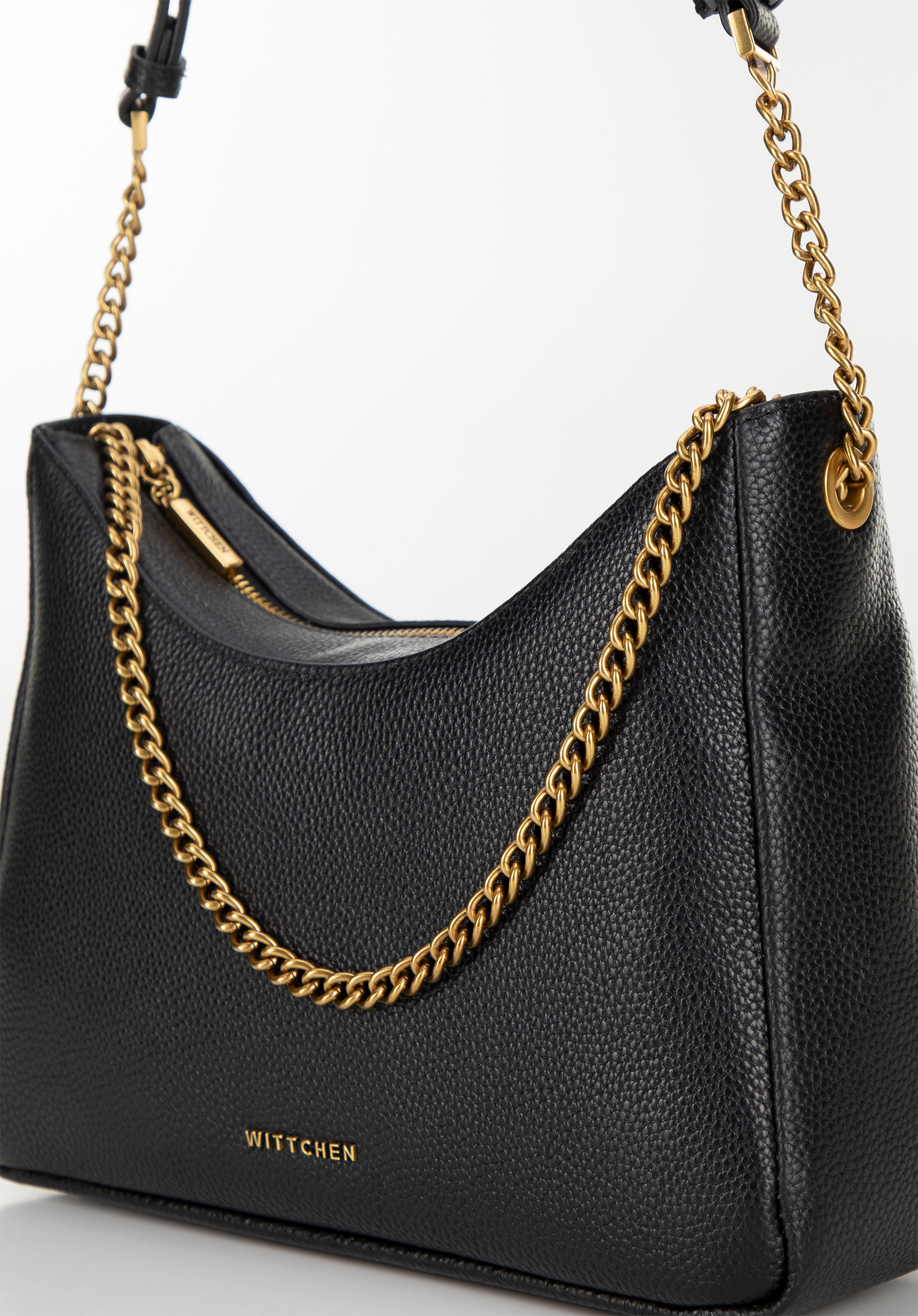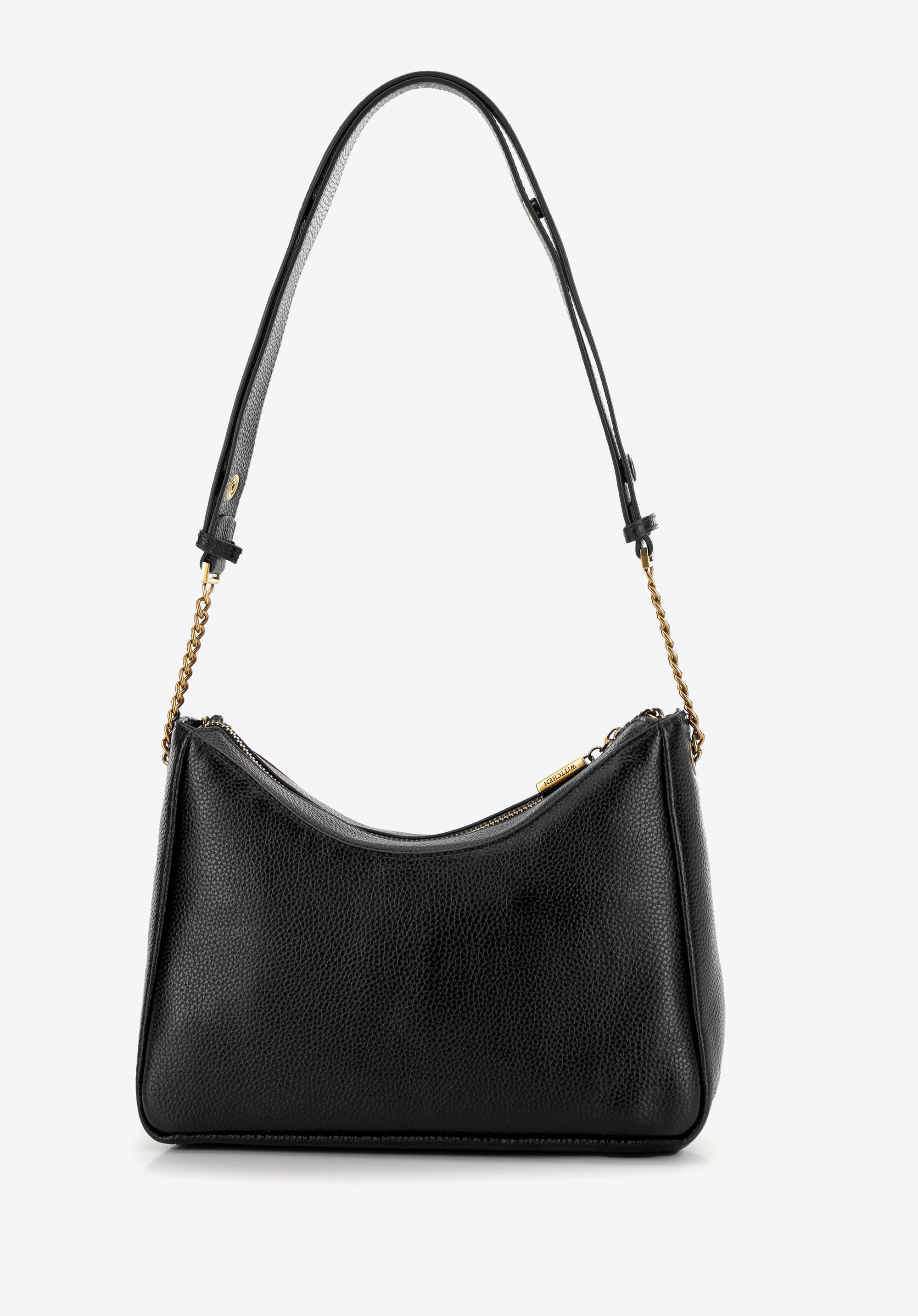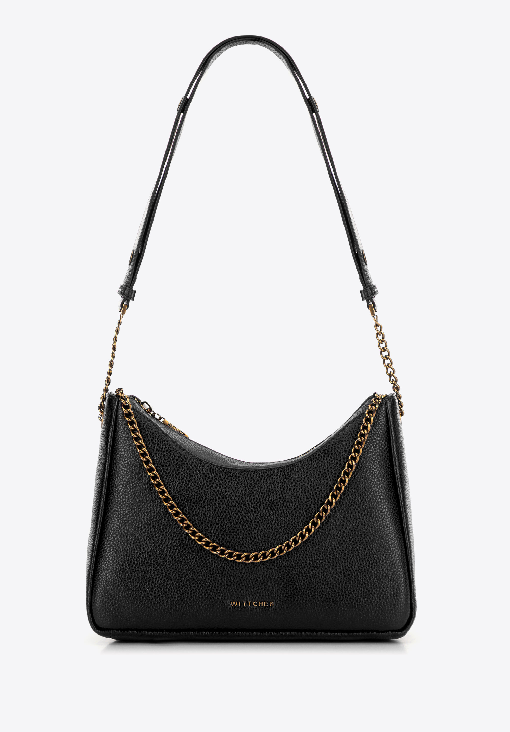 - Atingeri estetice: Un lanț de bijuterii și o curea lată cu nituri dau genții o notă unică și la modă.