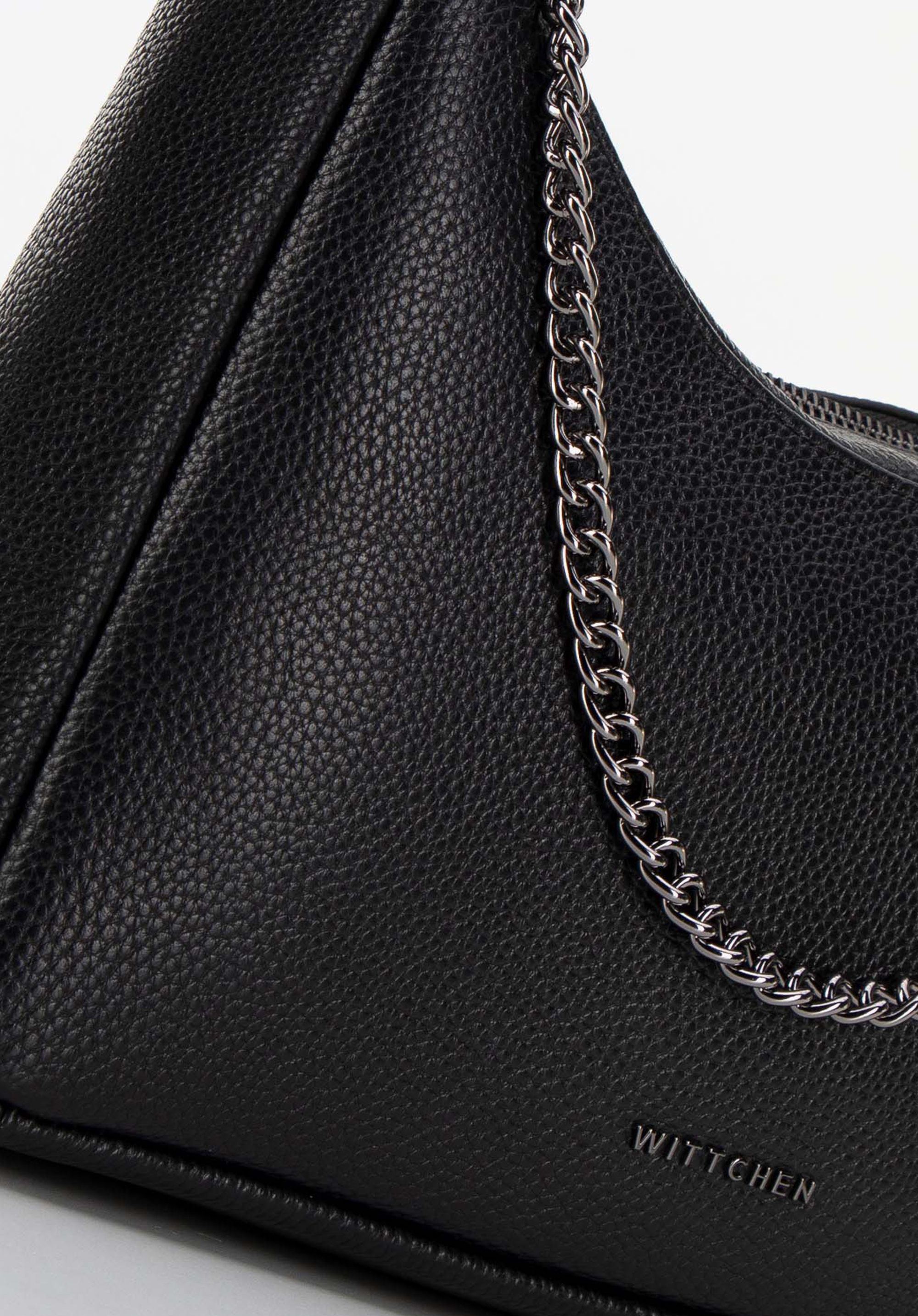 - Atingeri estetice: Un lanț de bijuterii și o curea lată cu nituri dau genții o notă unică și la modă.