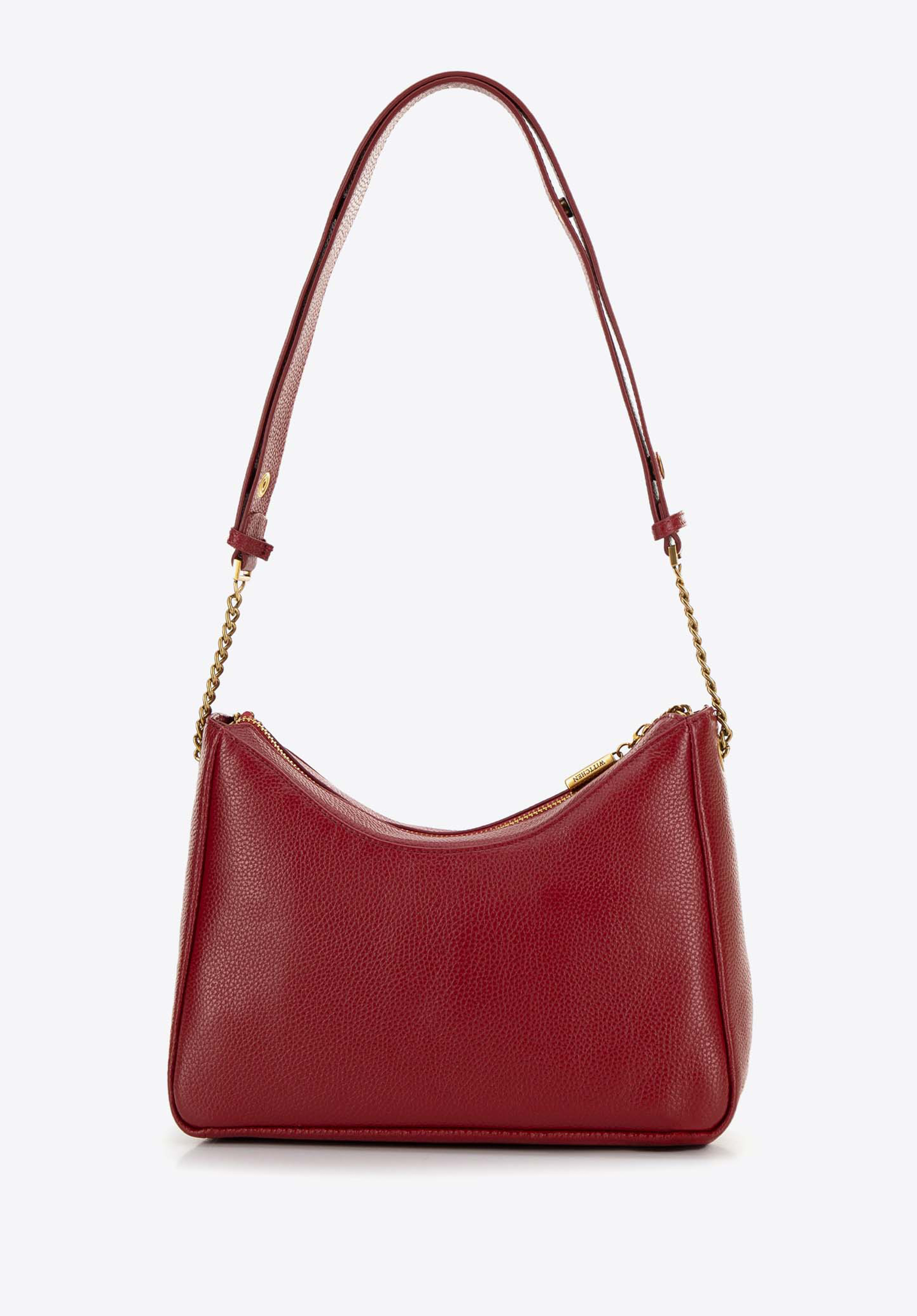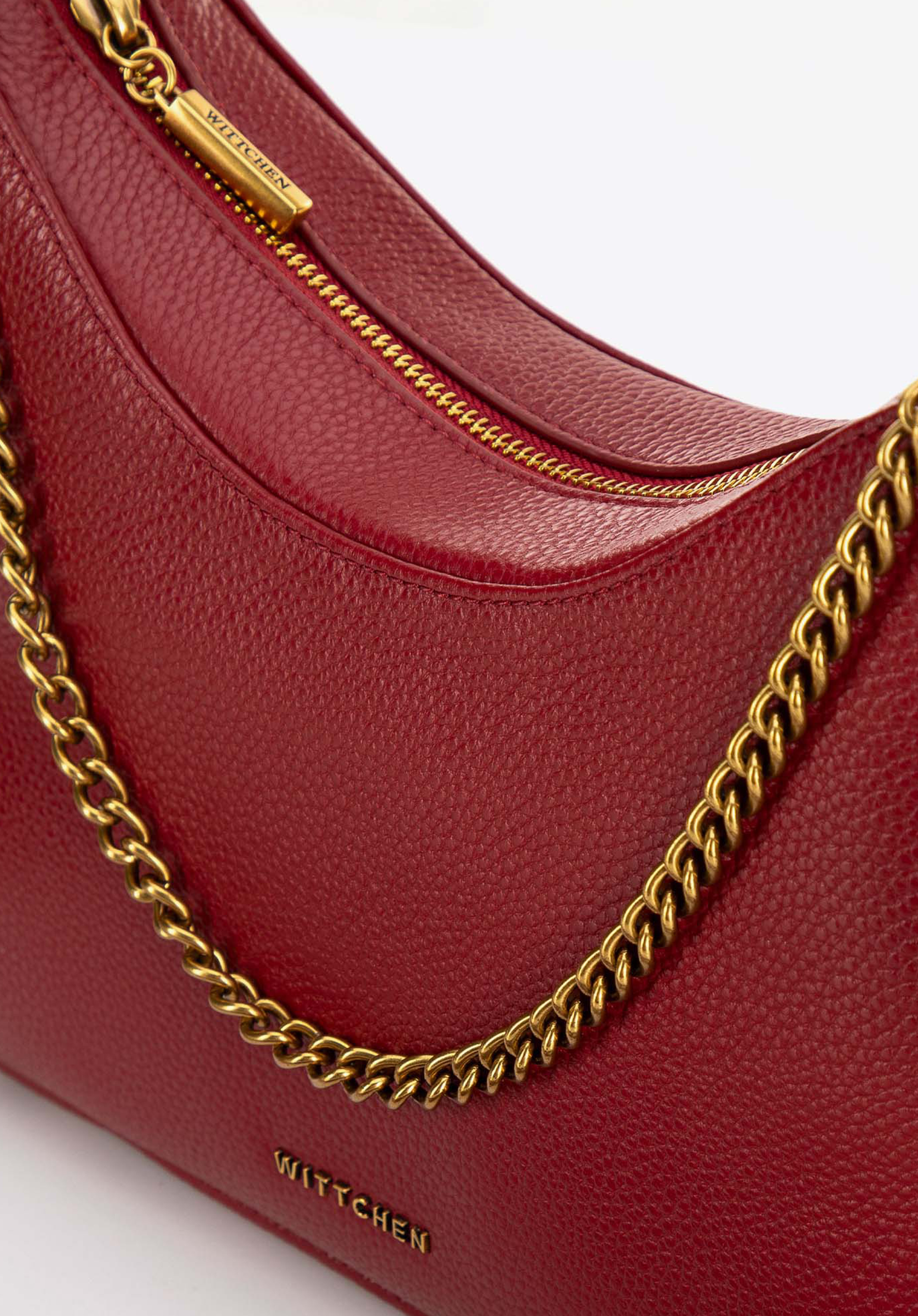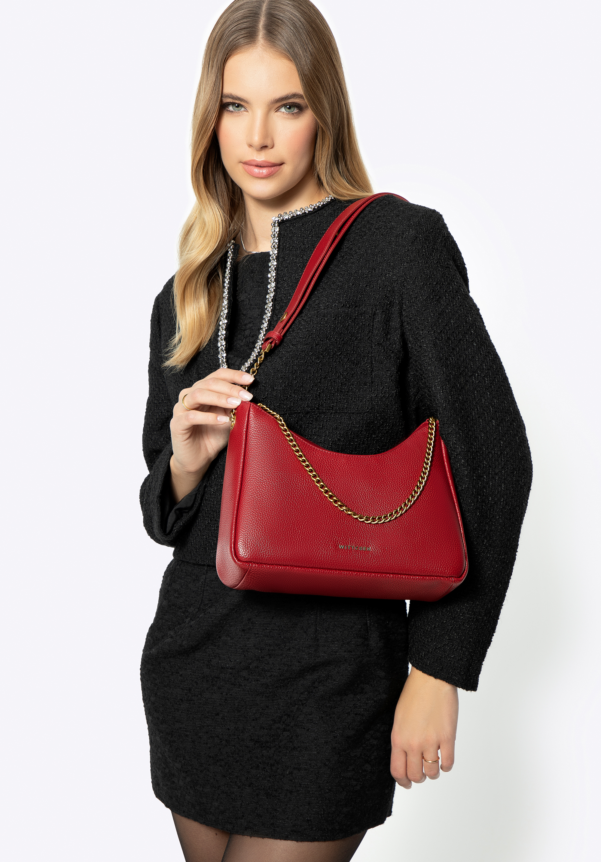 - Atingeri estetice: Un lanț de bijuterii și o curea lată cu nituri dau genții o notă unică și la modă.