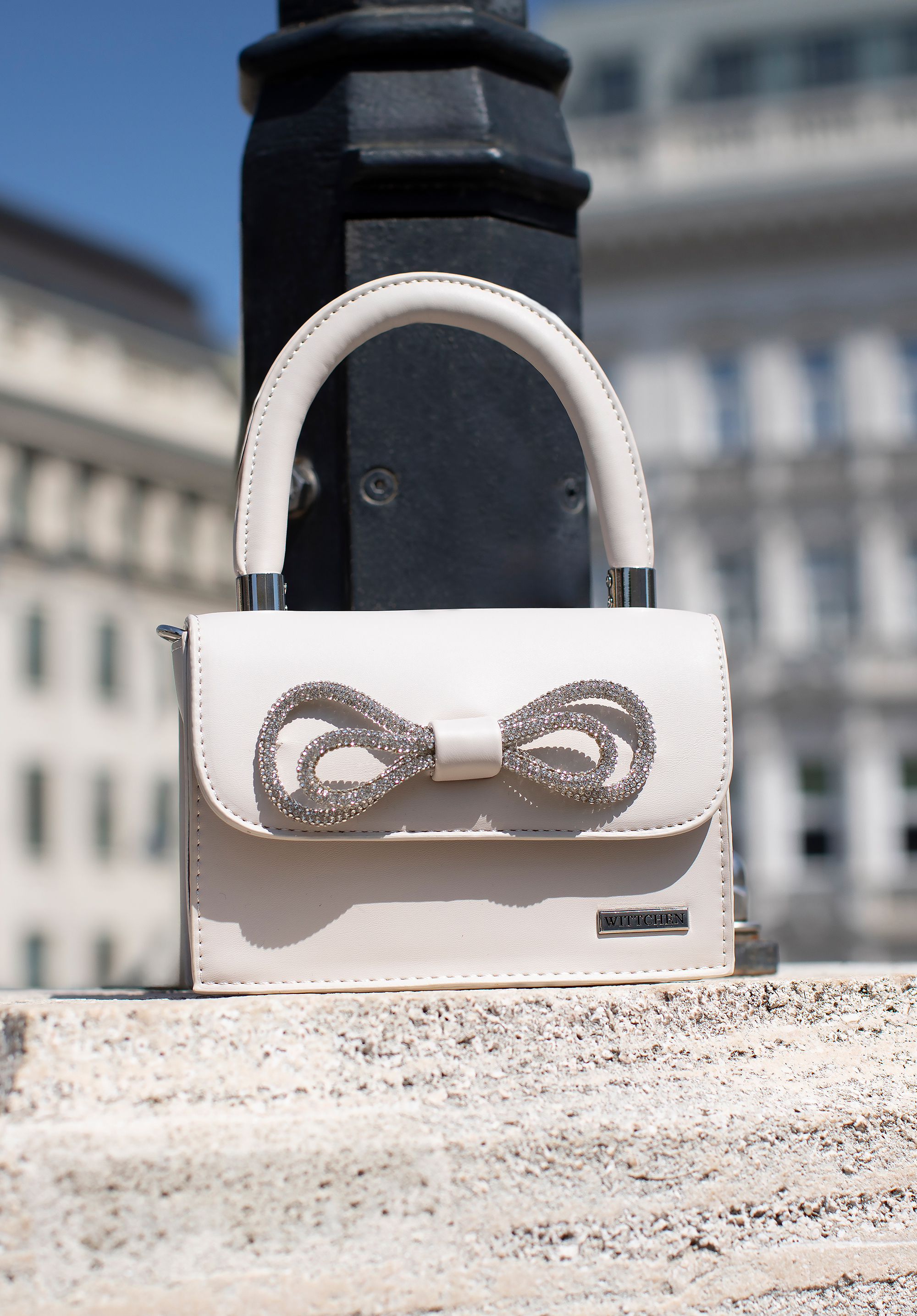- Ornamentări : Clapa genții este împodobită cu un detaliu de panglică strălucitoare , adăugând o notă de lux și eleganță subtilă.