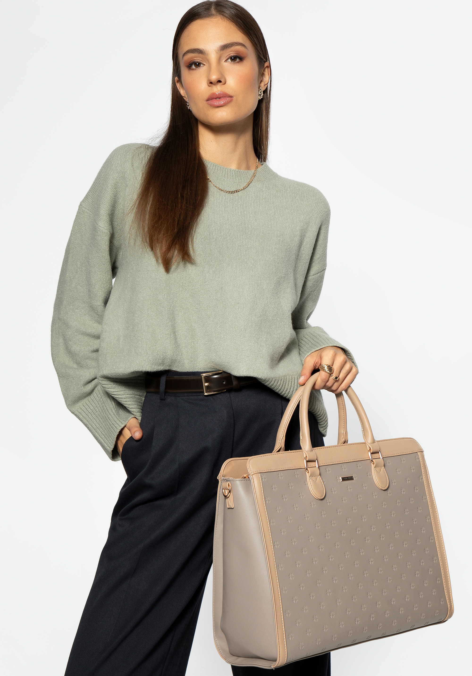 Îți prezint geanta noastră de mână pentru femei, care combină eleganța cu soluții practice. Fabricată din imitație de piele, oferă durabilitate și un aspect luxos, în timp ce logo-ul în relief adaugă prestigiu. Cu două mânere și o curea reglabilă, detașabilă, o poți transporta în diverse moduri, adaptând-o nevoilor tale. Este alegerea perfectă pentru femeile care apreciază atât stilul, cât și funcționalitatea.