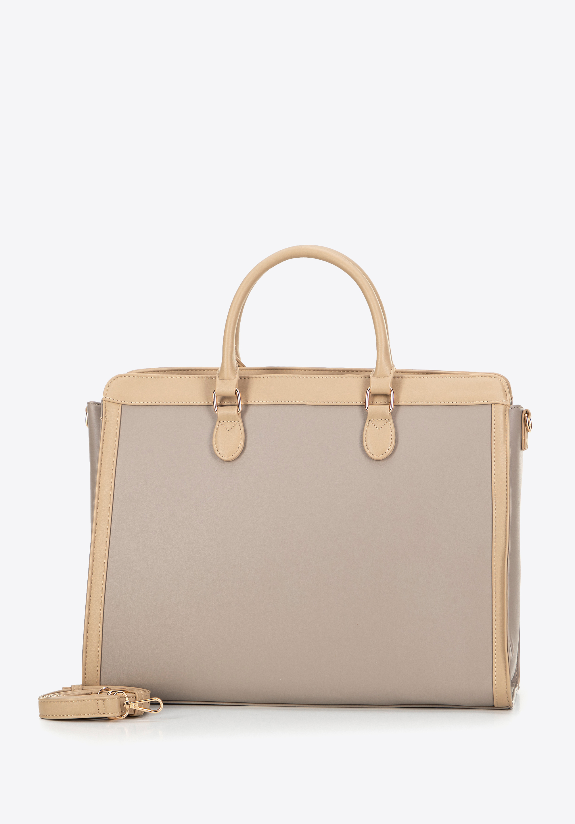 - Confort de purtare: Cu două mânere și o curea reglabilă, detașabilă, poți purta geanta de mână, pe umăr sau pe corp, oferind confort în orice situație.