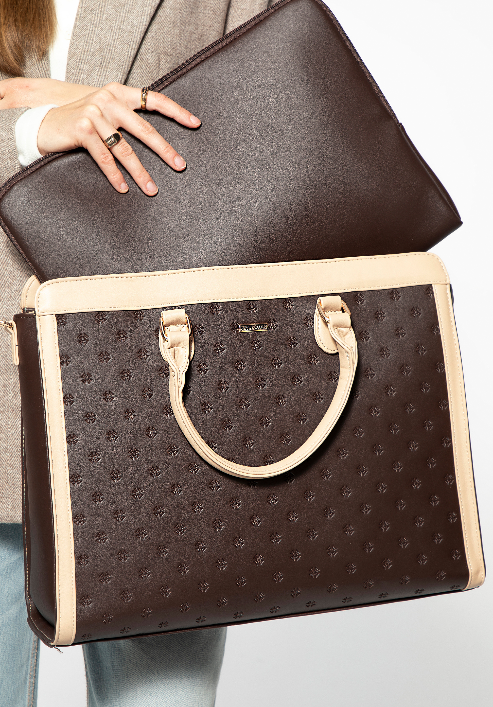 Îți prezint geanta noastră de mână pentru femei, care combină eleganța cu soluții practice. Fabricată din imitație de piele, oferă durabilitate și un aspect luxos, în timp ce logo-ul în relief adaugă prestigiu. Cu două mânere și o curea reglabilă, detașabilă, o poți transporta în diverse moduri, adaptând-o nevoilor tale. Este alegerea perfectă pentru femeile care apreciază atât stilul, cât și funcționalitatea.