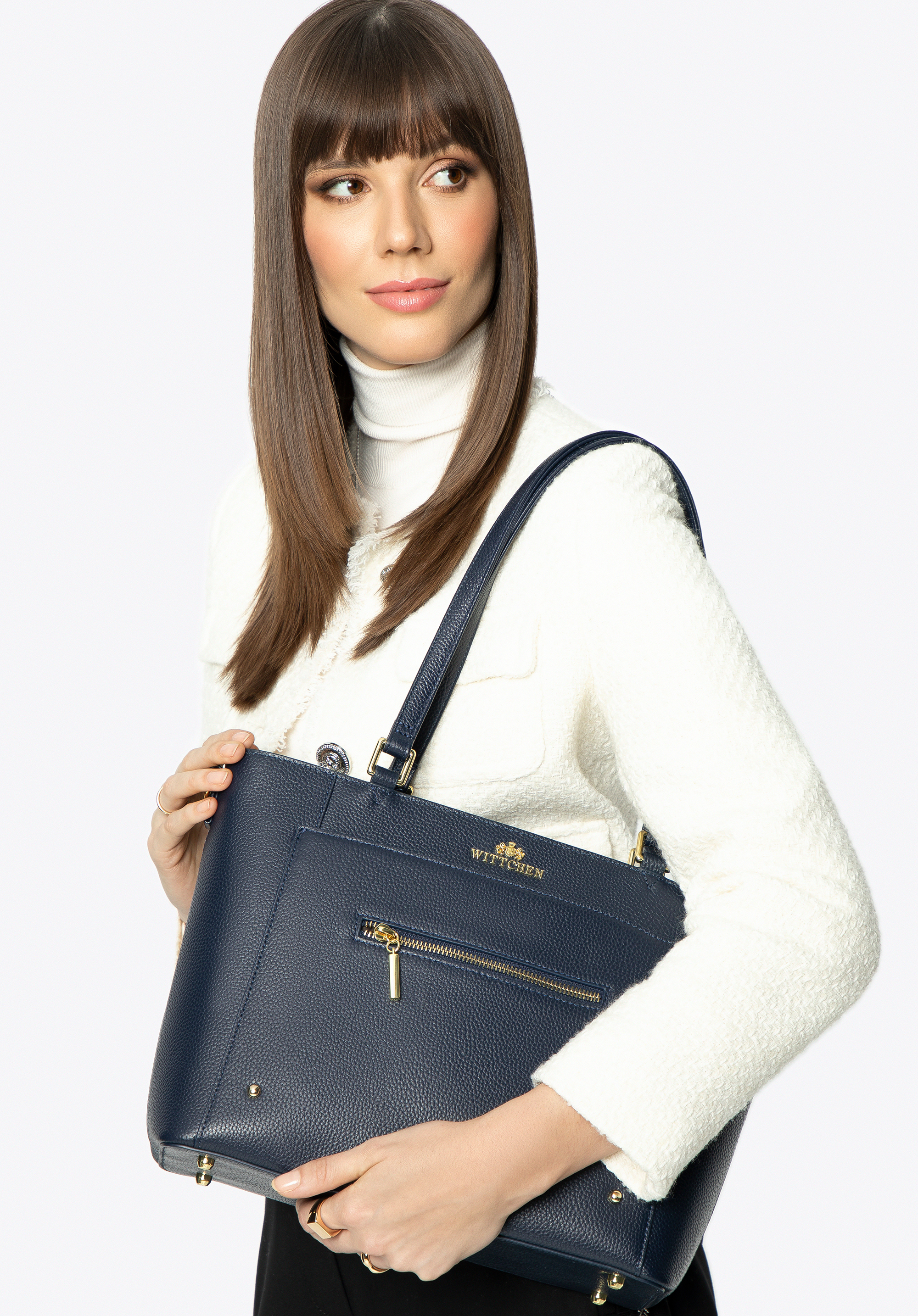 Geantă de piele pentru femei cu buzunare Culoare: bleumarin
