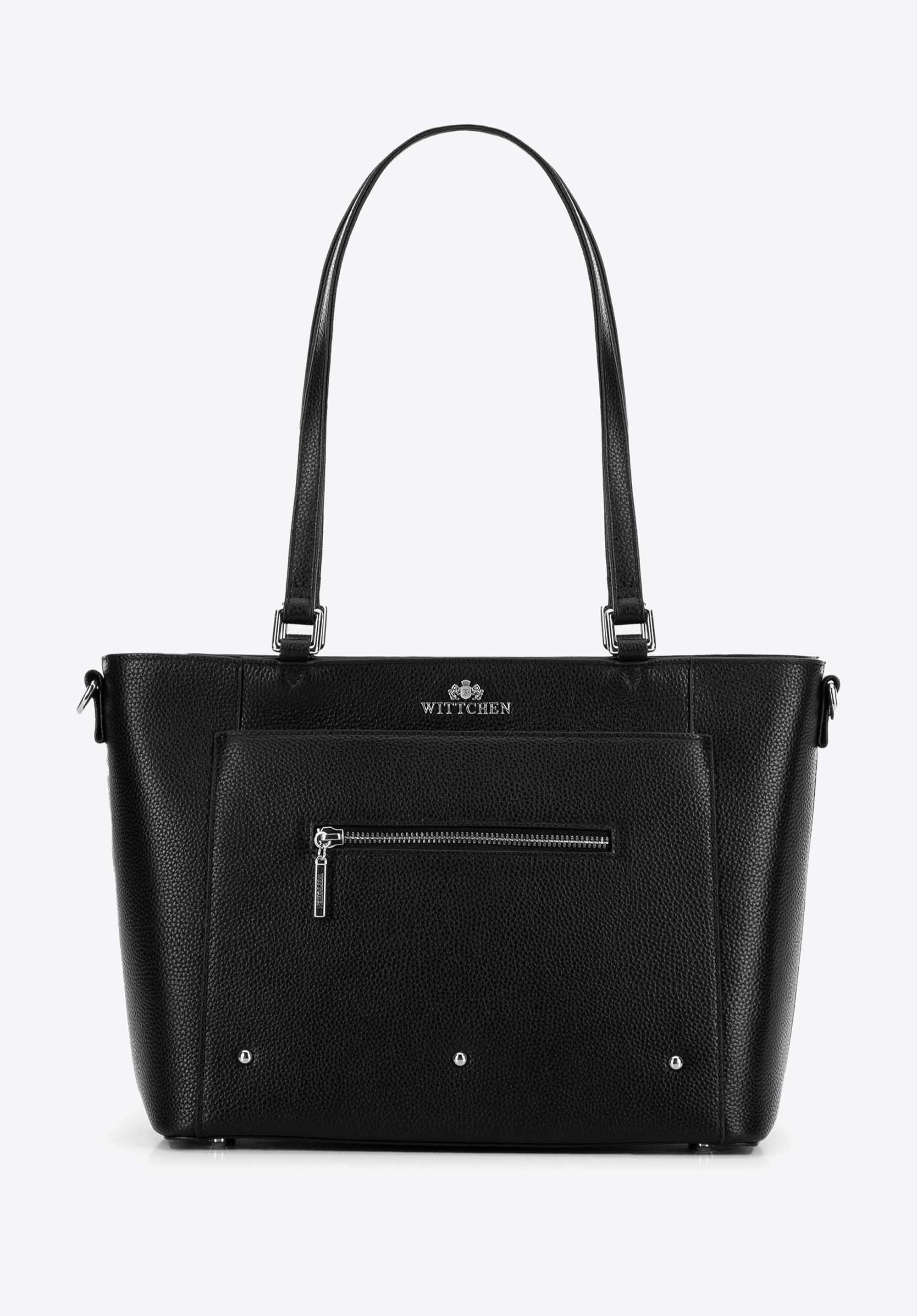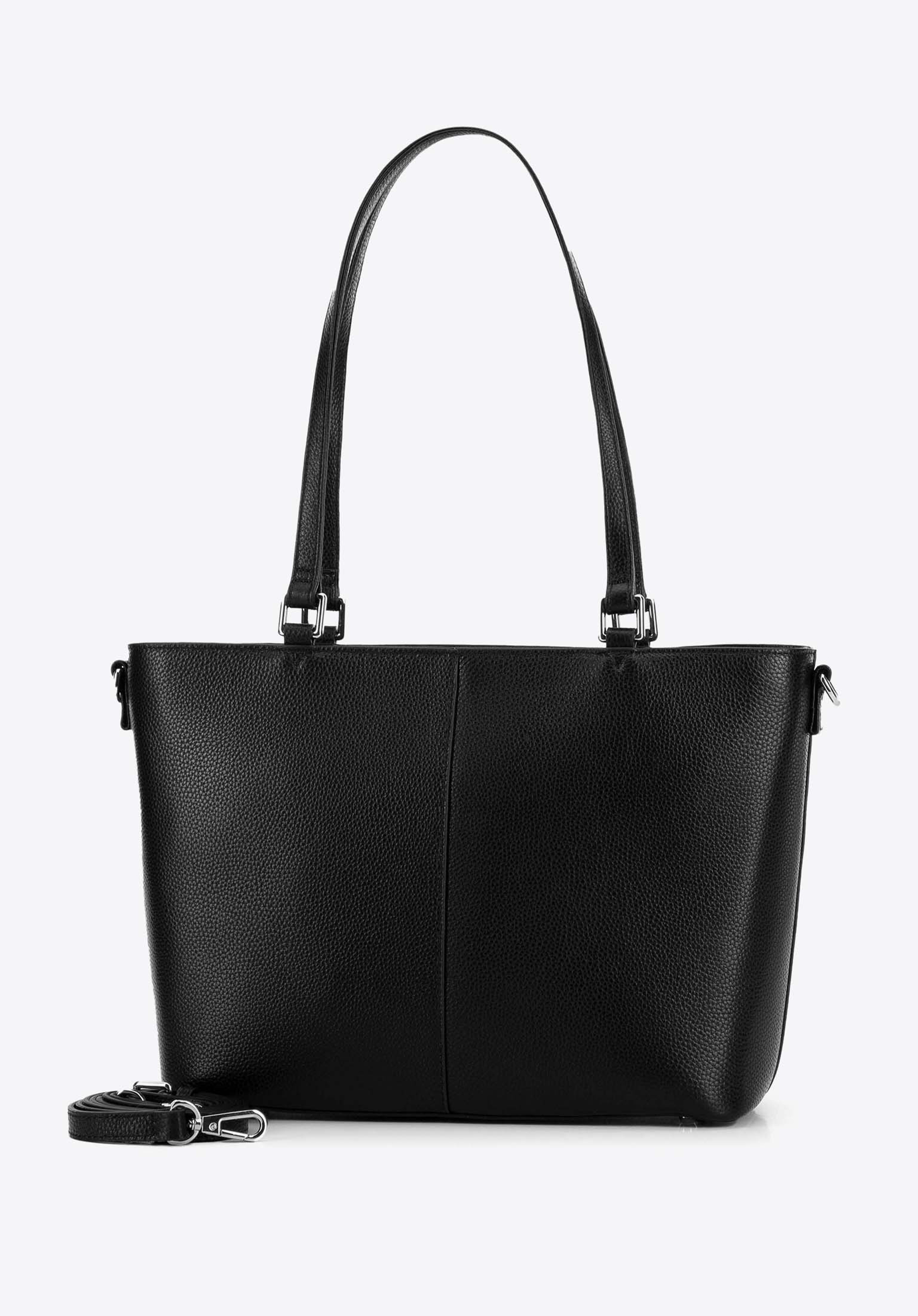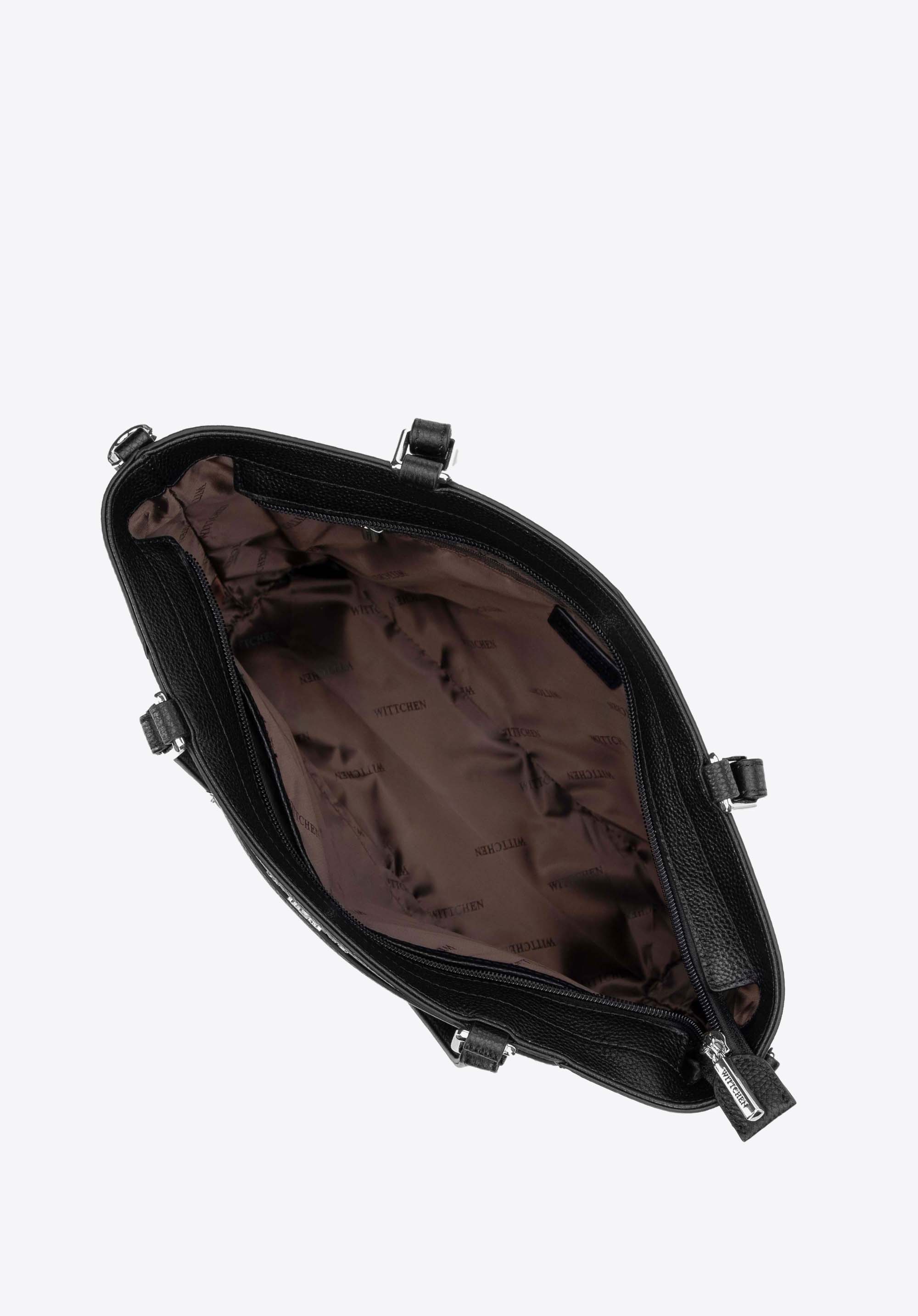 Geantă de piele pentru femei cu buzunare Culoare: negru - argintiu