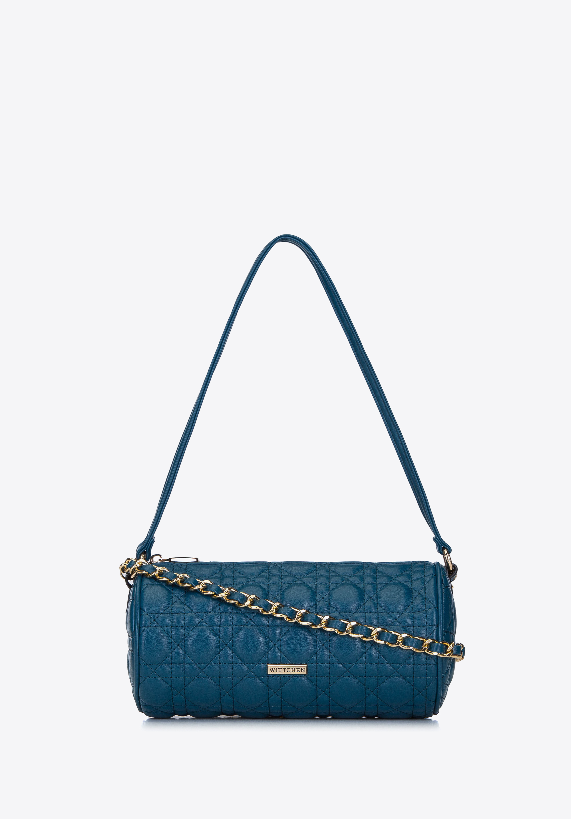 Moale, matlasată poșeta de seară pe un lant cu o curea țesută cu gust și o curea de mână scurtă.Puteți detașa cu ușurință curelele și le puteți atașa de carabiniere în formă de cerc. Piele ecologică mată, de calitate superioară cu care este cusută arată grozav în combinație cu detalii aurii. Forma rotundă, cutie decorat cu cusături geometrice, capătă un aspect modern care vă va distinge stilizarea de celelalte.Geanta de mână perfectă, atât pentru o rochie elegantă și tocuri înalte, cât și pentru o jachetă sport și adidași & oacute; w .