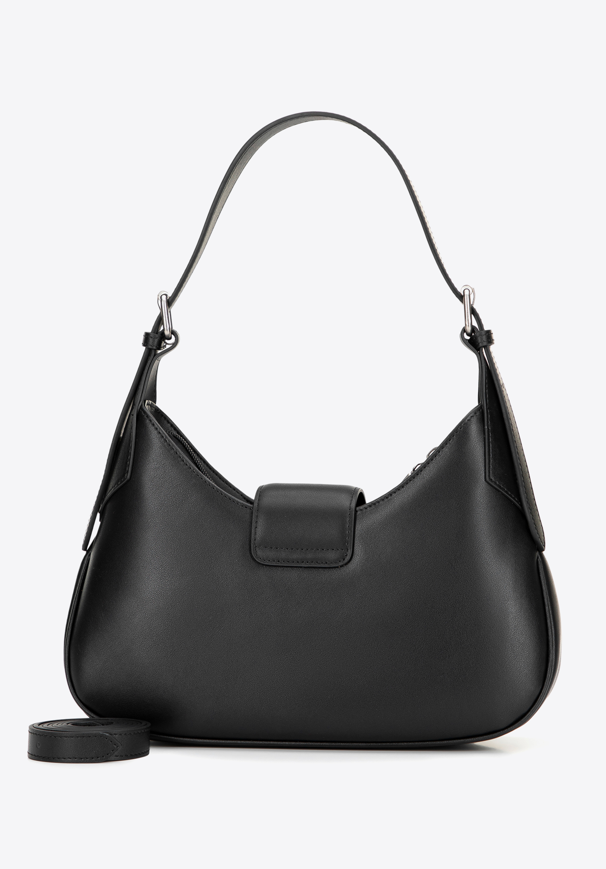 Geantă de umăr din piele cu curea detașabilă negru