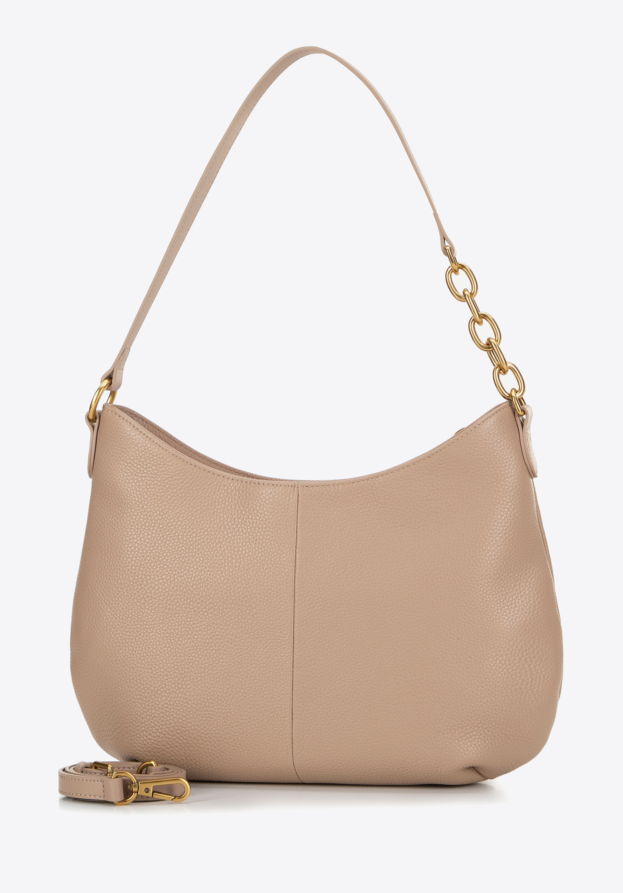 - Confort la purtare: Mânerul cu adaosul unui lanț nu numai că face ca transportul genții să fie confortabil, dar îi adaugă și un stil unic. În plus, geanta este echipată cu o curea detașabilă, reglabilă, astfel încât să o poți purta cum vrei.