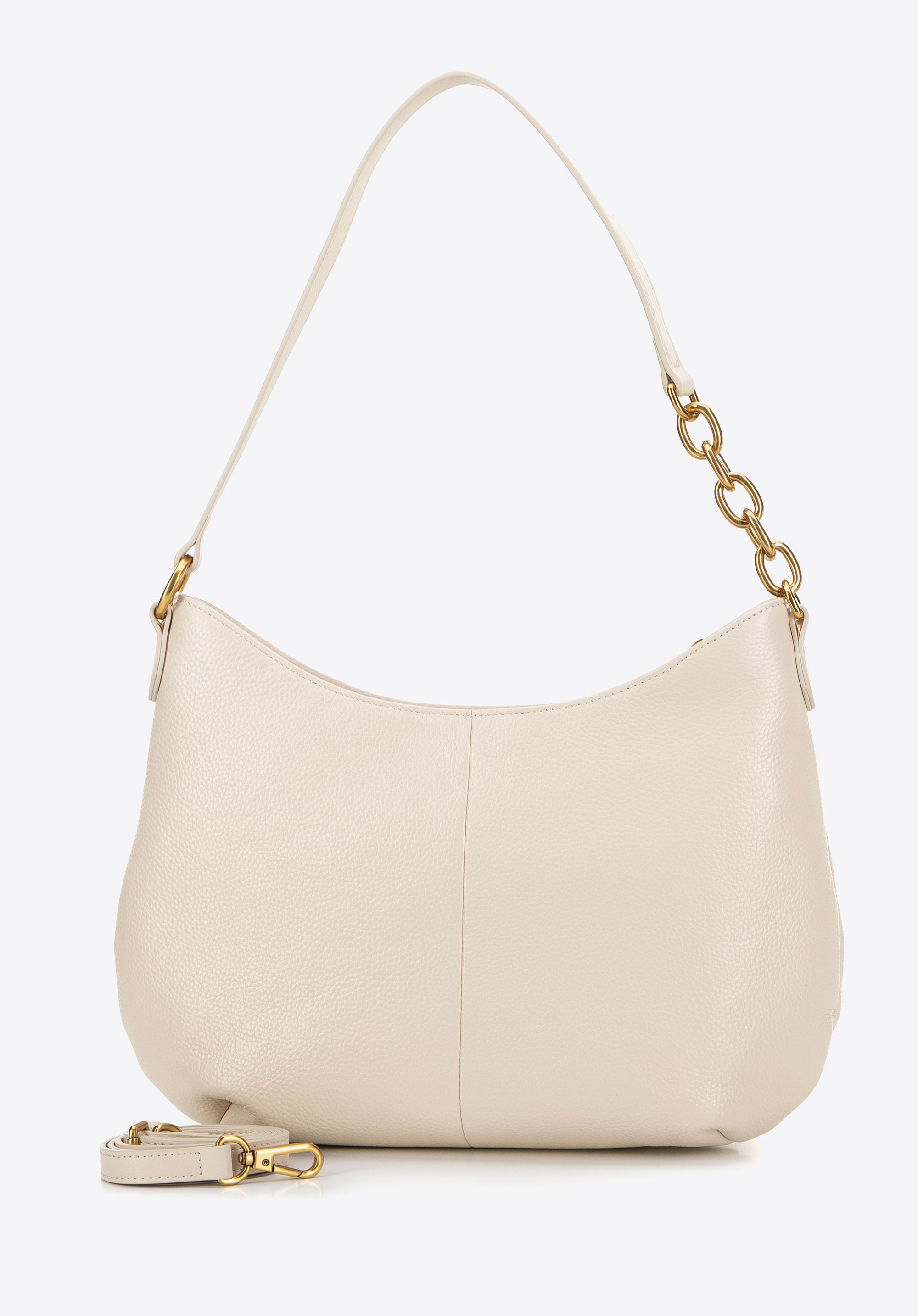 - Confort la purtare: Mânerul cu adaosul unui lanț nu numai că face ca transportul genții să fie confortabil, dar îi adaugă și un stil unic. În plus, geanta este echipată cu o curea detașabilă, reglabilă, astfel încât să o poți purta cum vrei.