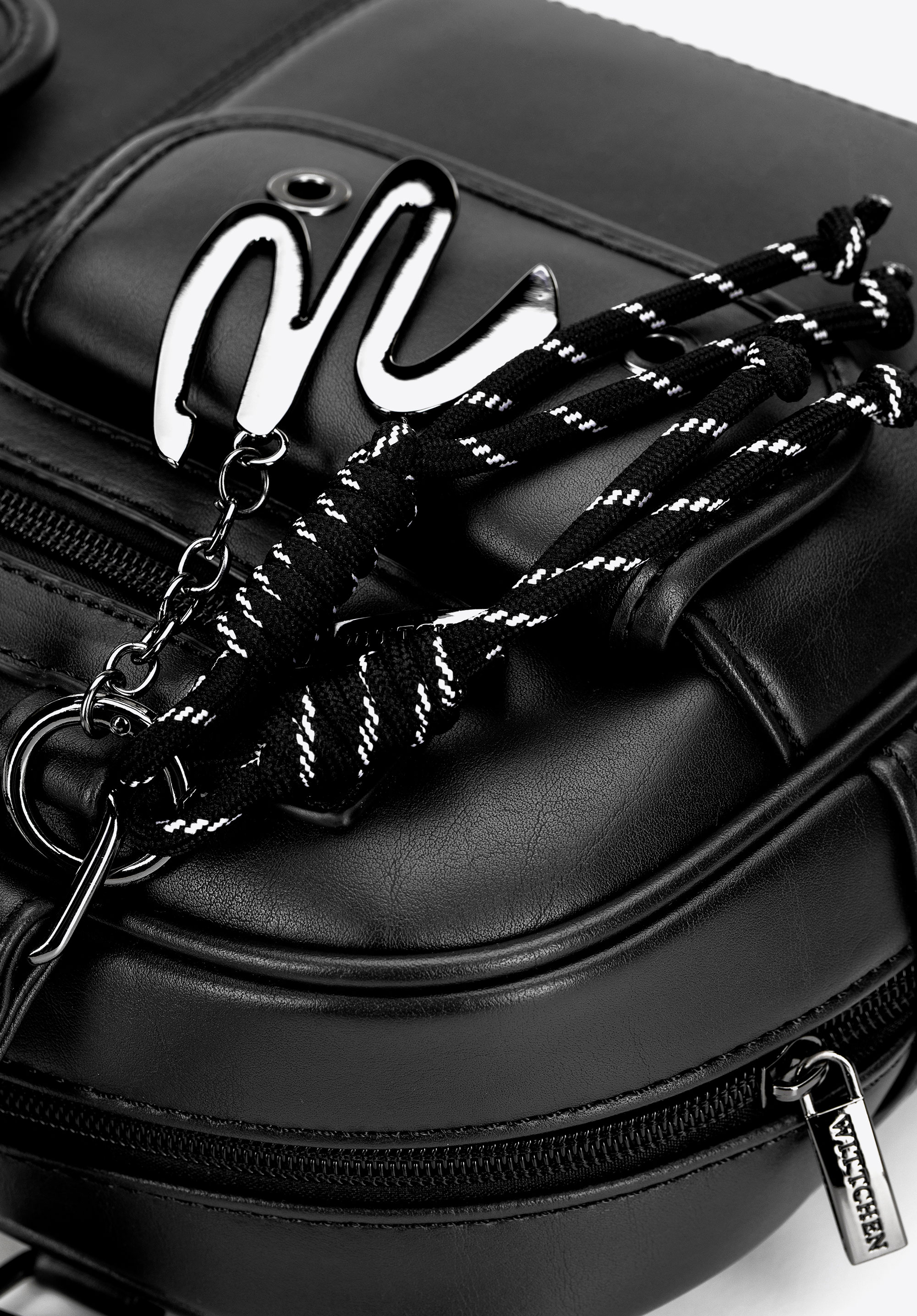 - Buzunare frontale suplimentare: Două buzunare cu capse magnetice și un buzunar cu fermoar – perfecte pentru telefon, chei și obiecte mici.