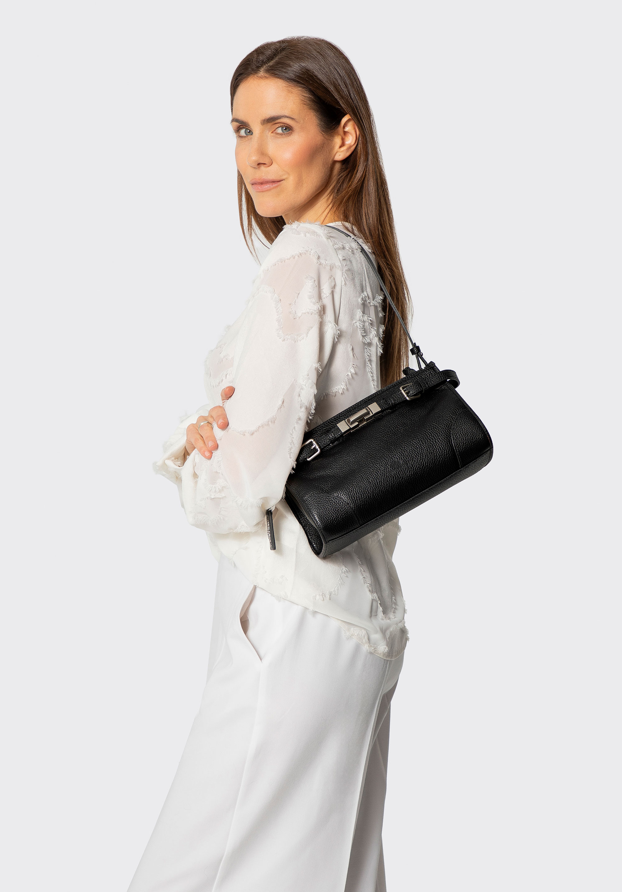 Geantă de umăr pentru femei cu detaliu decorativ cu curea Culoare: negru