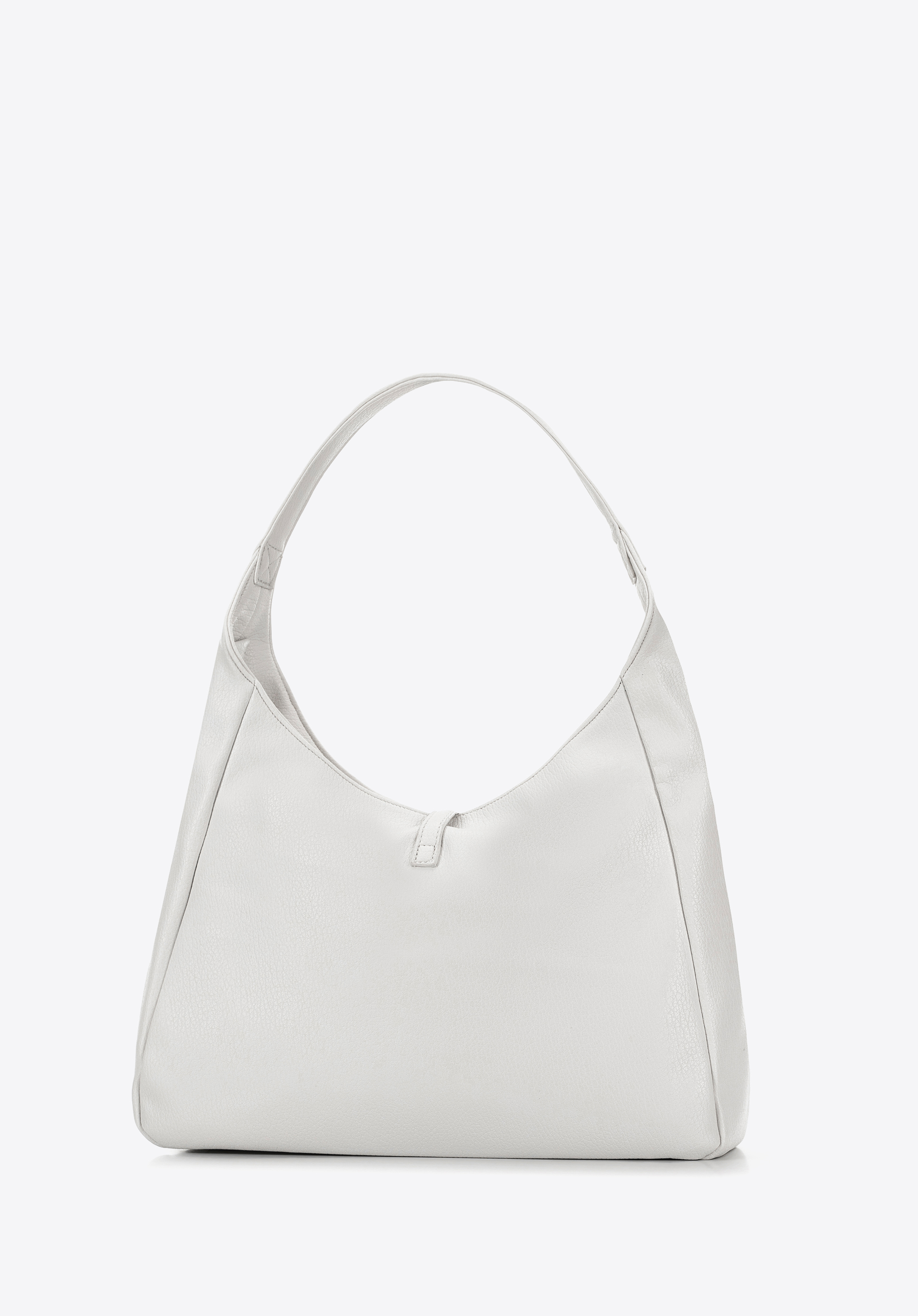 Descoperiți esența eleganței și a funcționalității cu această geantă hobo de damă. Este combinația perfectă de stil și caracter practic, oferind spațiul de care aveți nevoie pentru utilizarea de zi cu zi. Interiorul său spațios, cu un compartiment principal, are un buzunar la îndemână cu fermoar și două buzunare deschise , ceea ce facilitează organizarea cheilor, a produselor cosmetice și a altor obiecte esențiale. Experimentați confortul transportului cu un mâner robust care face ca geanta de mână să fie la fel de convenabilă de purtat pe umăr sau ținută în mână.