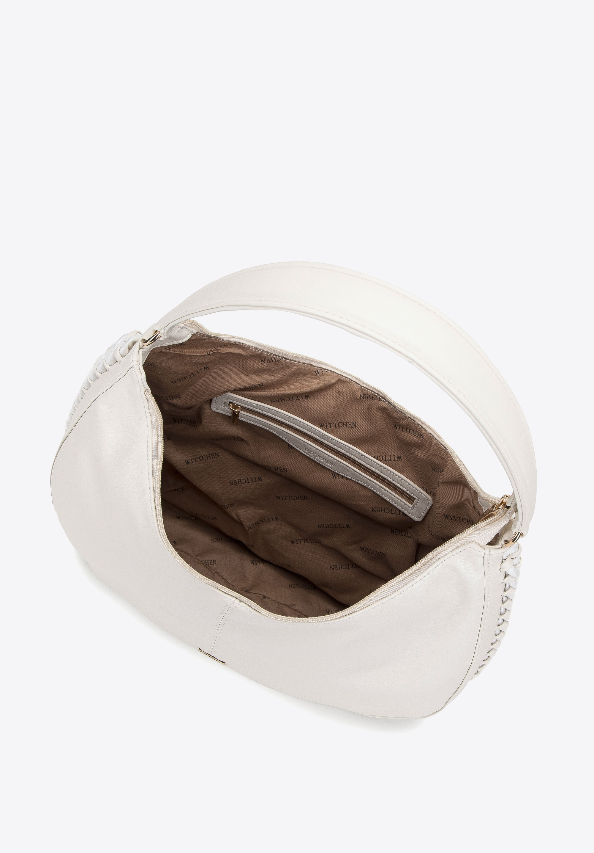 Această geantă mare de damă este perfectă pentru toți pasionații de stil clasic închis într-o formă modernă. Forma delicat rotunjită a acestei genți este împodobită cu un lanț gros strălucitor . Înăuntru poți încăpea aproape tot ce ai nevoie pentru întreaga zi plină: documente în format A4, calendar, portofel, geantă pentru cosmetice, cană termică, eșarfă de rezervă și câteva obiecte mici. O geantă hobo confecționată din piele artificială, cu o garnitură de lanț întrețesut, este o alegere excelentă pentru utilizarea de zi cu zi, atât pentru lucru, cât și după ore.