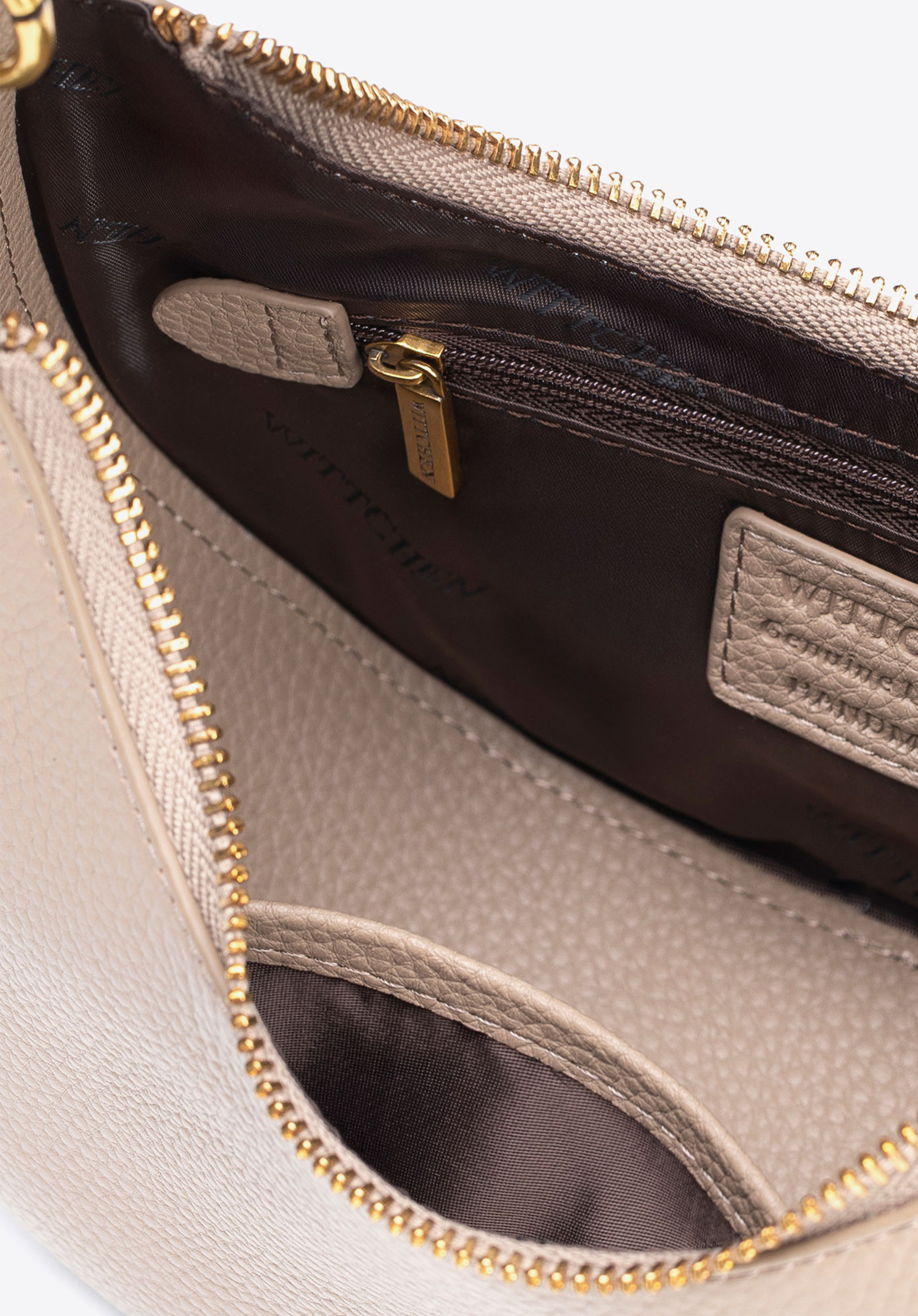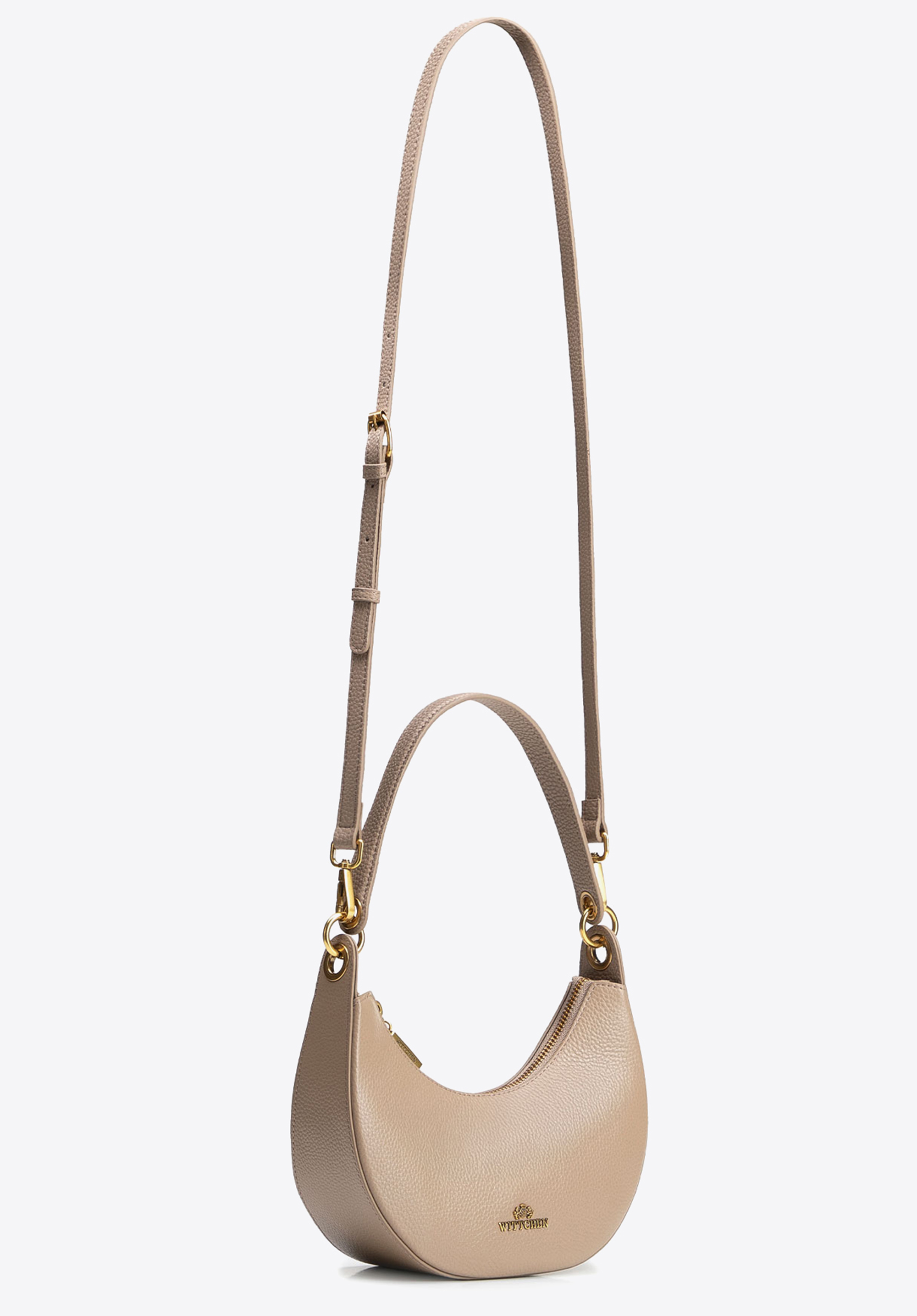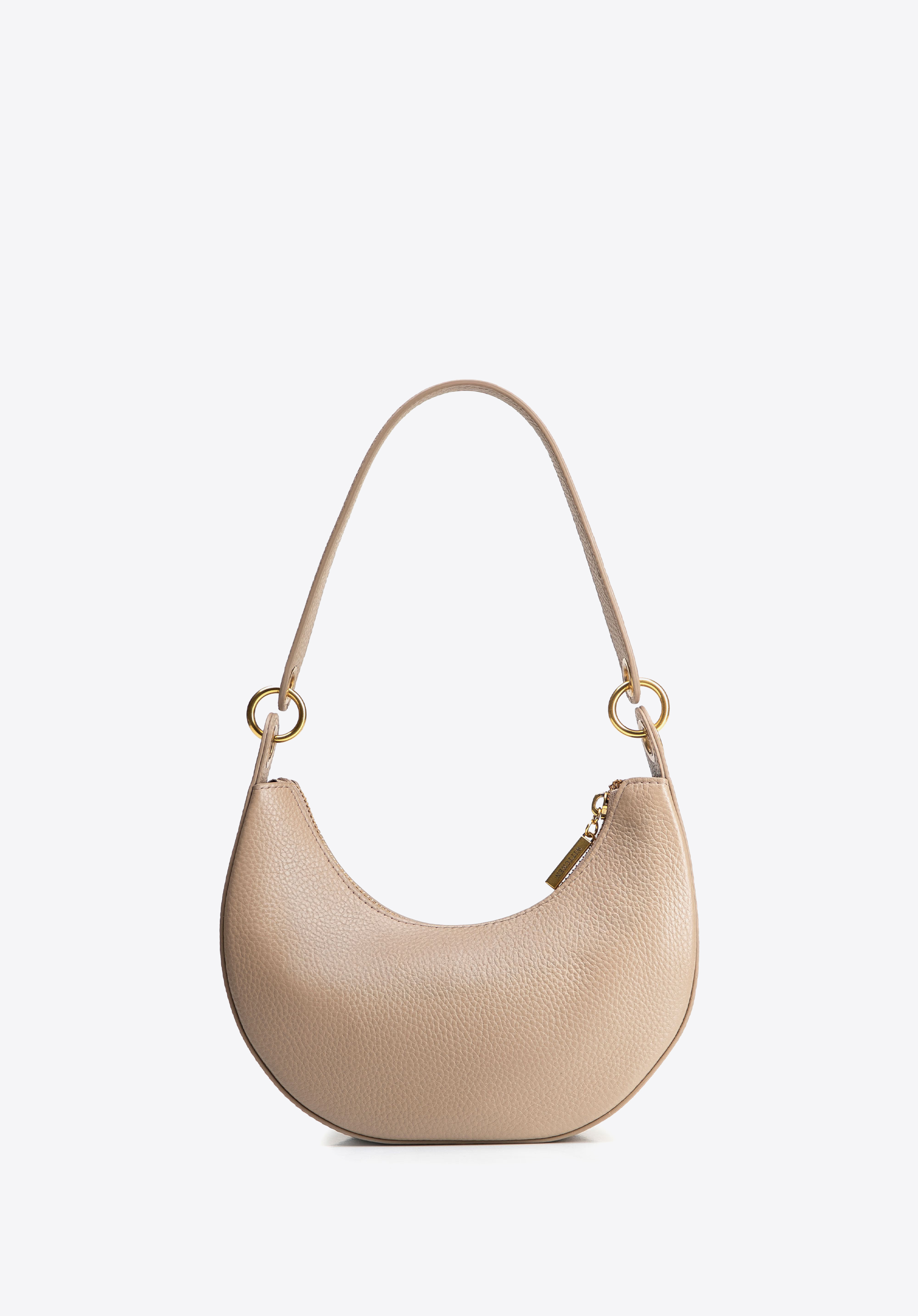 O geantă care îmbină eleganța cu caracterul practic de zi cu zi - corpul său este confecționat din piele naturală durabilă, în timp ce mânerul, cureaua și ornamentele interioare sunt confecționate din piele ecologică, mențin piesa ușoară, funcțională și ușor de întreținut. Forma ușor rotunjită, detaliile rafinate și măiestria meticuloasă o fac un accesoriu remarcabil pentru orice ținută. Cureaua detașabilă și reglabilă vă permite să o purtați peste umăr, în timp ce mânerul scurt oferă o purtare confortabilă în mână. O închidere sigură cu fermoar vă protejează lucrurile esențiale, iar logo-ul subtil de pe față, împreună cu detaliile lustruite ale fermoarului, conferă designului o notă sofisticată și premium. În interior, veți găsi două buzunare , inclusiv unul cu fermoar, care vă ajută să vă păstrați la locul lor necesitățile zilnice.