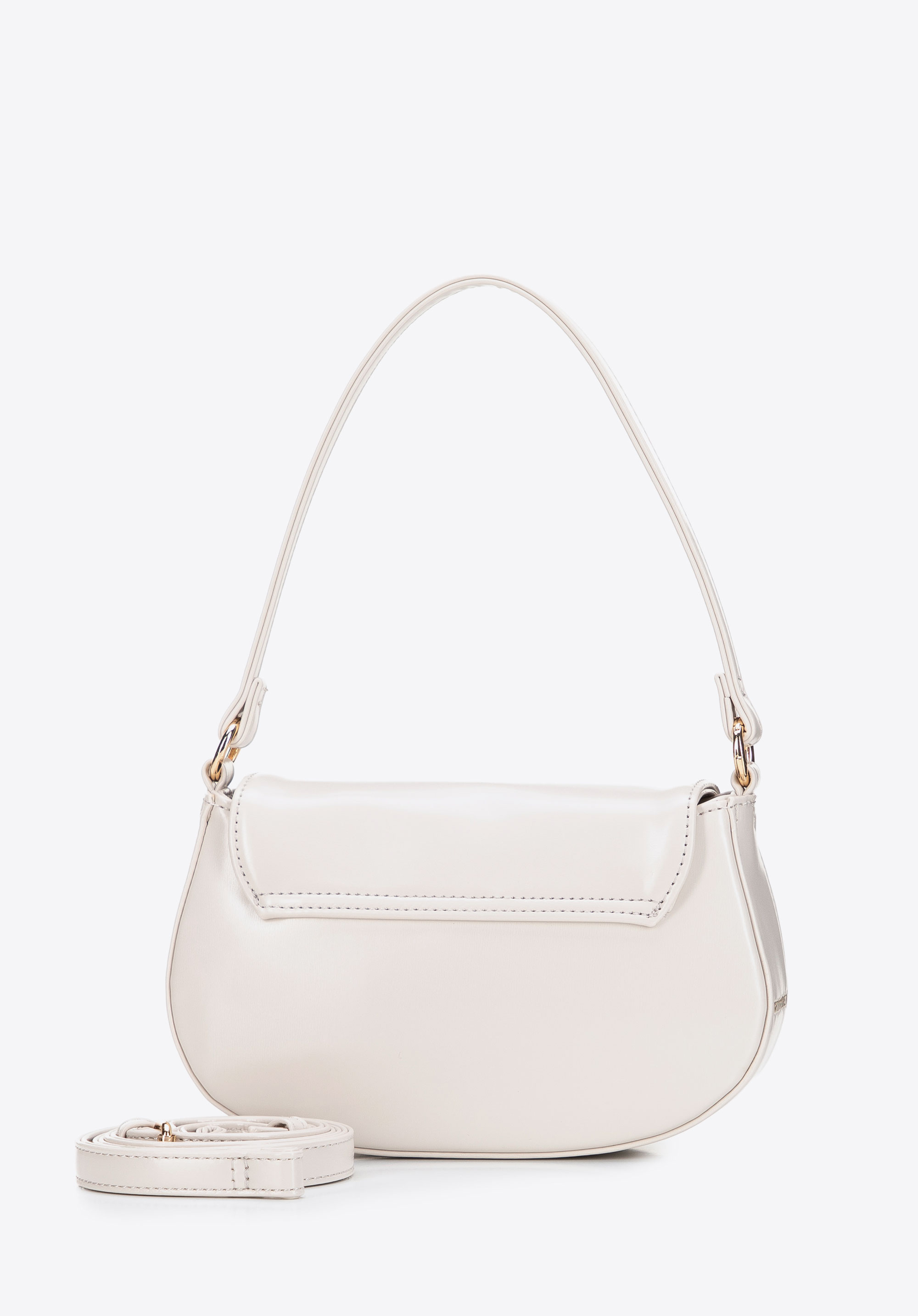 Adaugă o notă rafinată și modernă ținutei tale cu această geantă mini din piele ecologică , care combină eleganța feminină cu designul practic. Cu încuietoarea magnetică și catarama decorativă, clapeta accentuează designul contemporan al genții, iar baza structurată asigură menținerea formei și a stabilității, chiar și atunci când este complet împachetată. Un logo subtil al mărcii pe lateral adaugă eleganță, creând un detaliu elegant și atrăgător.